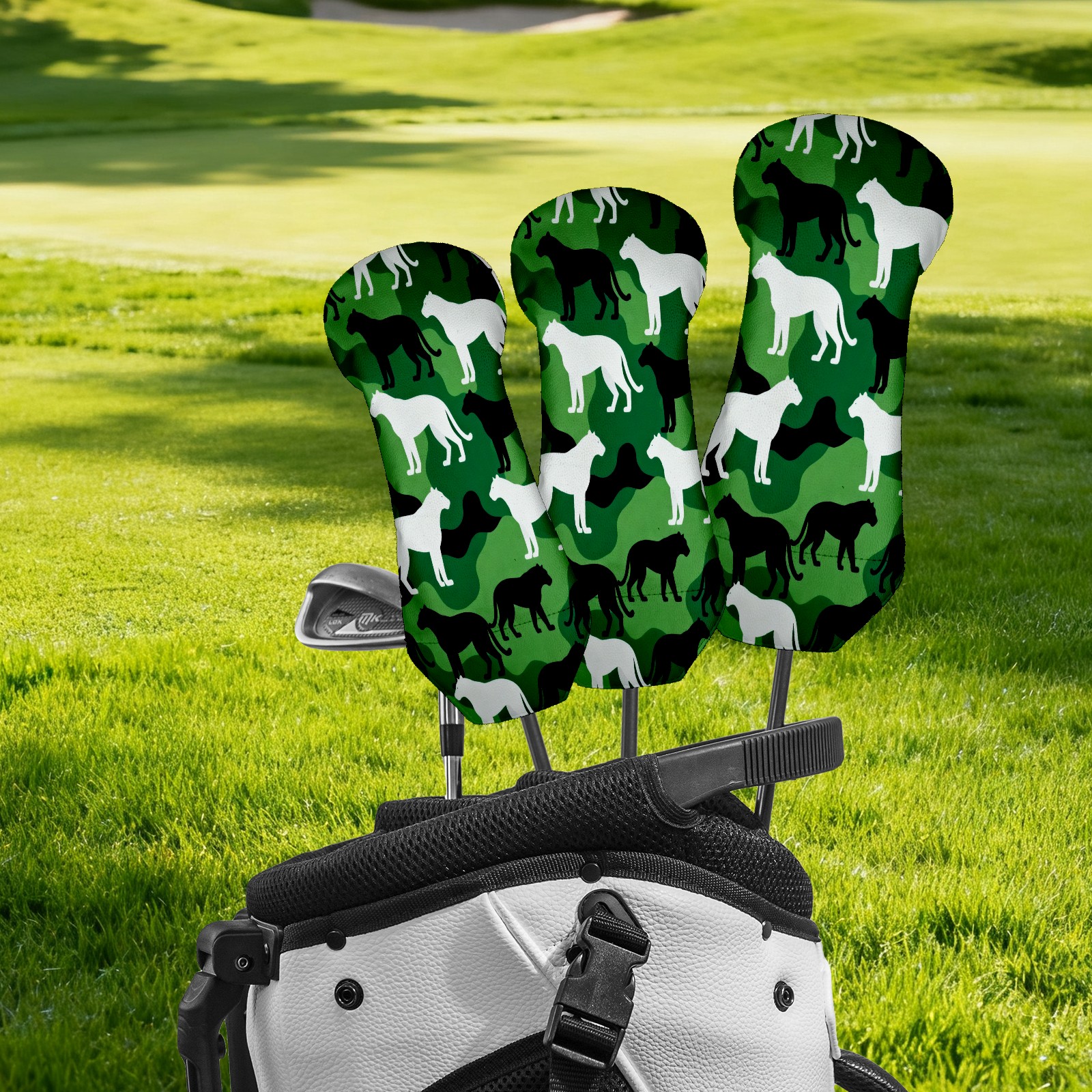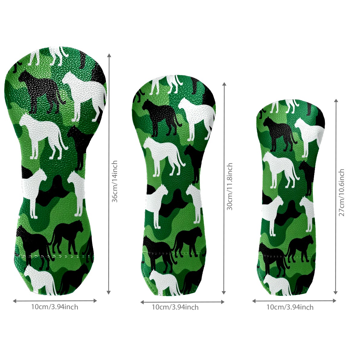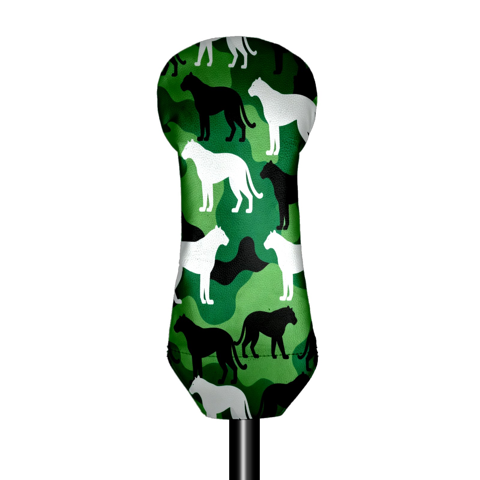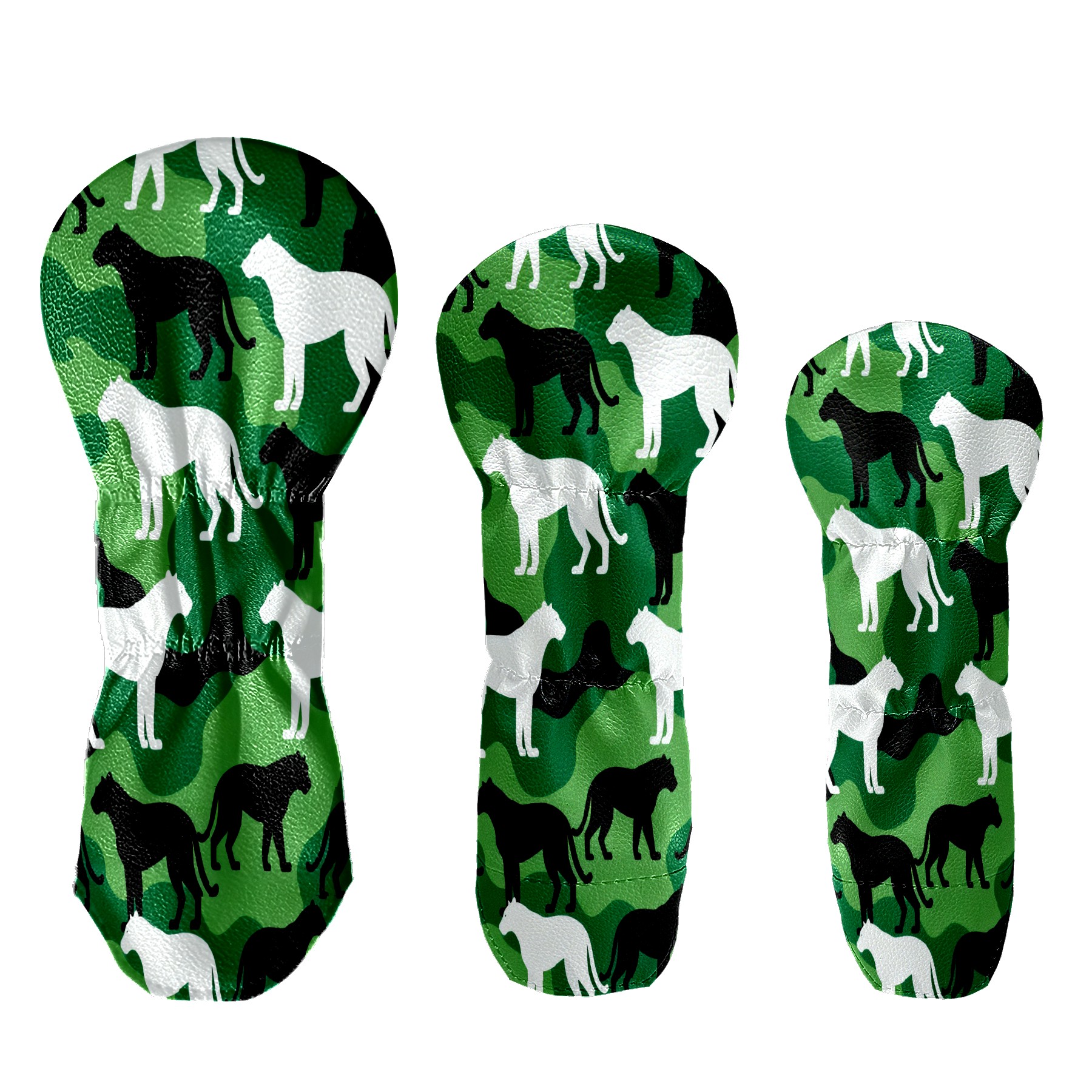 PU Leather Golf Putter Head Covers for Driver, Fairway Wood & Hybrid Clubs, Unisex, Fits All Brands Camouflage Silhouette Pattern Green
