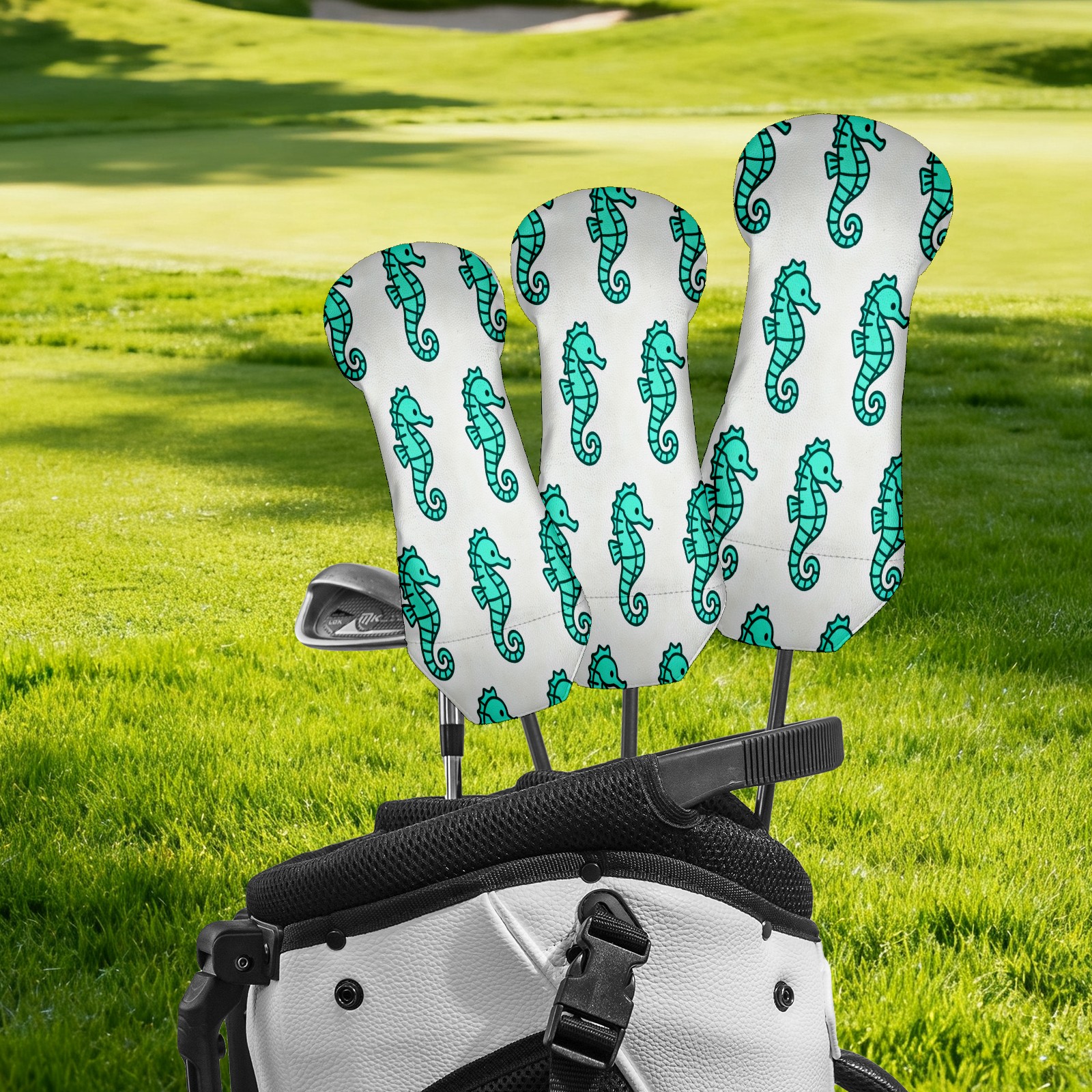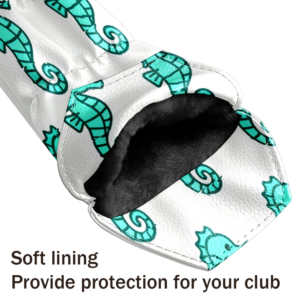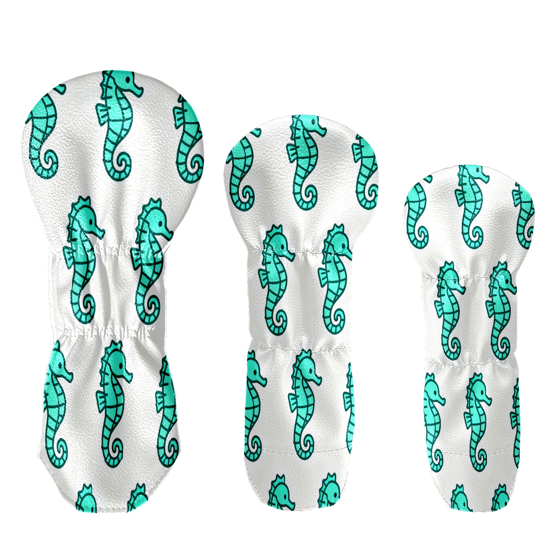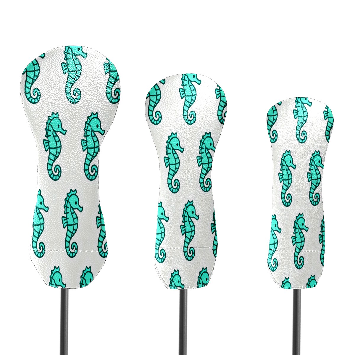 PU Leather Golf Putter Head Covers for Driver, Fairway Wood & Hybrid Clubs, Unisex, Fits All Brands Turquoise Seahorse