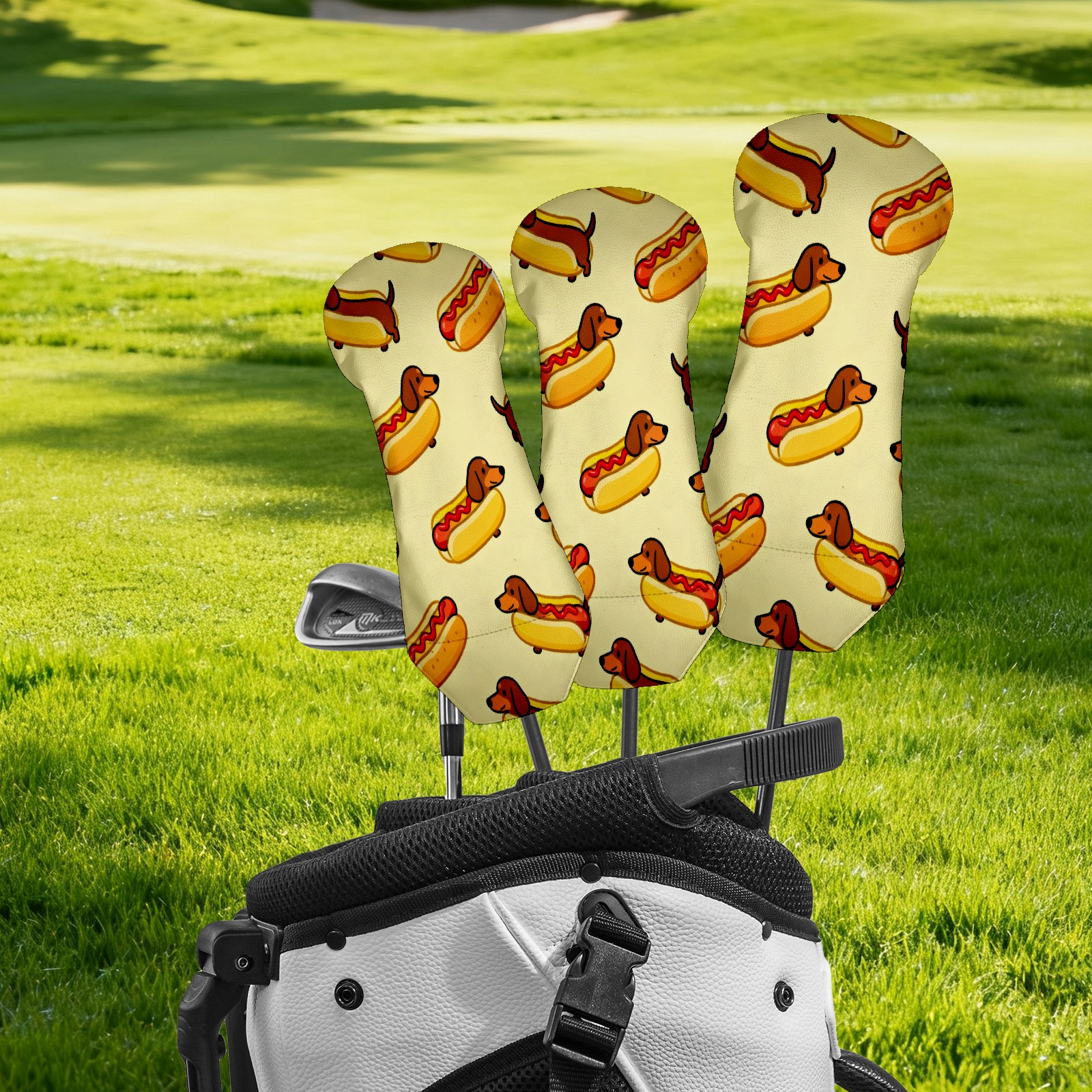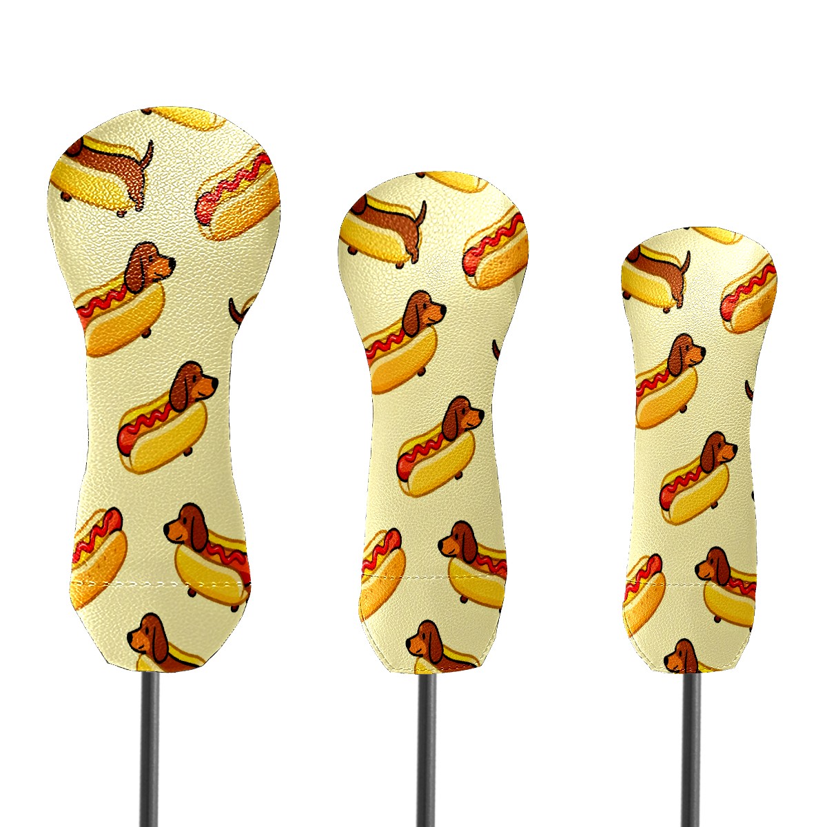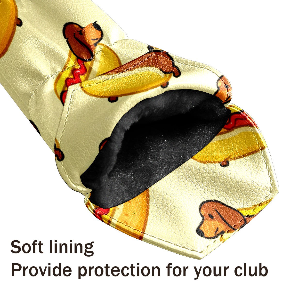 PU Leather Golf Putter Head Covers for Driver, Fairway Wood & Hybrid Clubs, Unisex, Fits All Brands Brown Sausage Dog