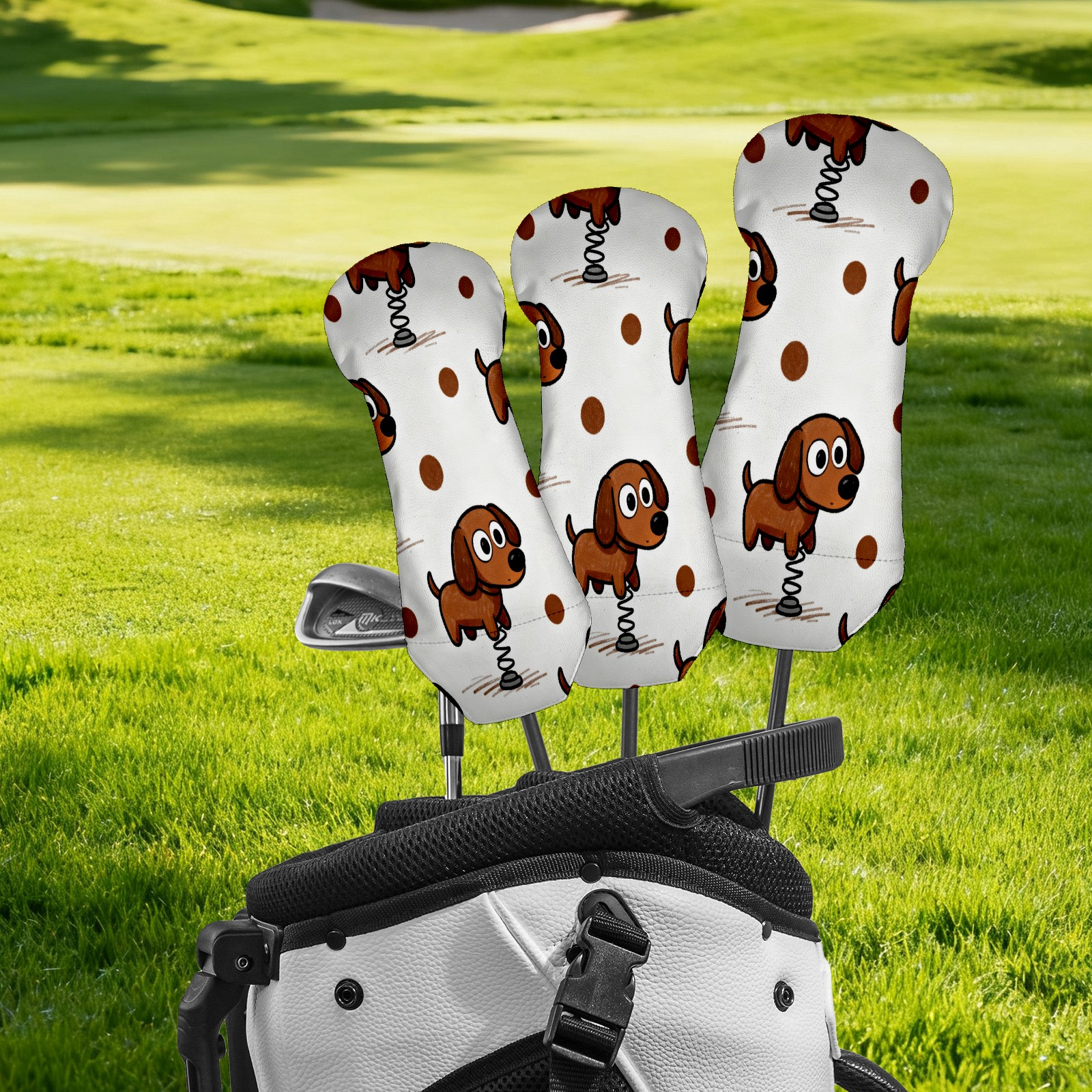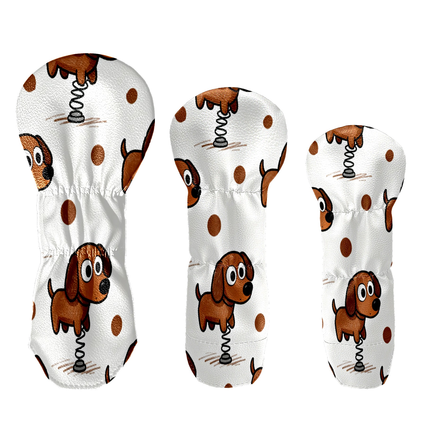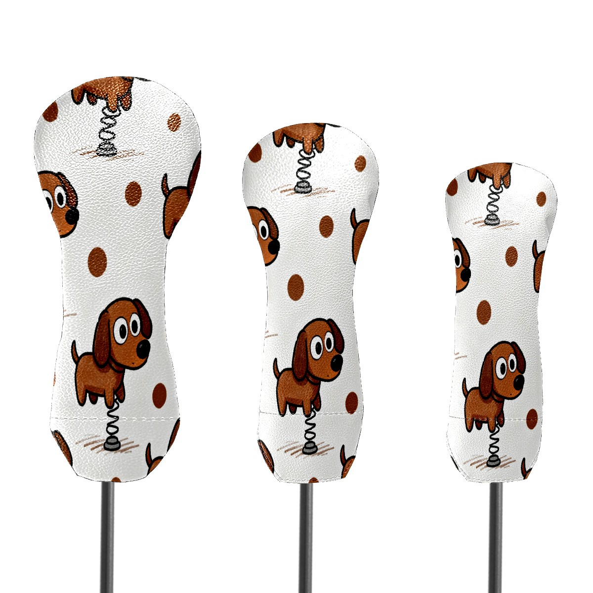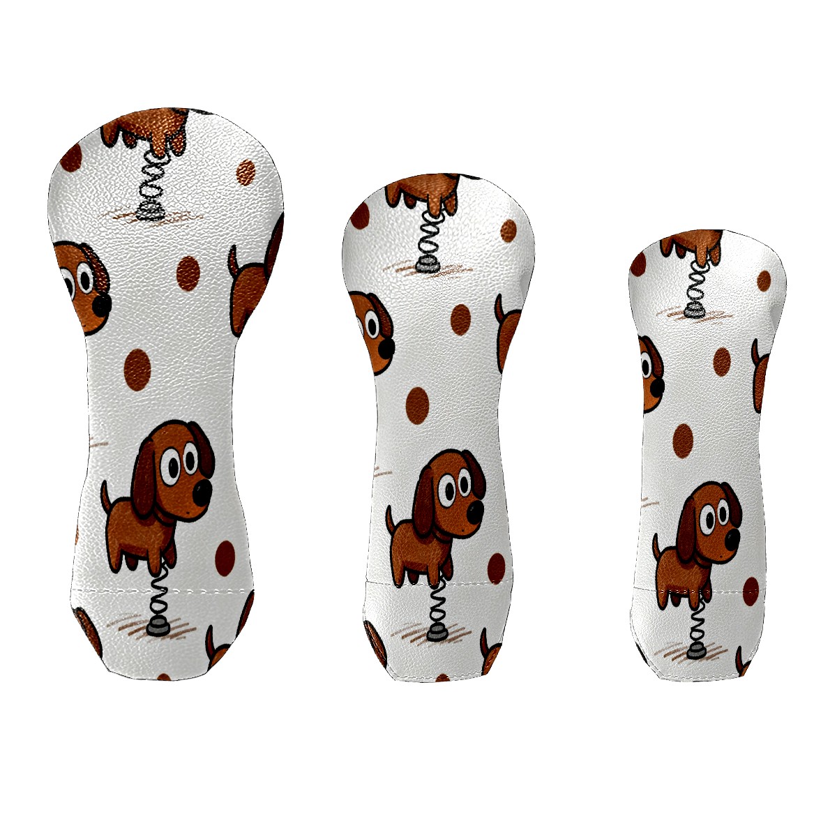 PU Leather Golf Putter Head Covers for Driver, Fairway Wood & Hybrid Clubs, Unisex, Fits All Brands Brown Spring Dog