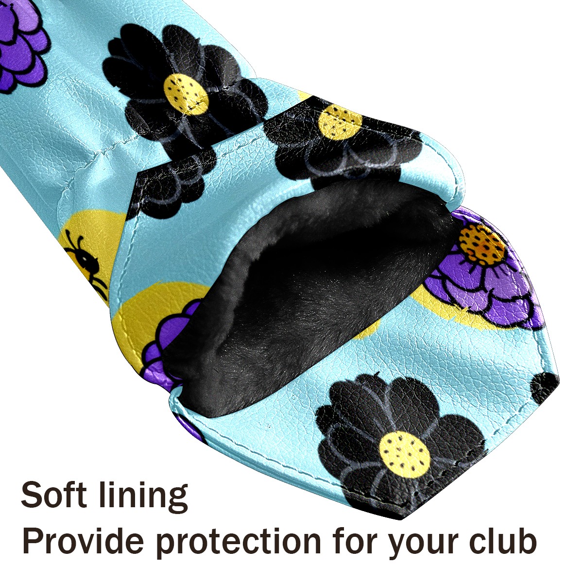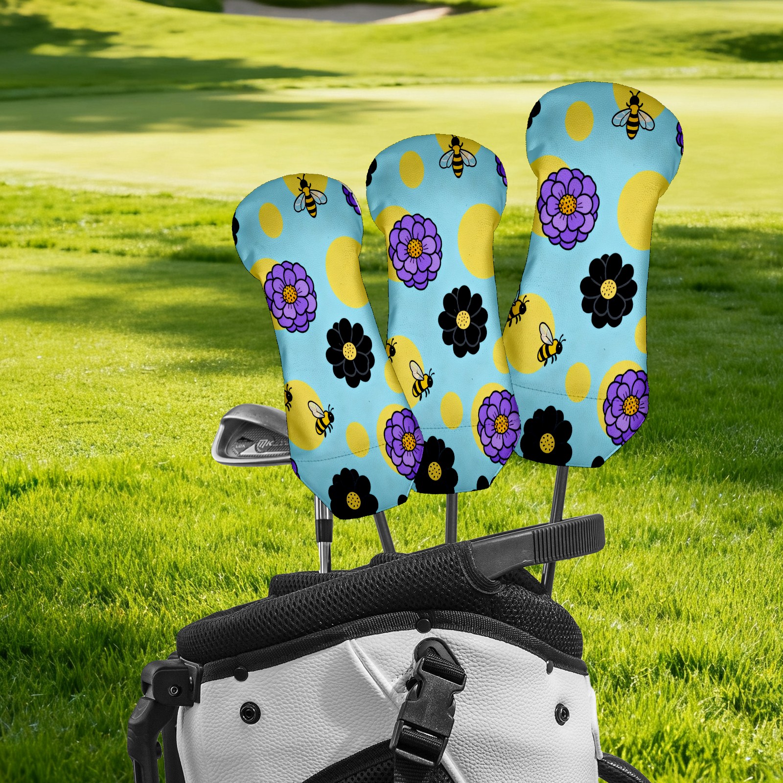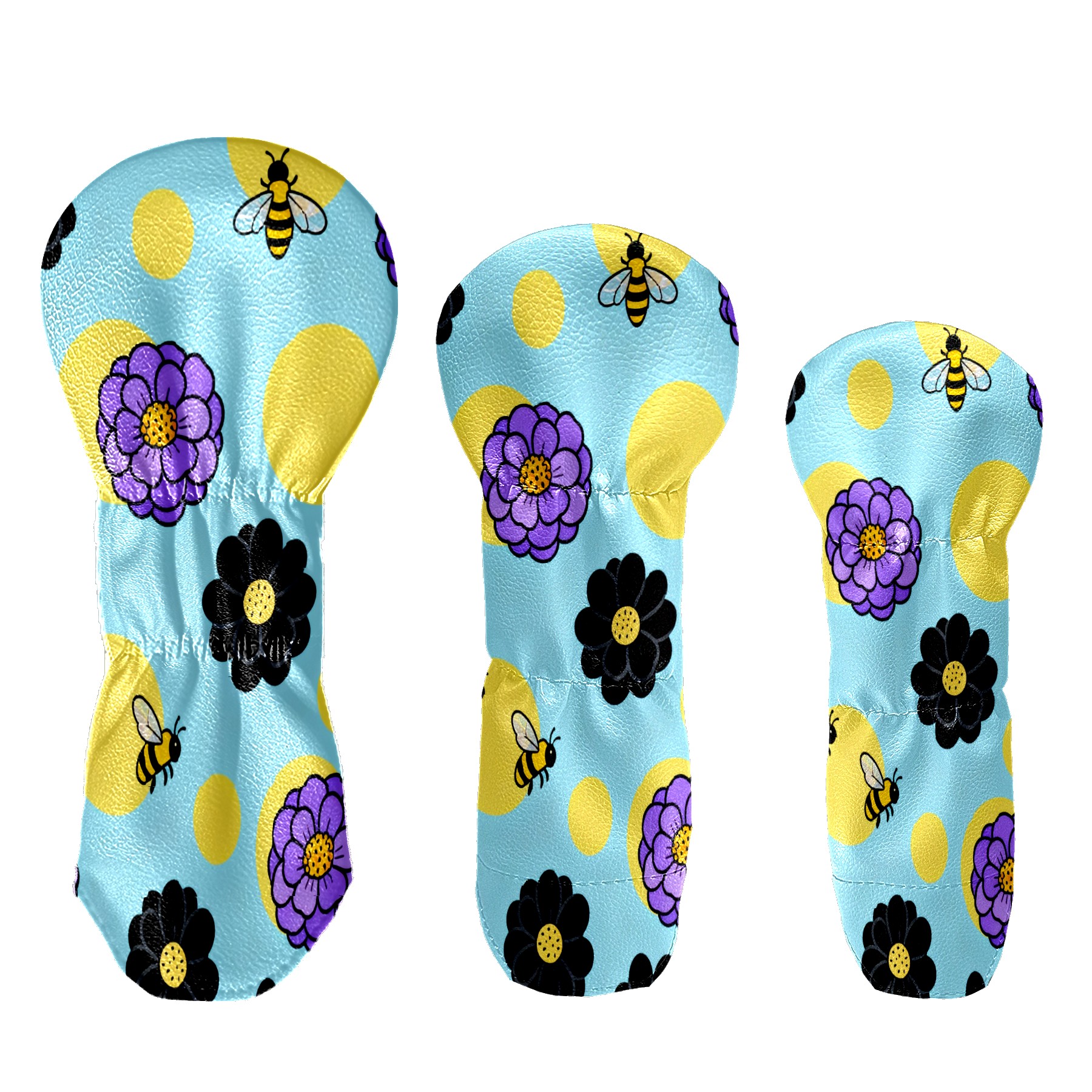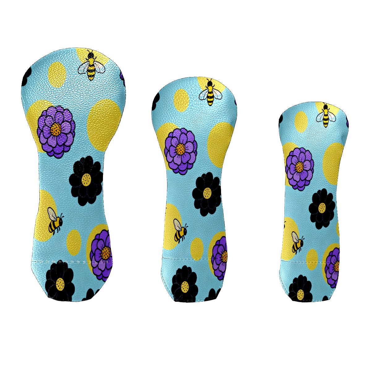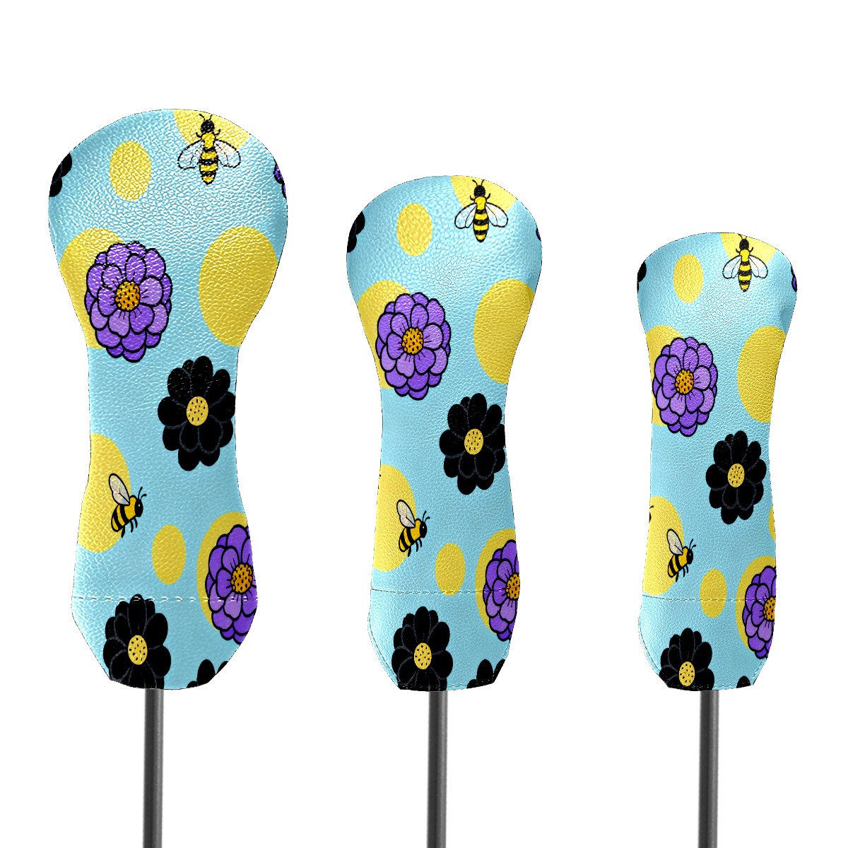 PU Leather Golf Putter Head Covers for Driver, Fairway Wood & Hybrid Clubs, Unisex, Fits All Brands Bee And Flower Pattern
