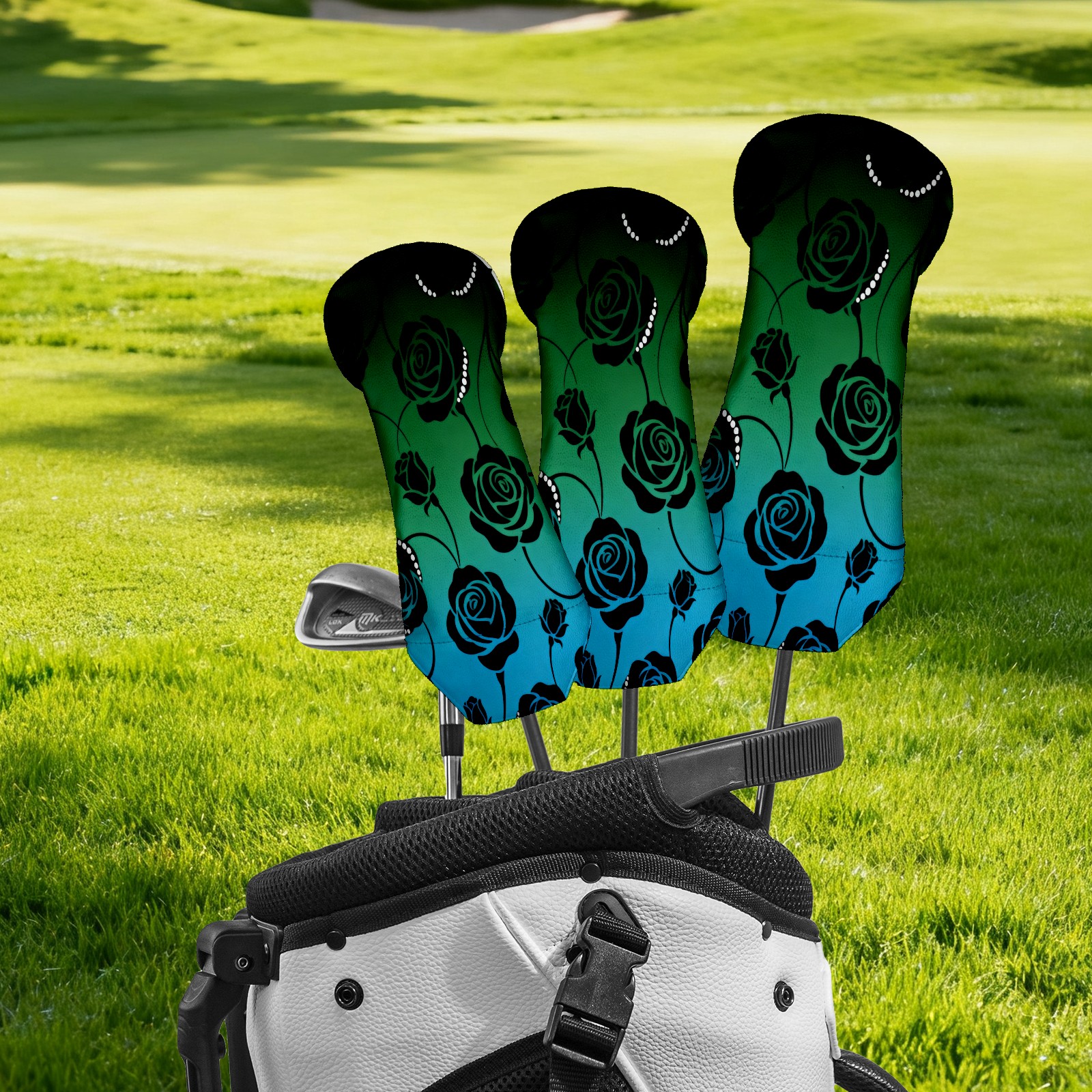 PU Leather Golf Putter Head Covers for Driver, Fairway Wood & Hybrid Clubs, Unisex, Fits All Brands Rose Gradient Pattern