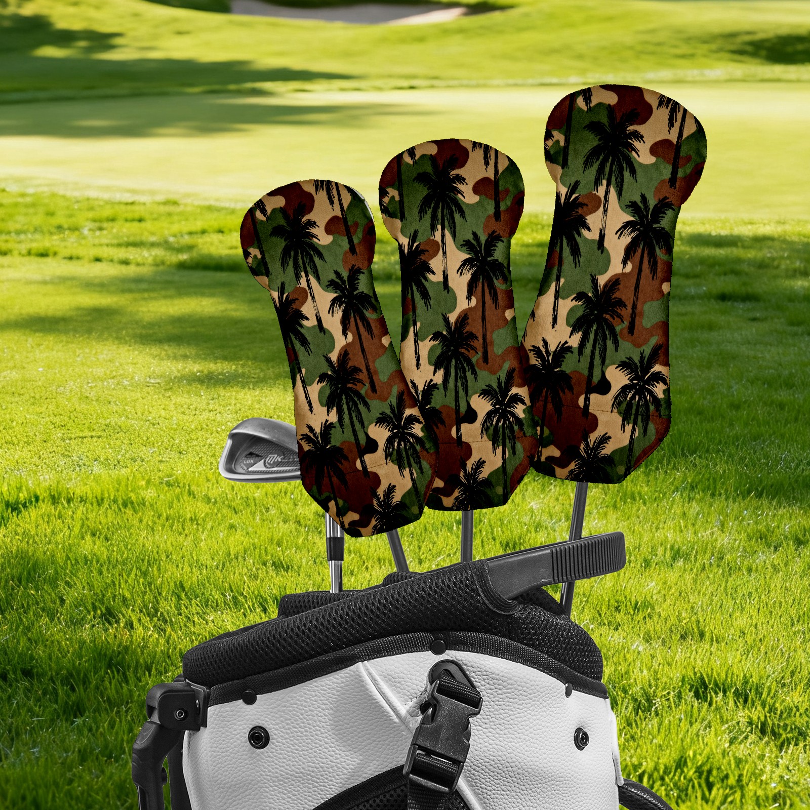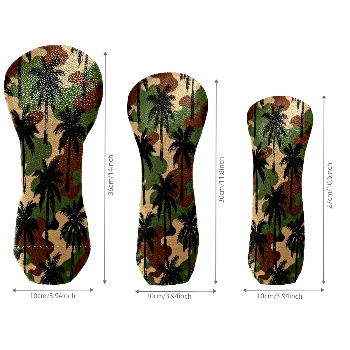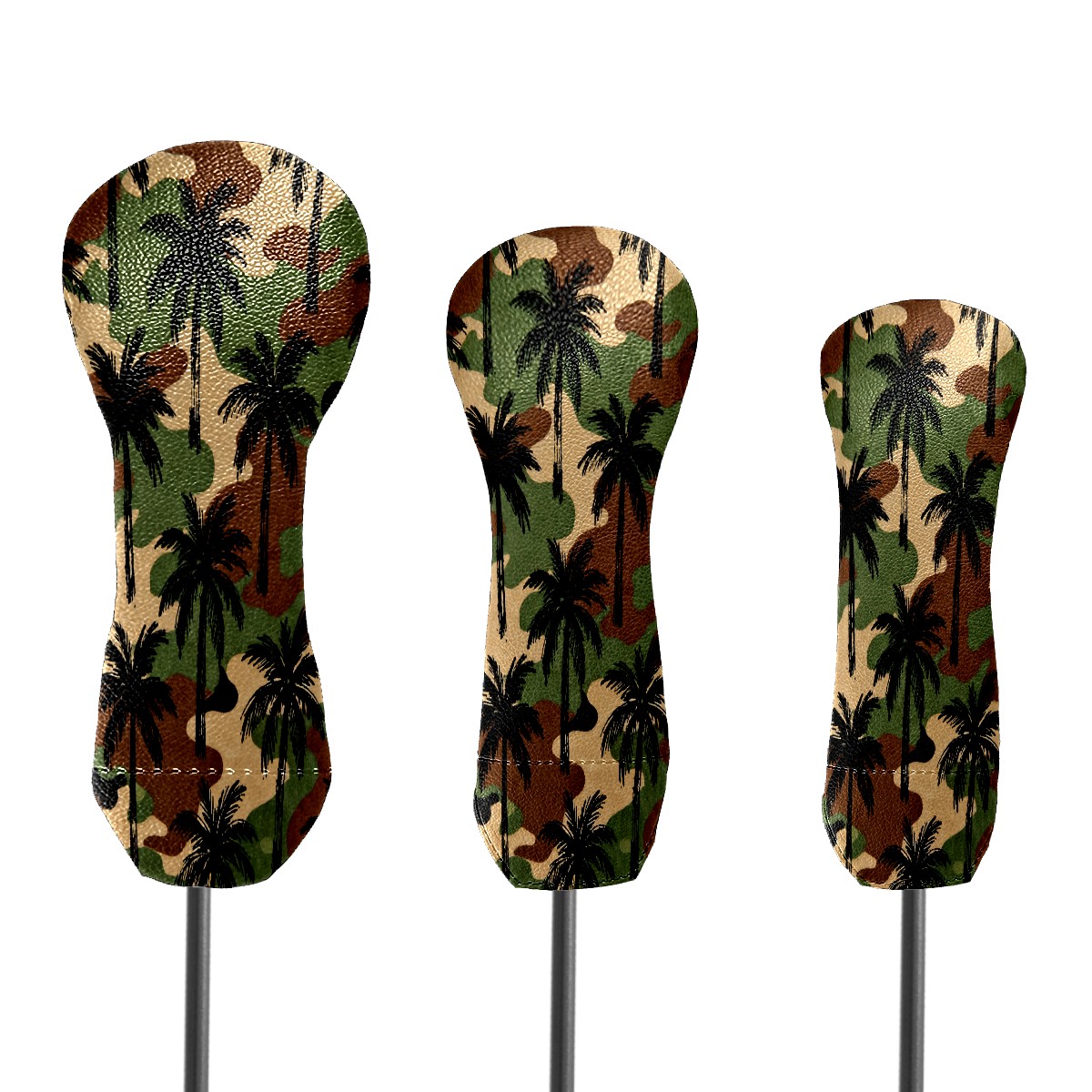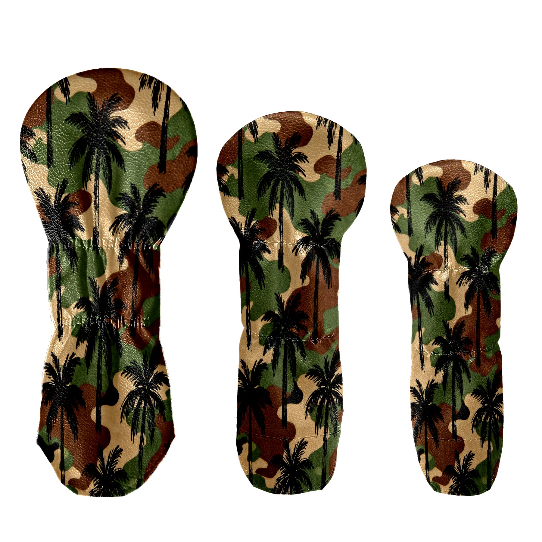 PU Leather Golf Putter Head Covers for Driver, Fairway Wood & Hybrid Clubs, Unisex, Fits All Brands Camouflage Palm Tree Pattern