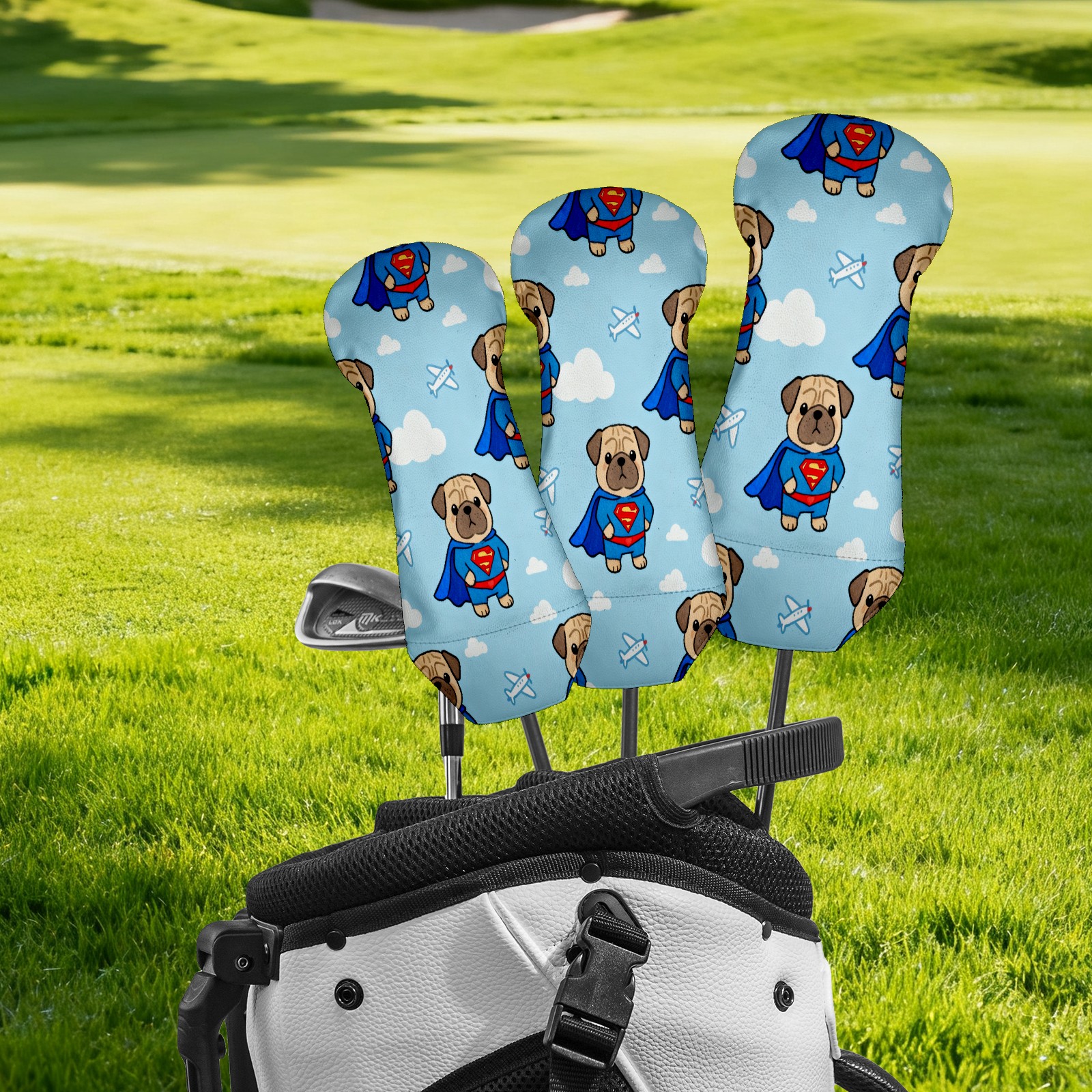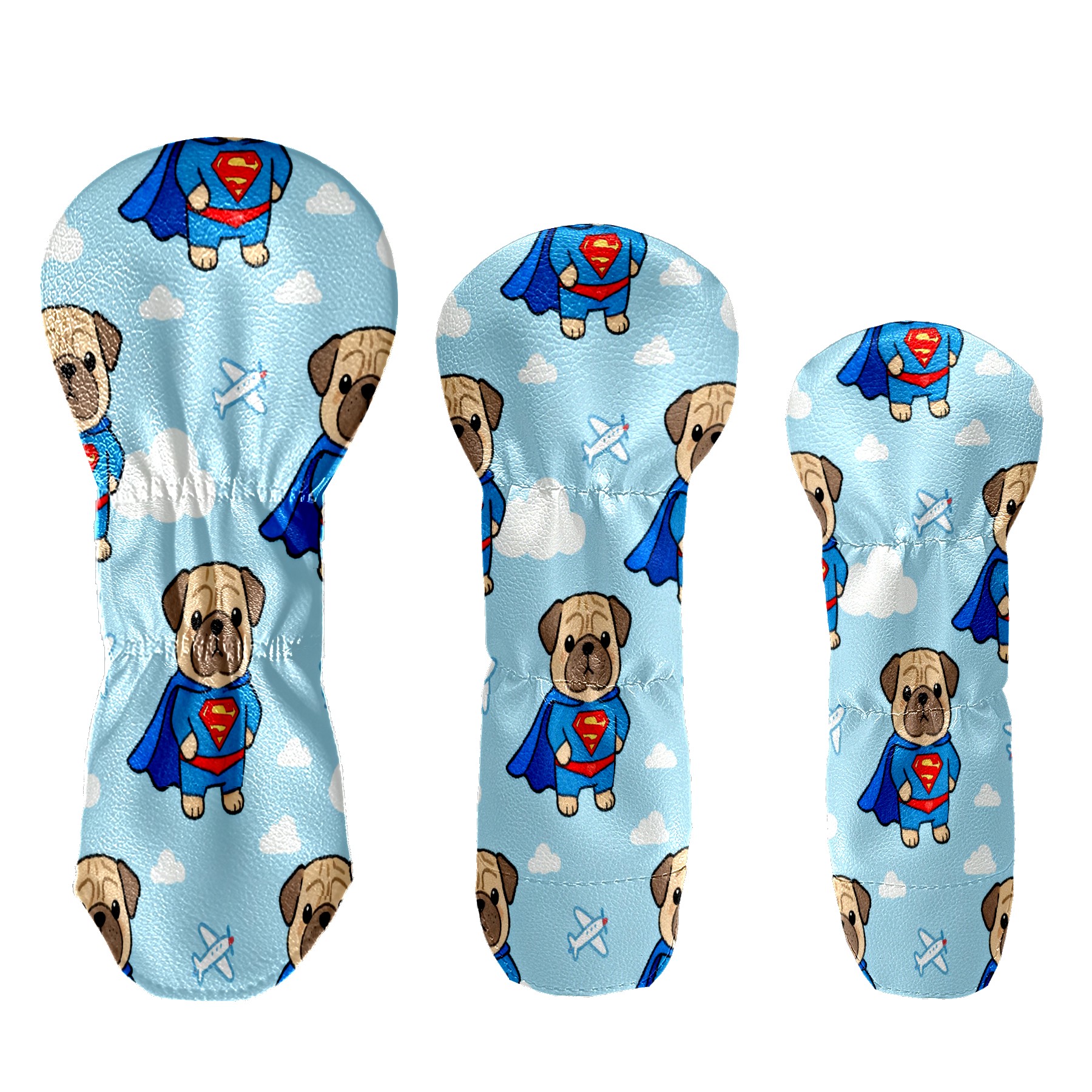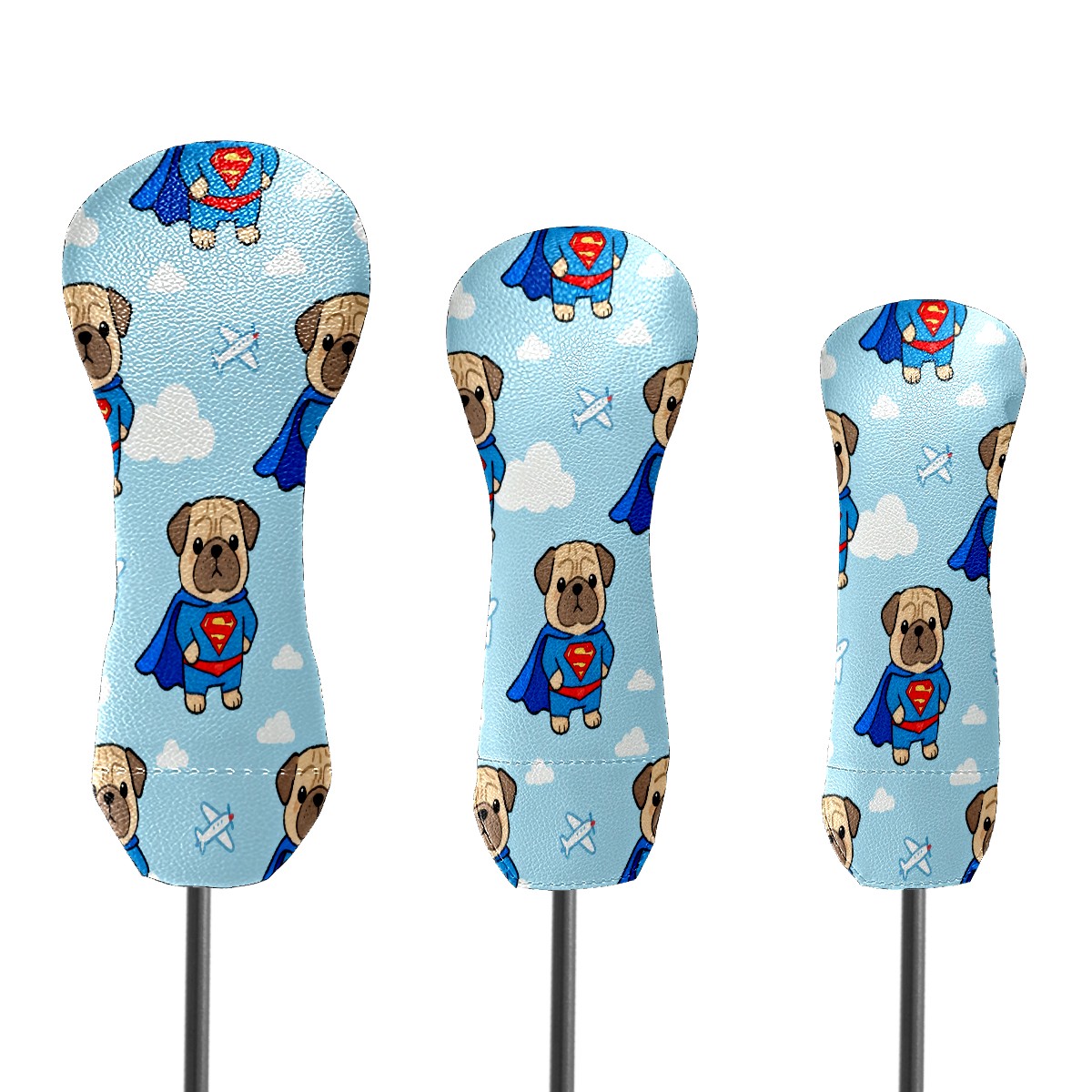 PU Leather Golf Putter Head Covers for Driver, Fairway Wood & Hybrid Clubs, Unisex, Fits All Brands Blue Superman Shar Pei