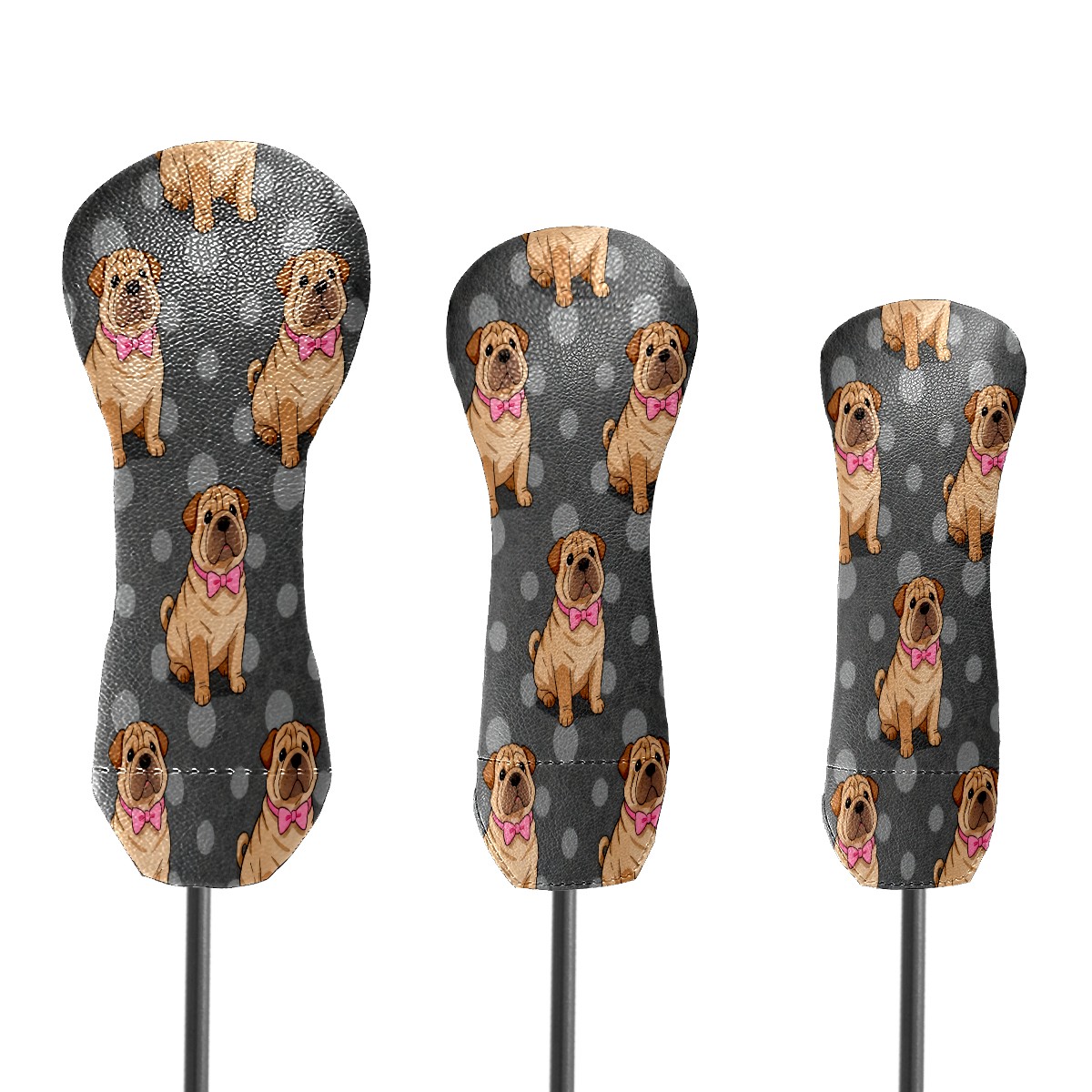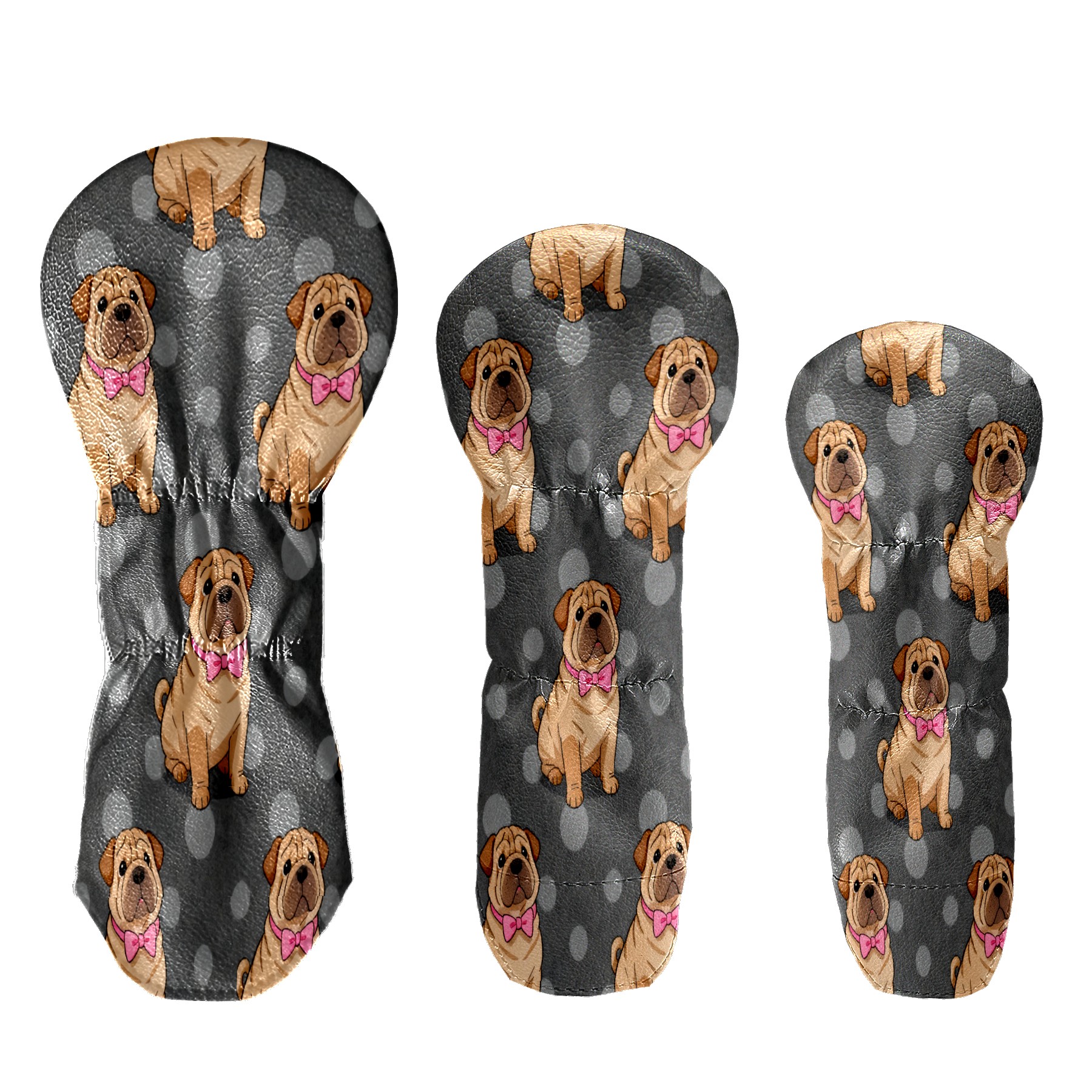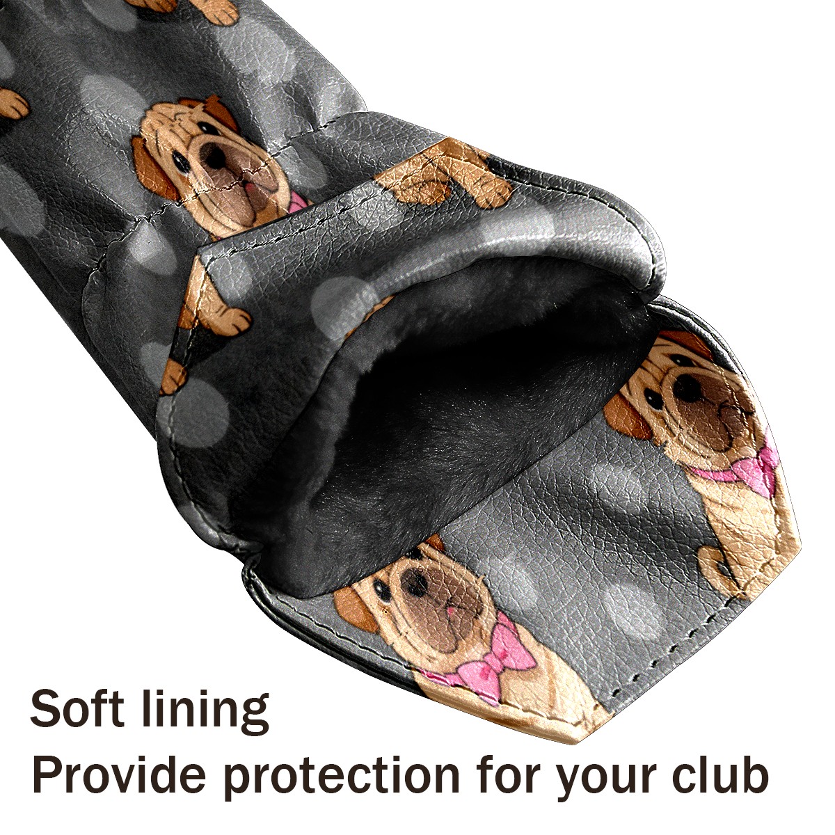 PU Leather Golf Putter Head Covers for Driver, Fairway Wood & Hybrid Clubs, Unisex, Fits All Brands Light Brown Shar Pei