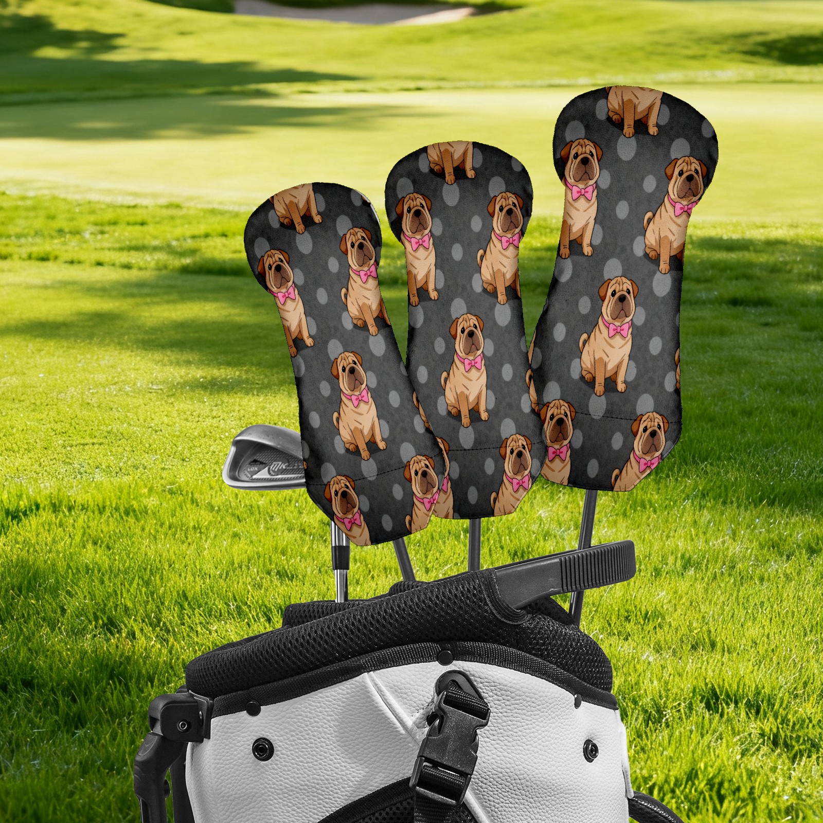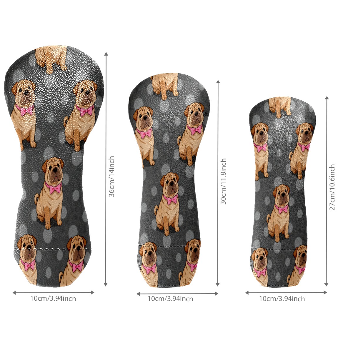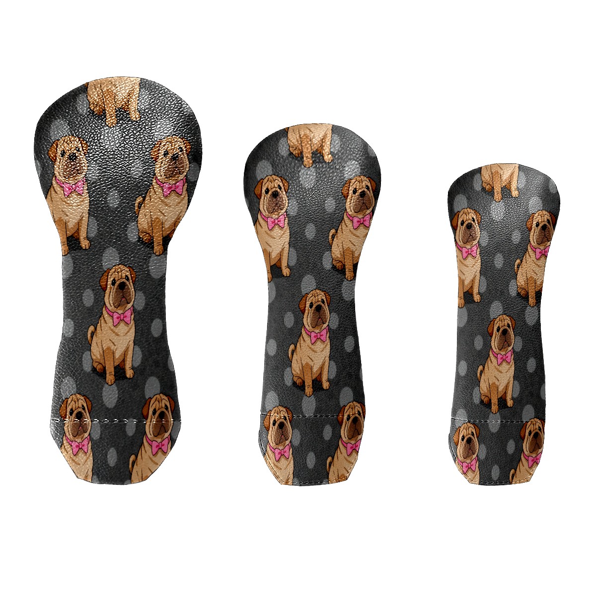 PU Leather Golf Putter Head Covers for Driver, Fairway Wood & Hybrid Clubs, Unisex, Fits All Brands Light Brown Shar Pei
