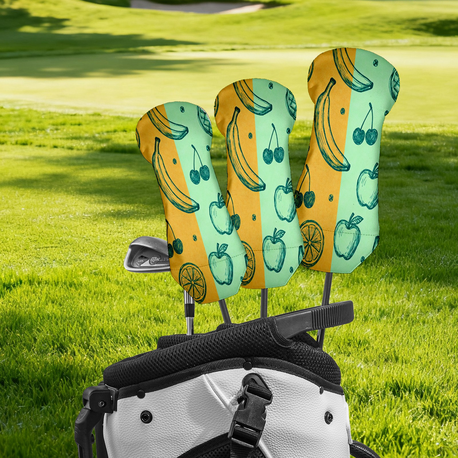 PU Leather Golf Putter Head Covers for Driver, Fairway Wood & Hybrid Clubs, Unisex, Fits All Brands Summer Fruit Patterns