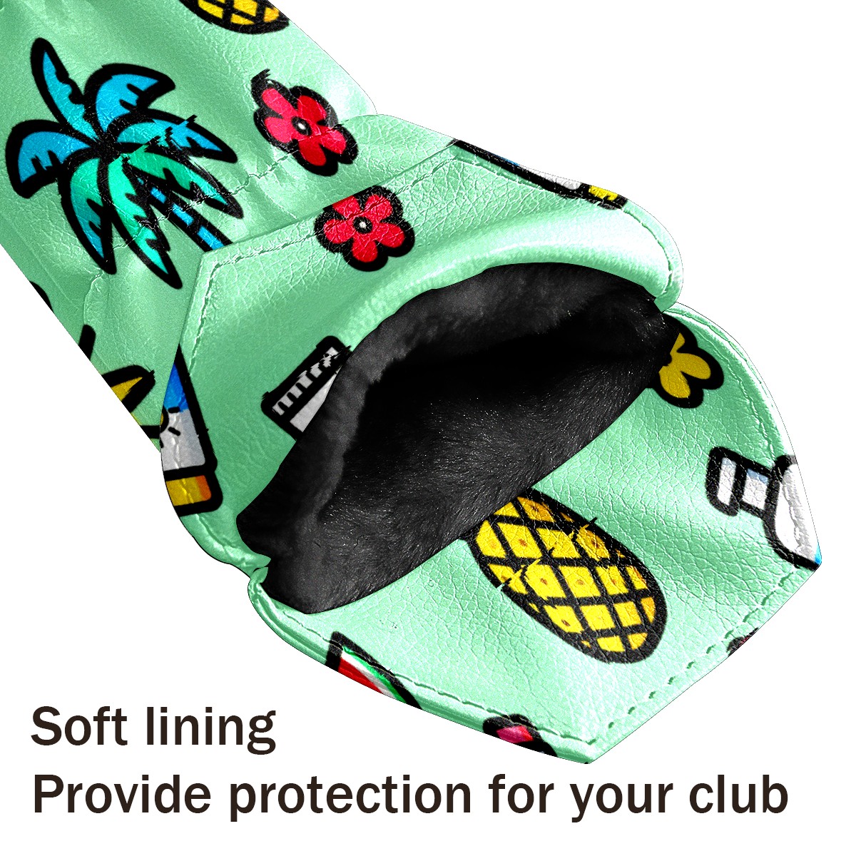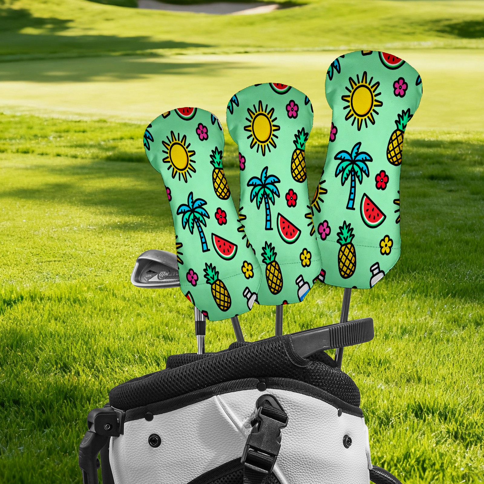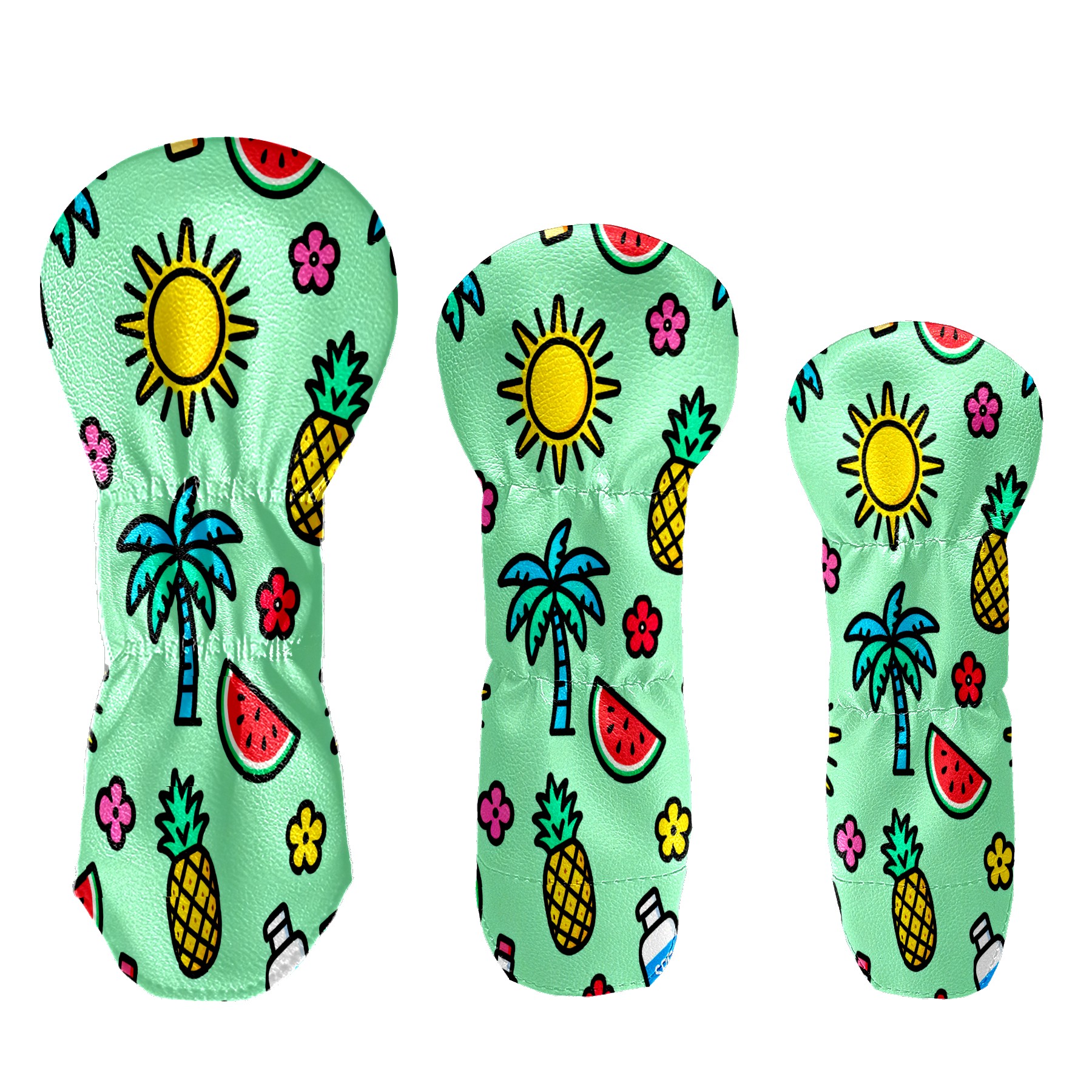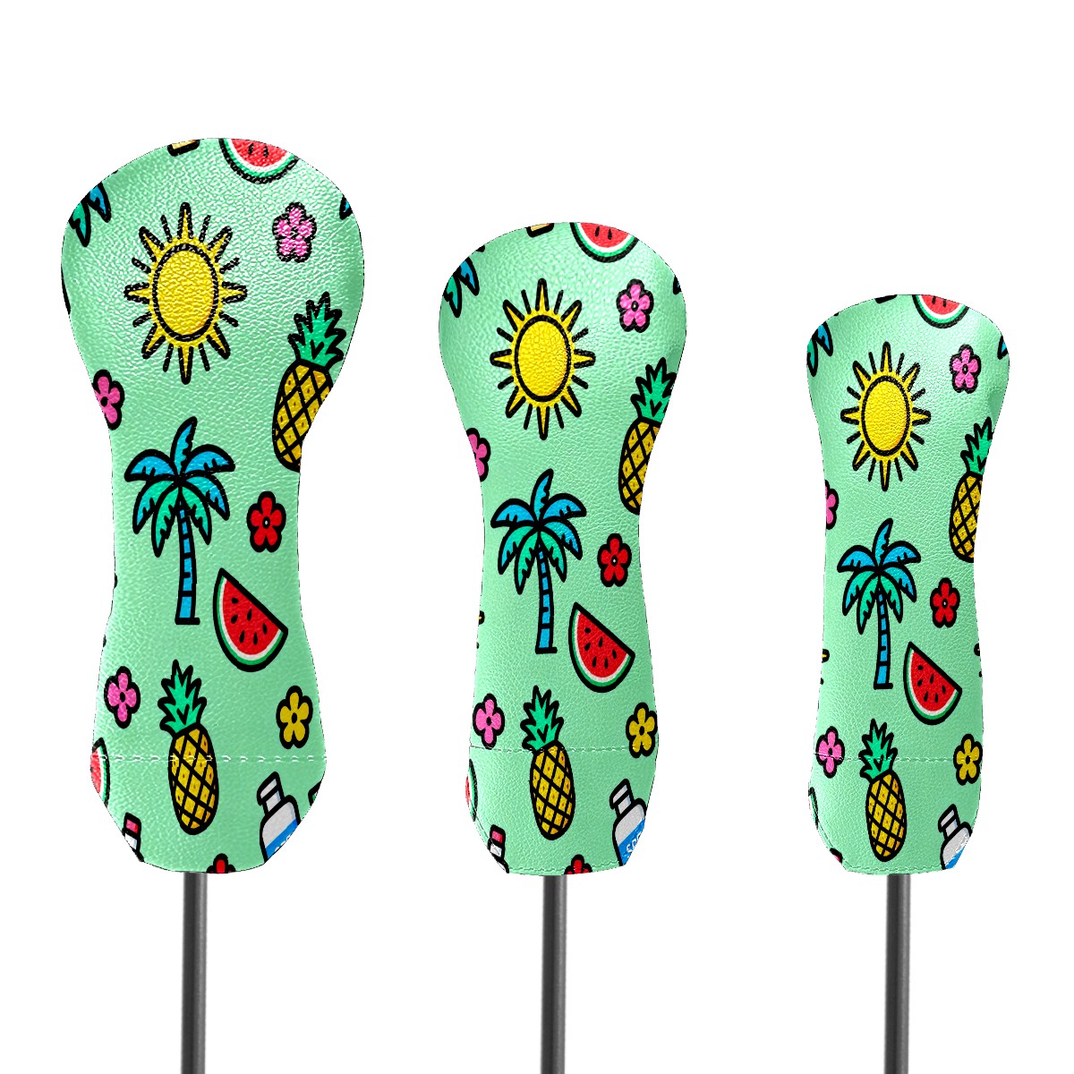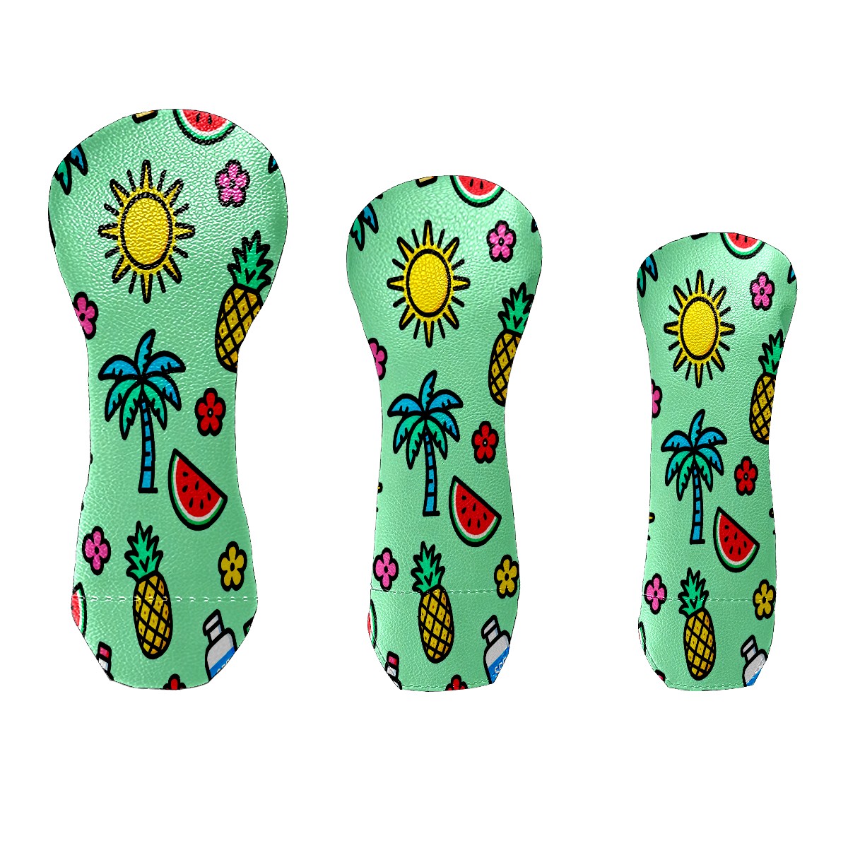 PU Leather Golf Putter Head Covers for Driver, Fairway Wood & Hybrid Clubs, Unisex, Fits All Brands Green Summer Beach Pattern