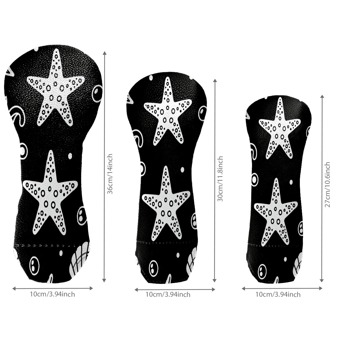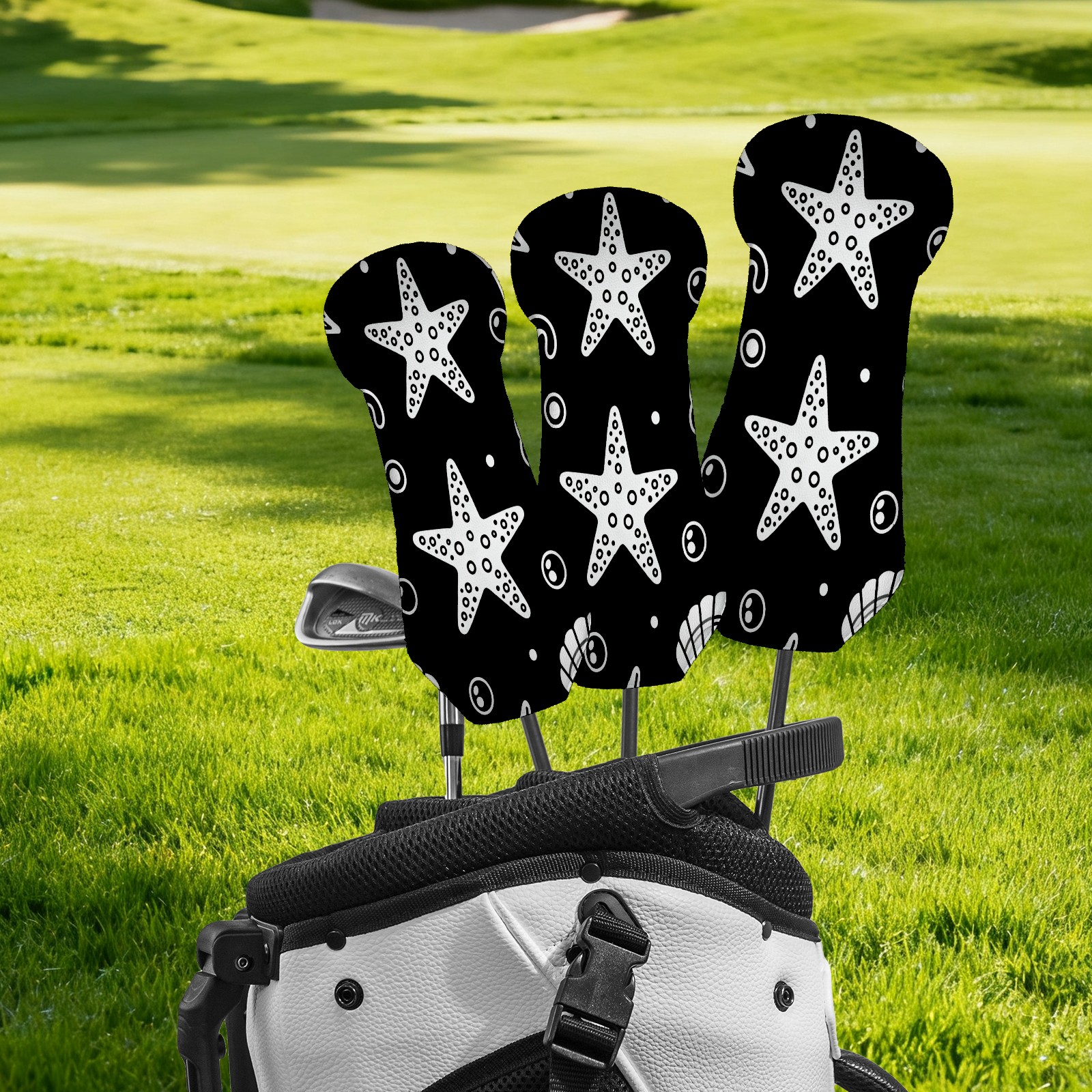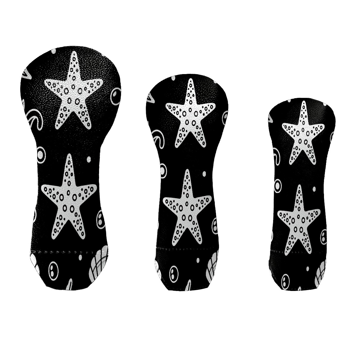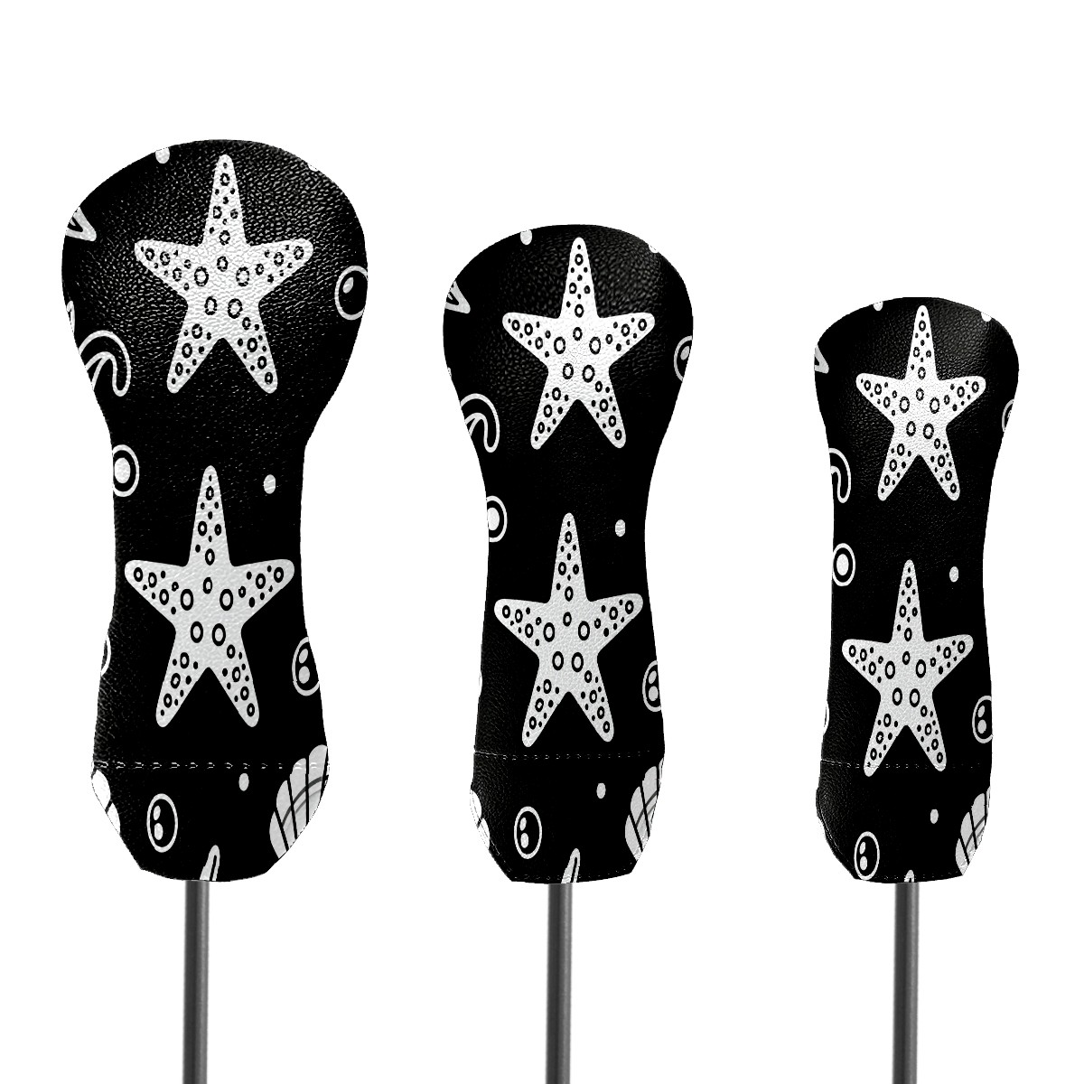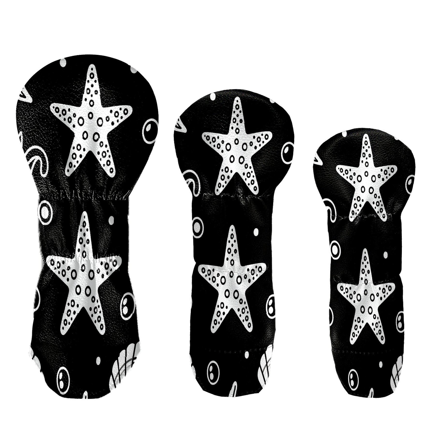 PU Leather Golf Putter Head Covers for Driver, Fairway Wood & Hybrid Clubs, Unisex, Fits All Brands Minimalist Black And White Starfish