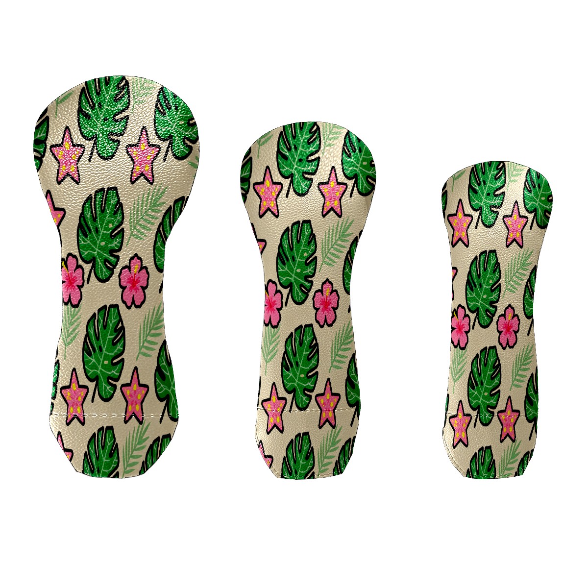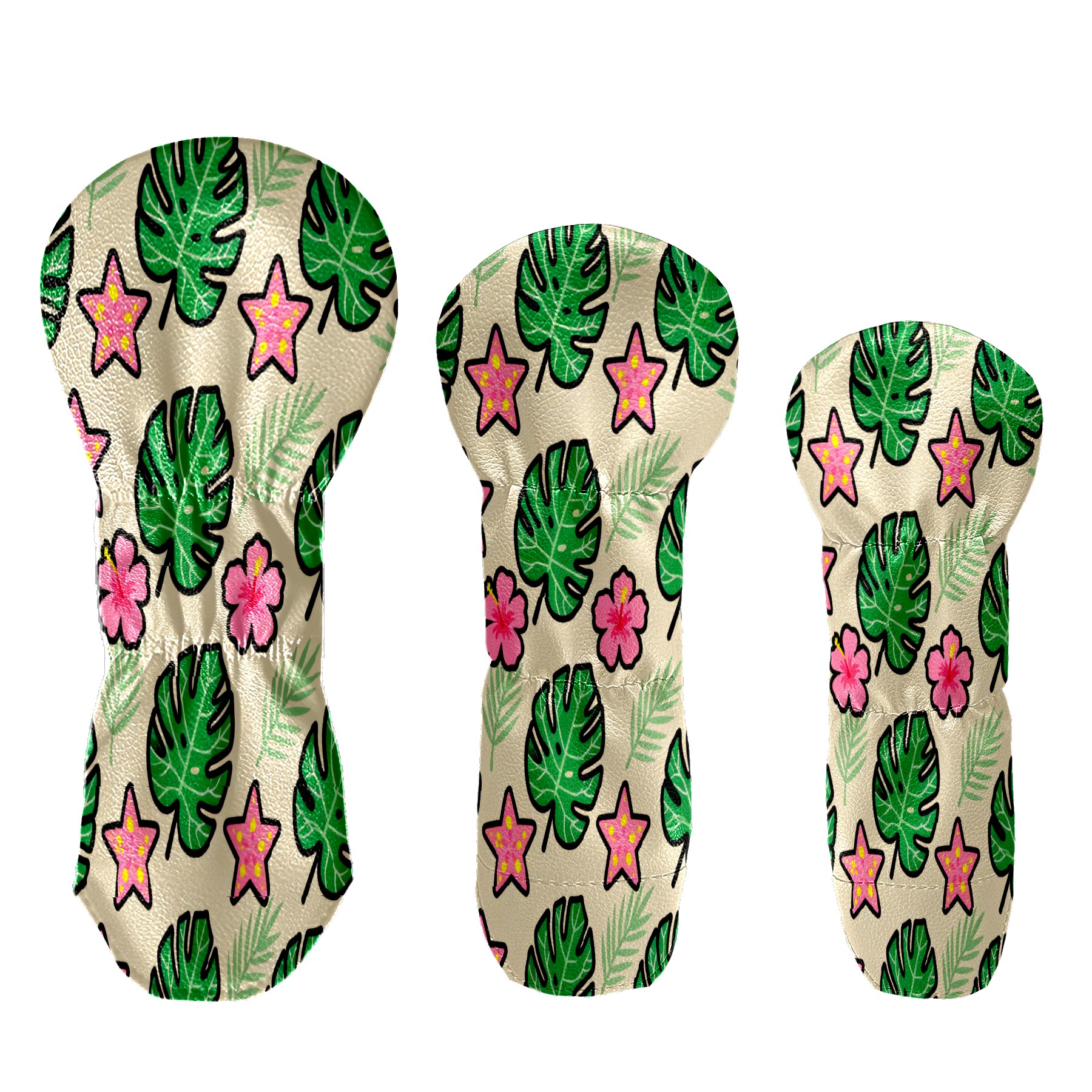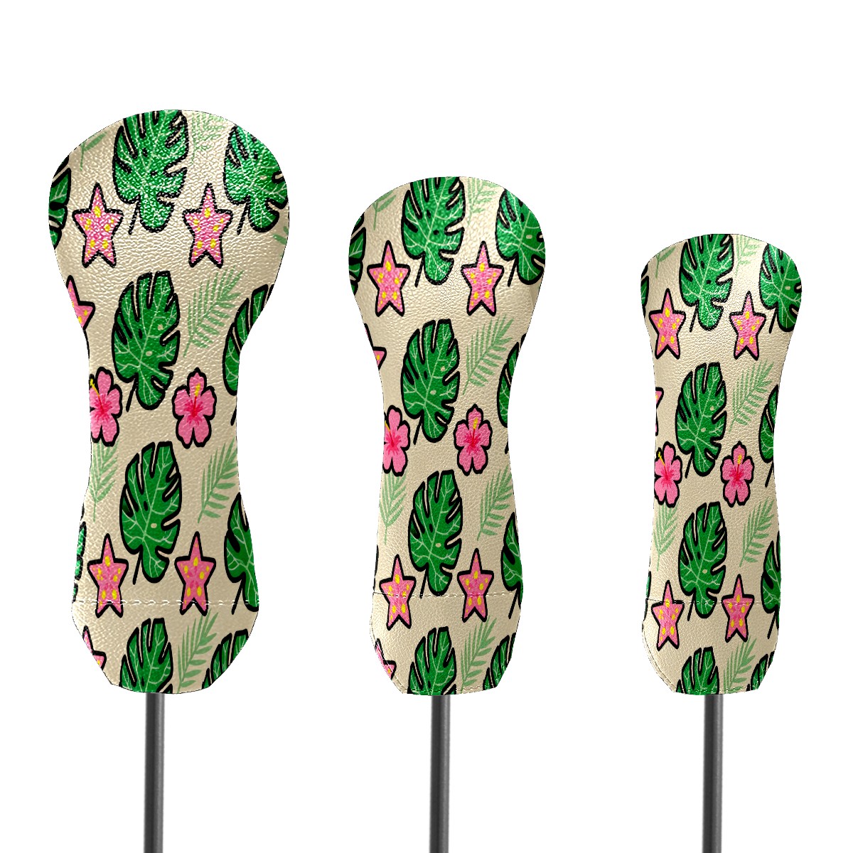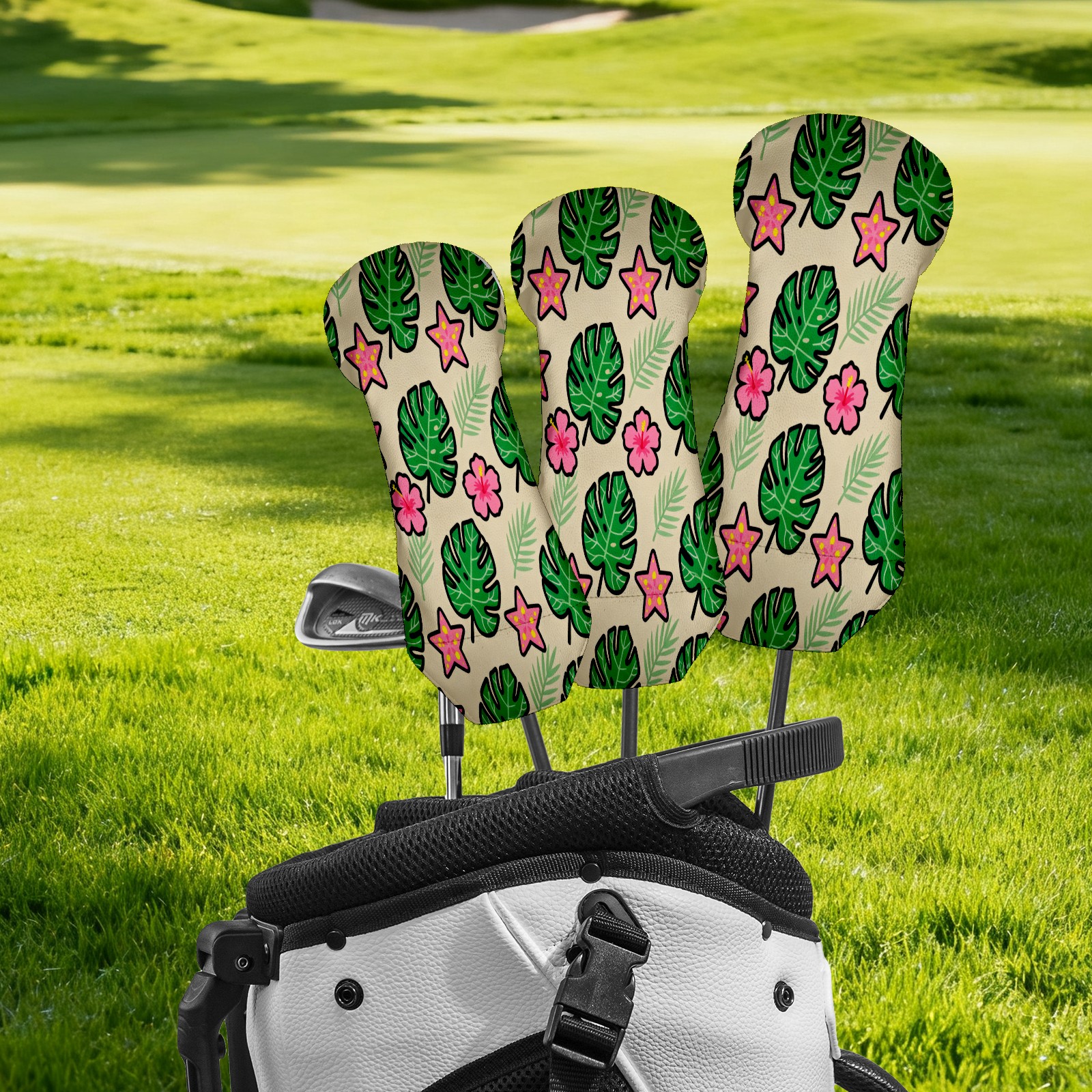 PU Leather Golf Putter Head Covers for Driver, Fairway Wood & Hybrid Clubs, Unisex, Fits All Brands Green Monstera Leaves And Flowers