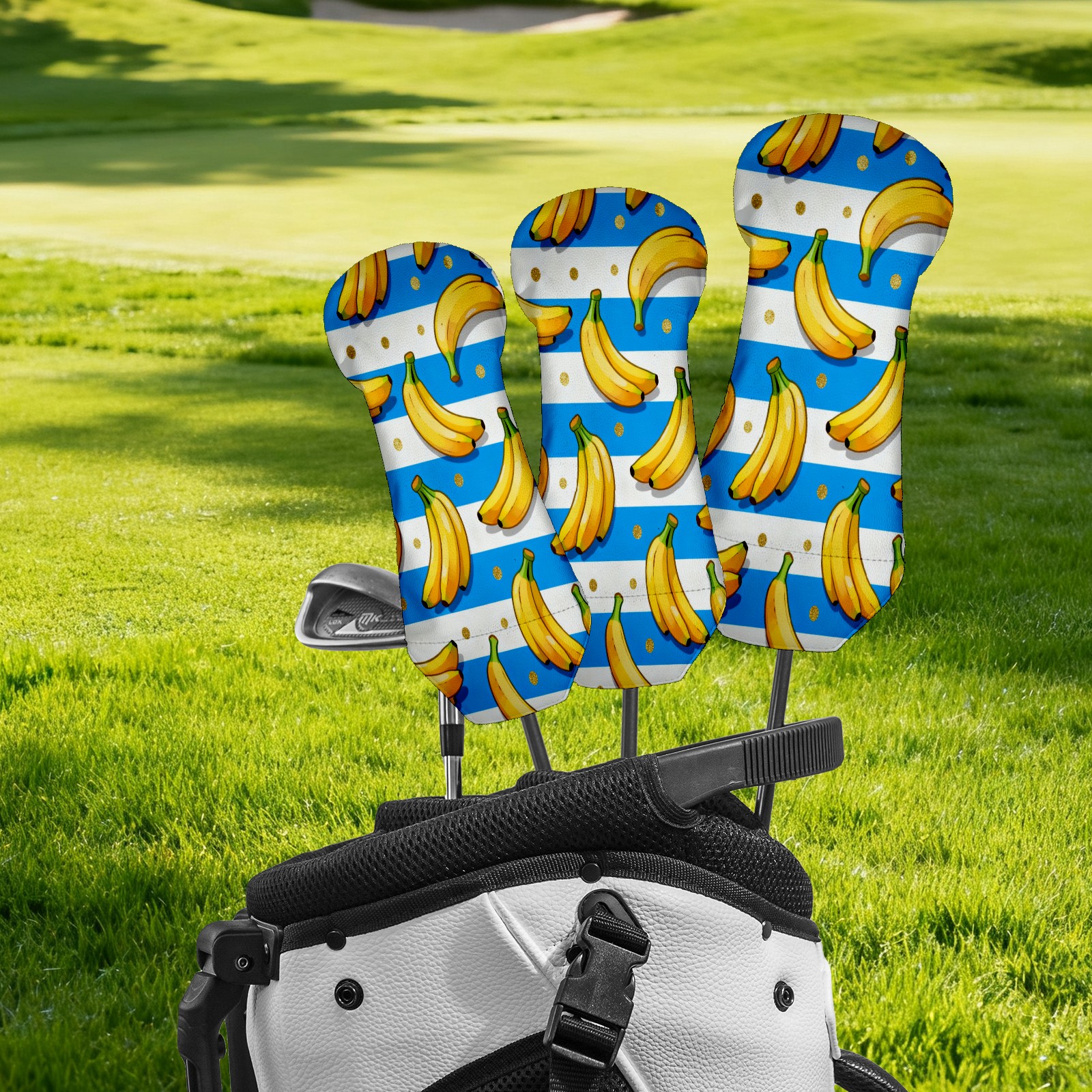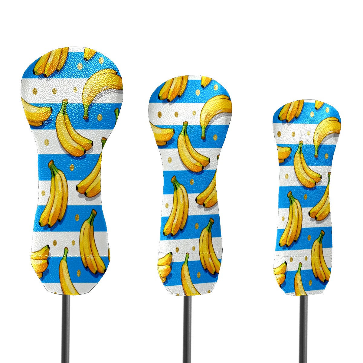 PU Leather Golf Putter Head Covers for Driver, Fairway Wood & Hybrid Clubs, Unisex, Fits All Brands Banana Blue Gold Dots