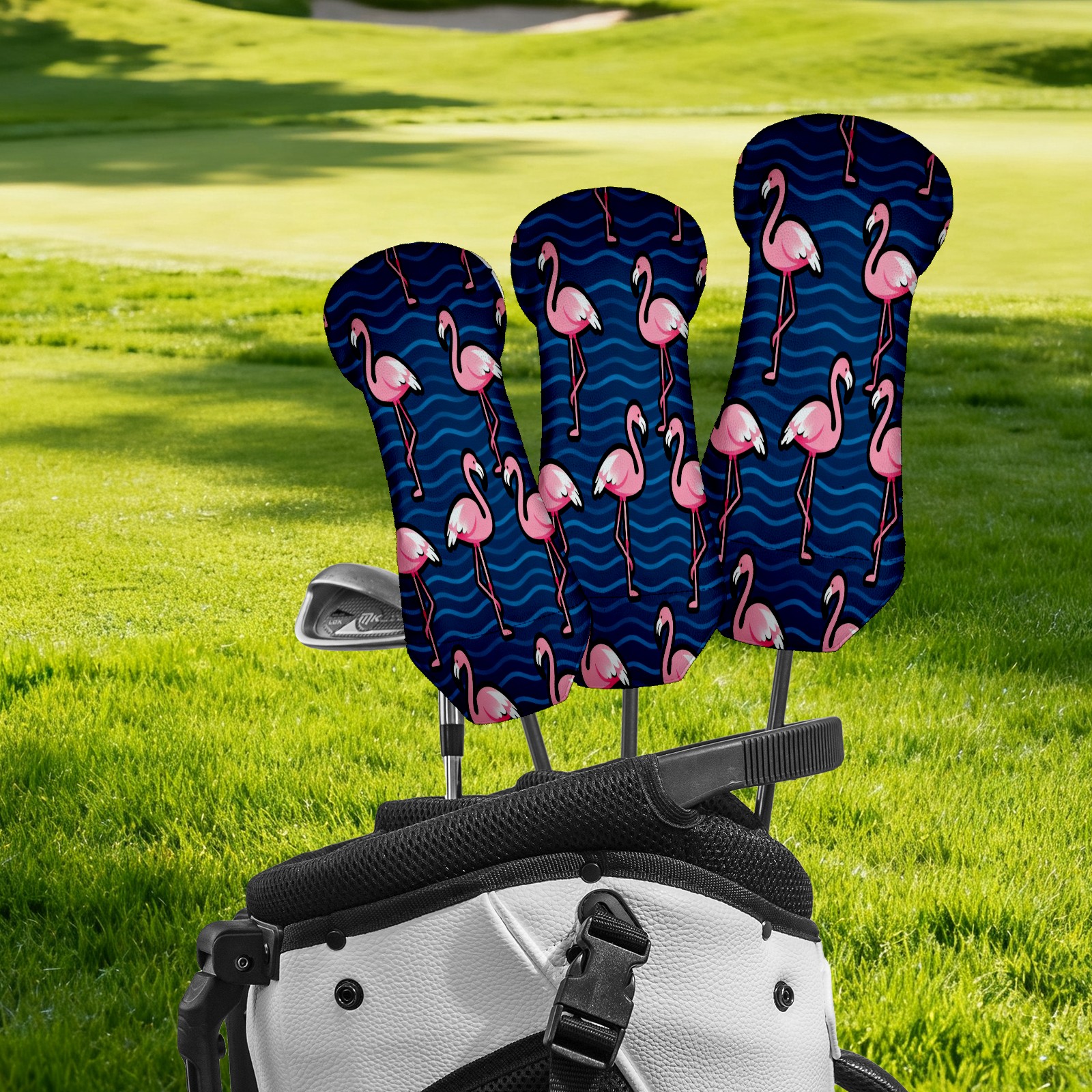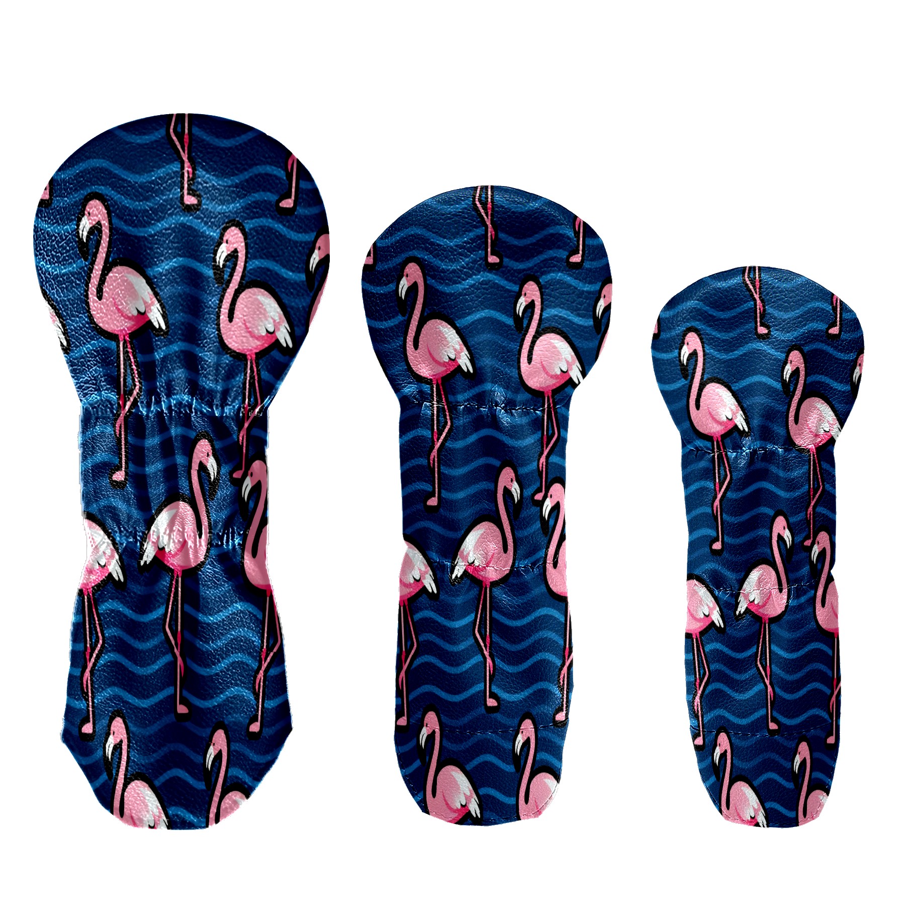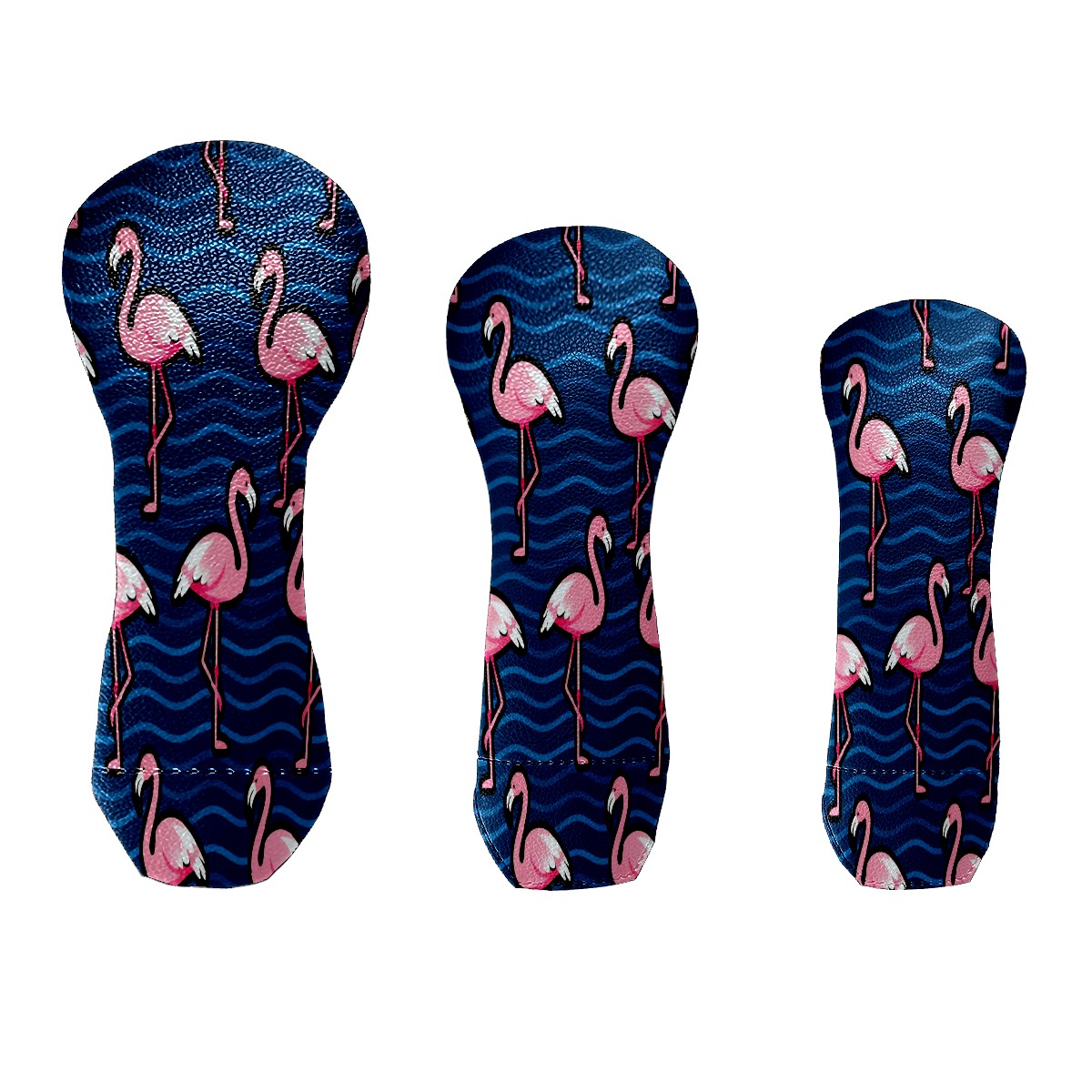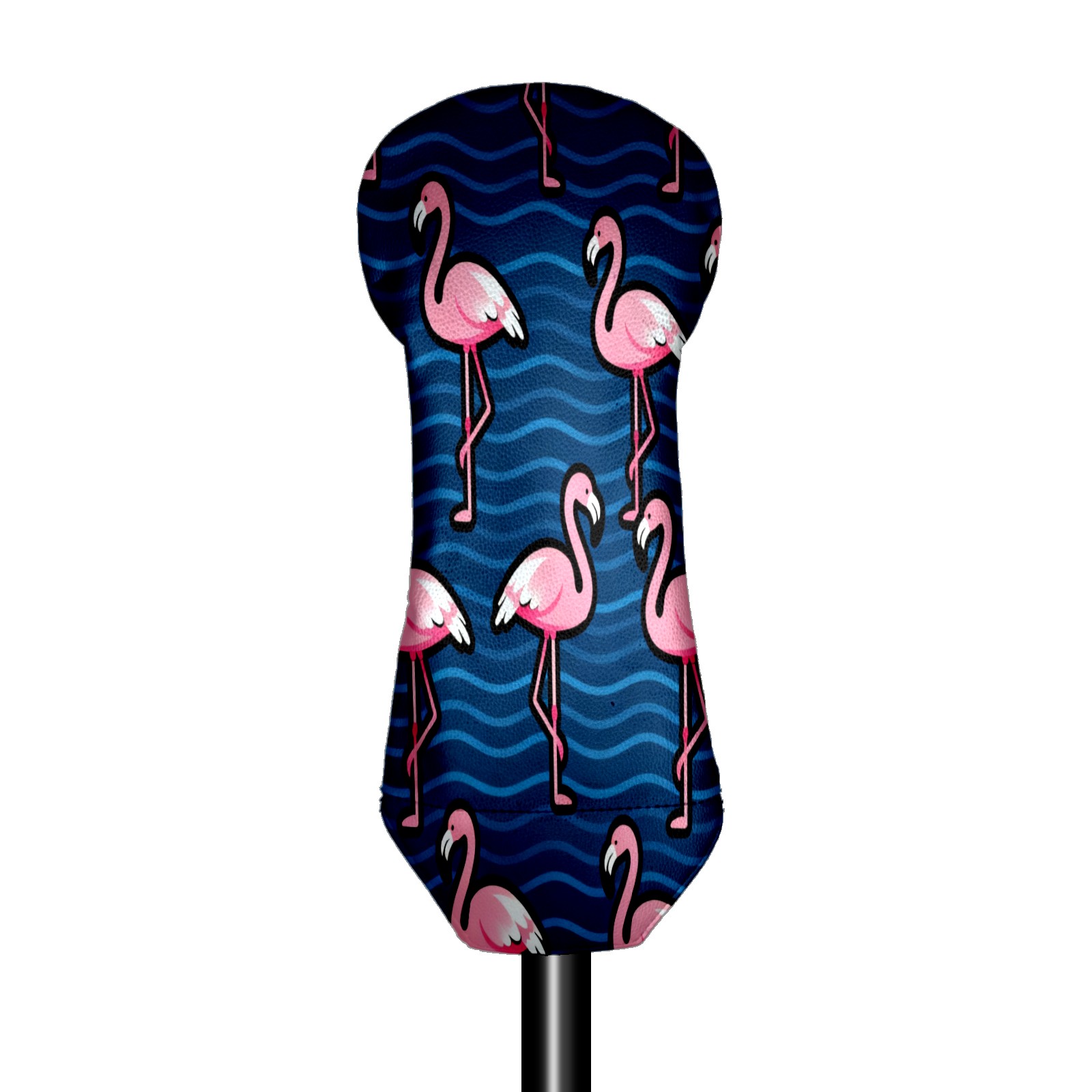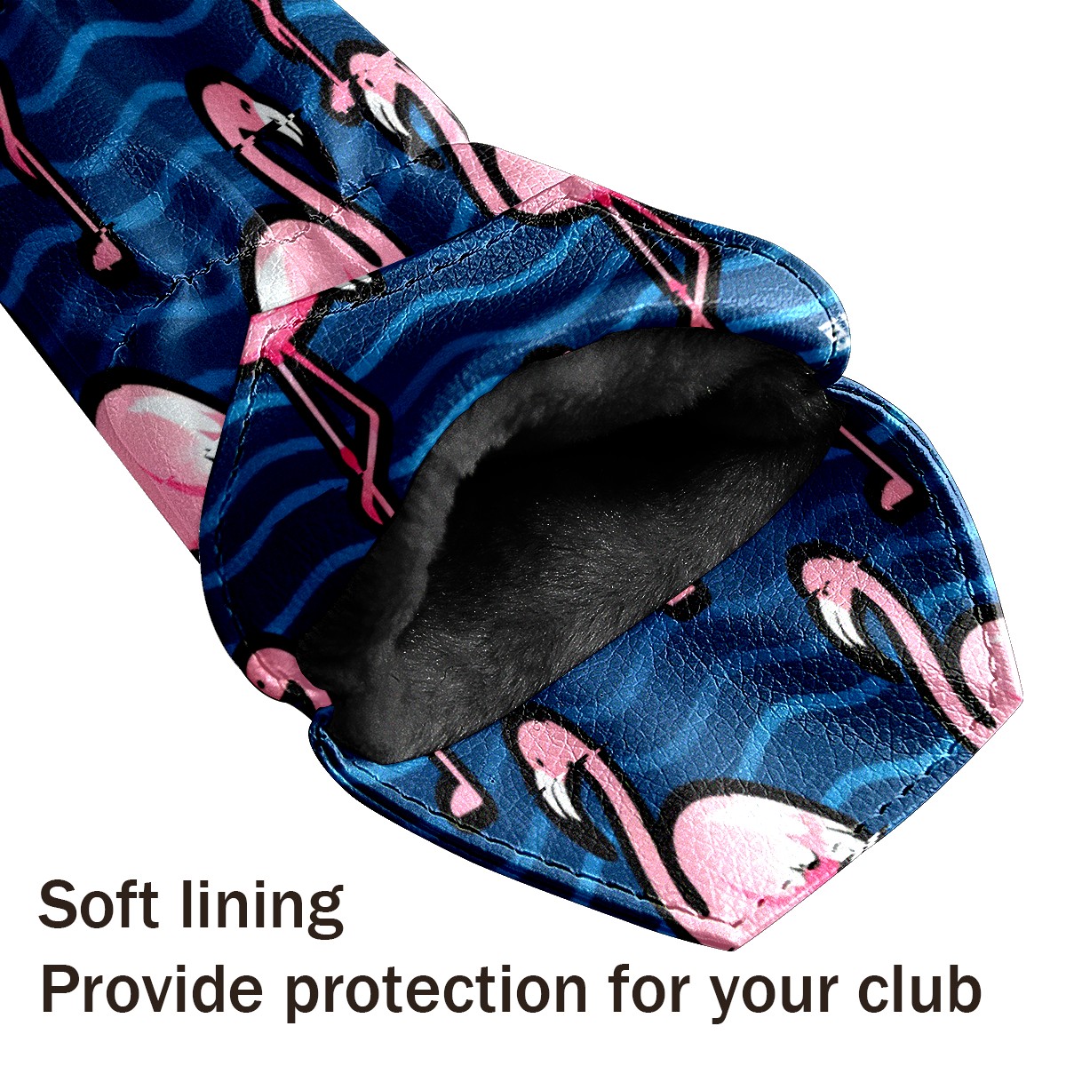 PU Leather Golf Putter Head Covers for Driver, Fairway Wood & Hybrid Clubs, Unisex, Fits All Brands Flamingo Deep Blue Ripples