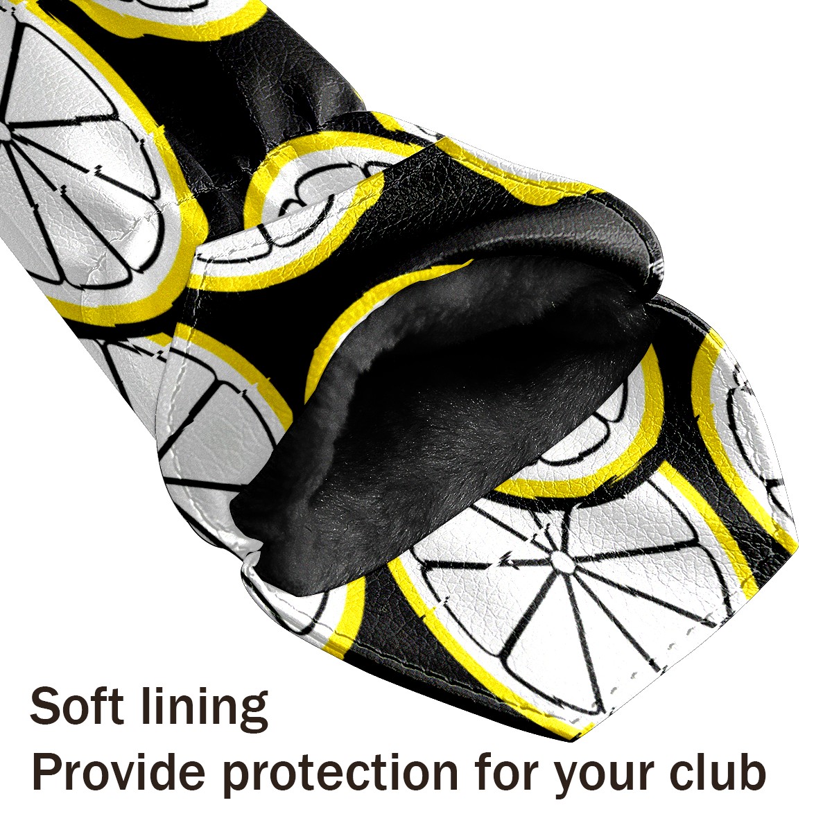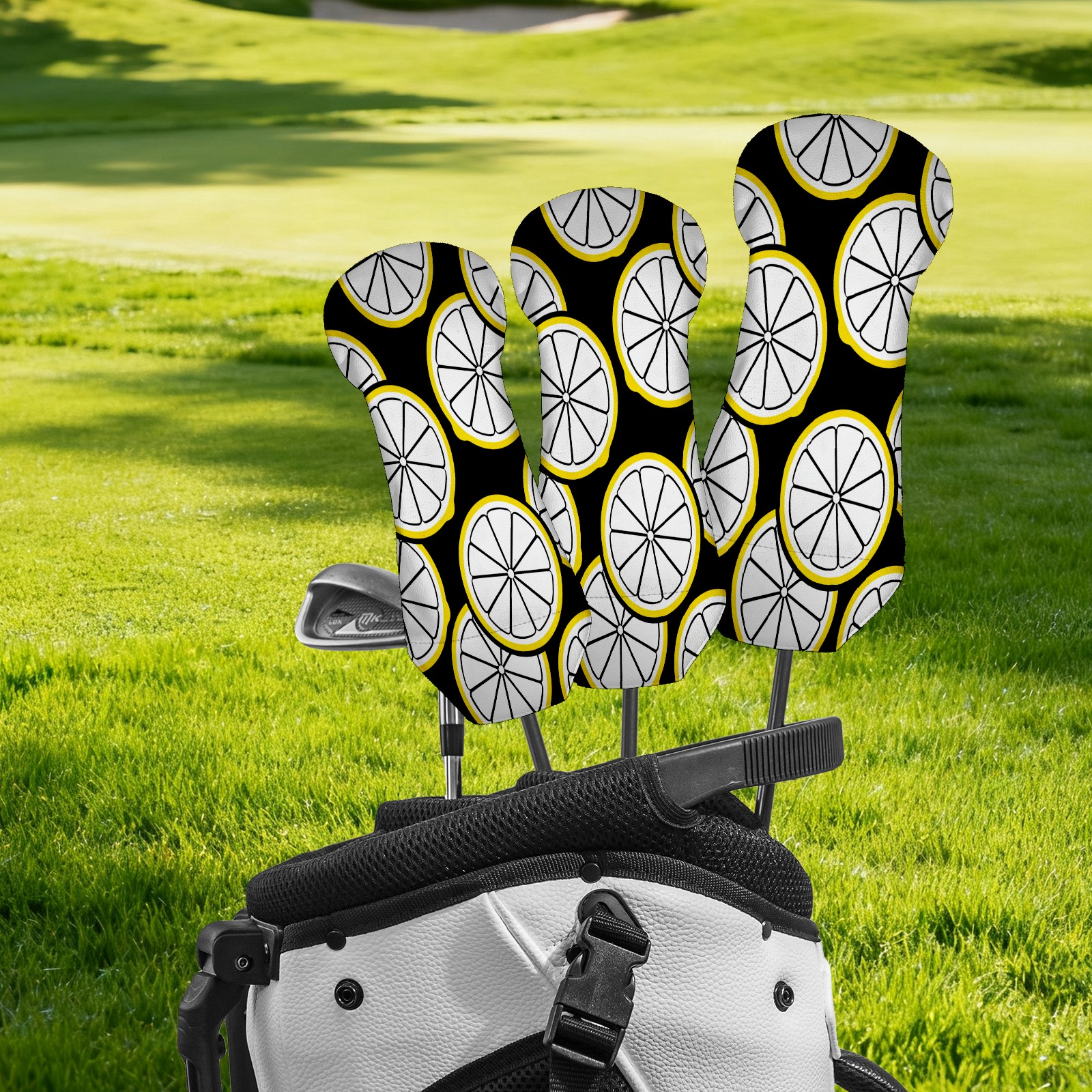 PU Leather Golf Putter Head Covers for Driver, Fairway Wood & Hybrid Clubs, Unisex, Fits All Brands Black And White Striped Lemon Slices
