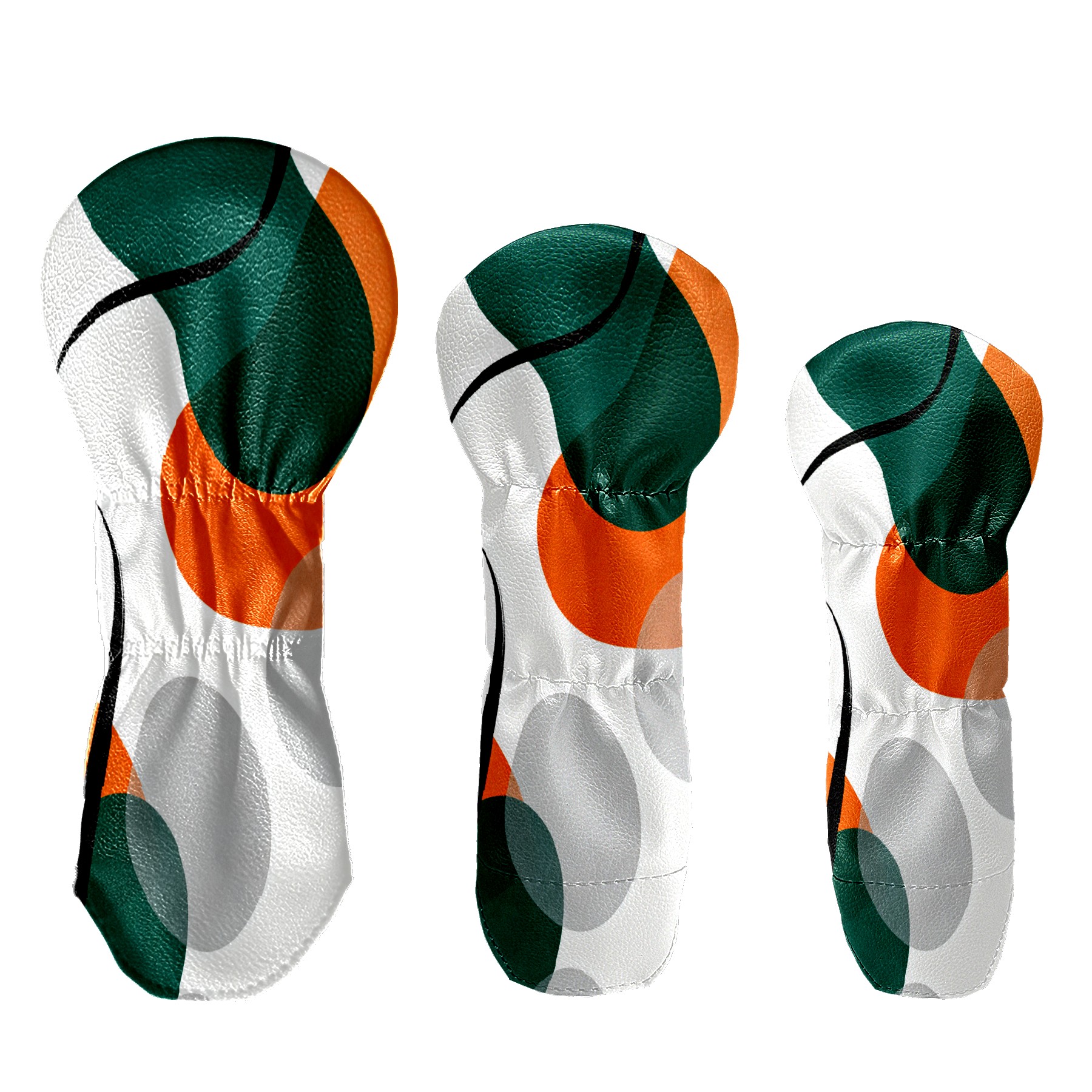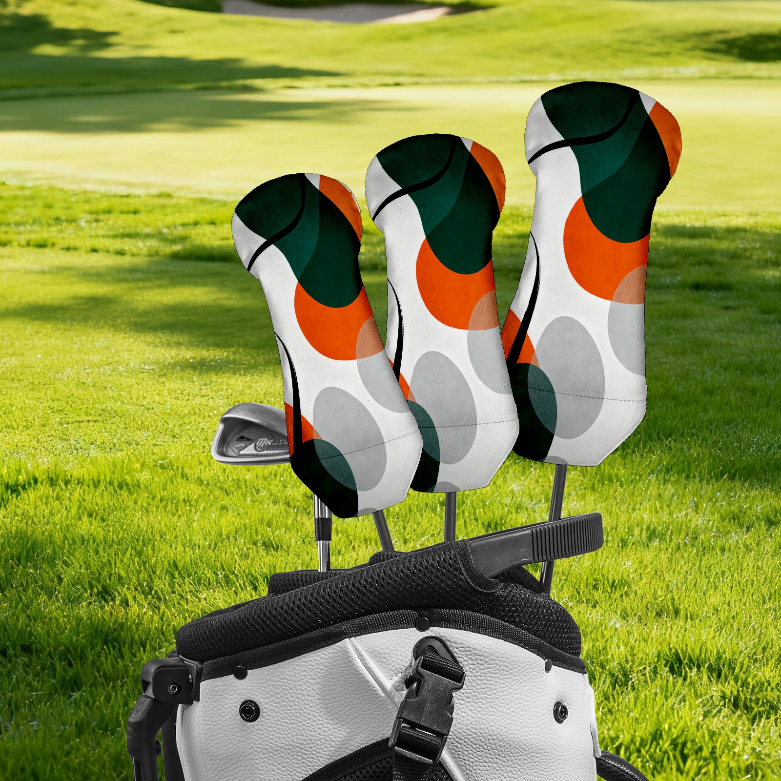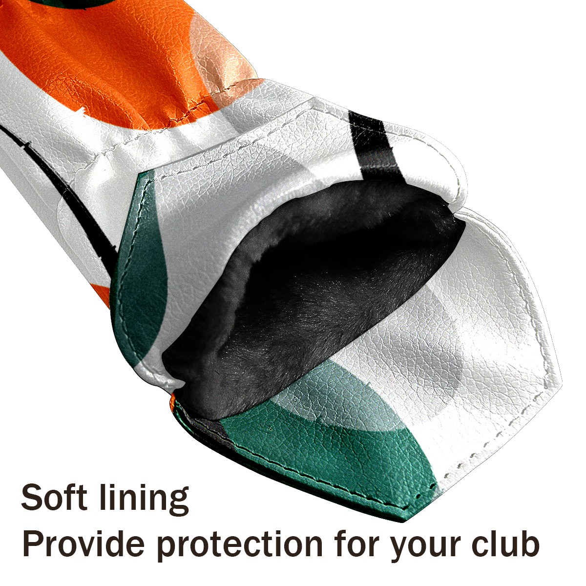 PU Leather Golf Putter Head Covers for Driver, Fairway Wood & Hybrid Clubs, Unisex, Fits All Brands Dark Green And Orange Smooth Curves