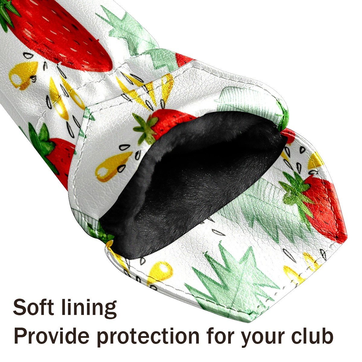 Golf Club Cover Velvet Lining Suitable for the First Wood, Fairway Wood and Hybrid Club Head Cover, Suitable for Men and Wome Strawberry Pattern