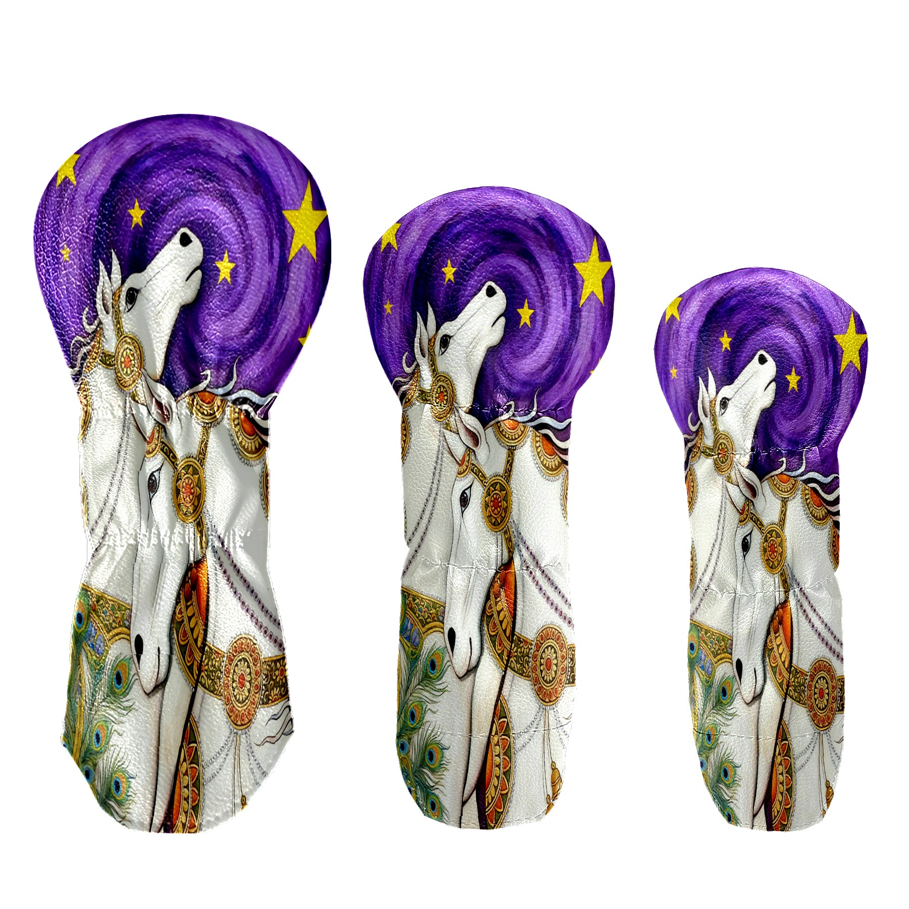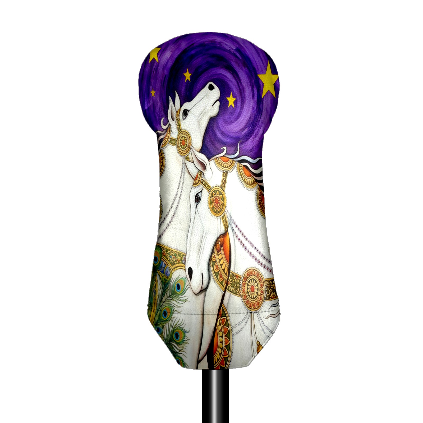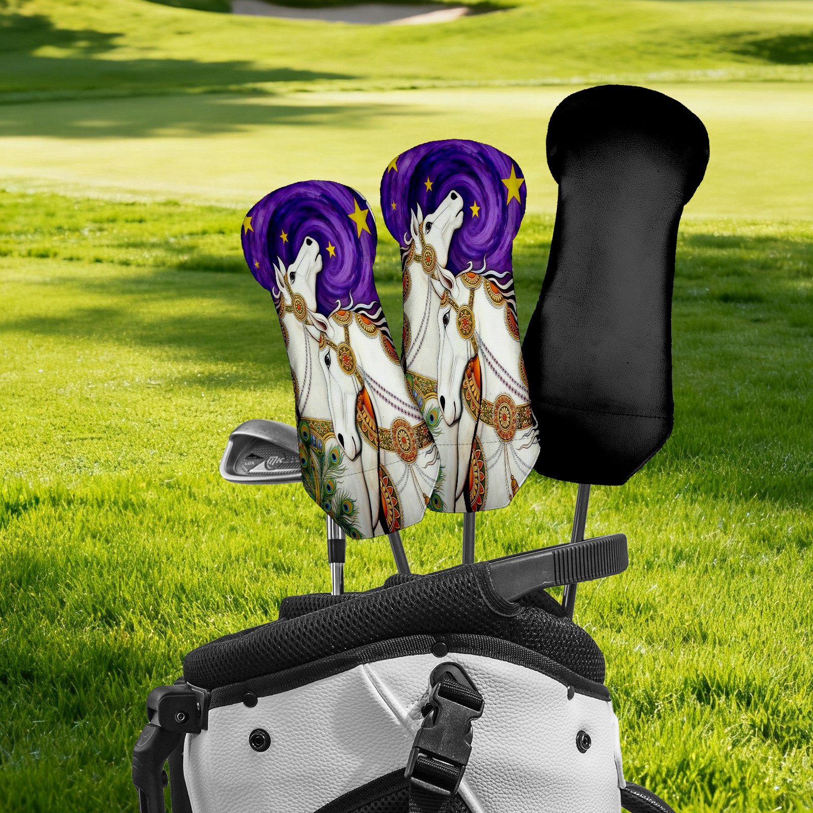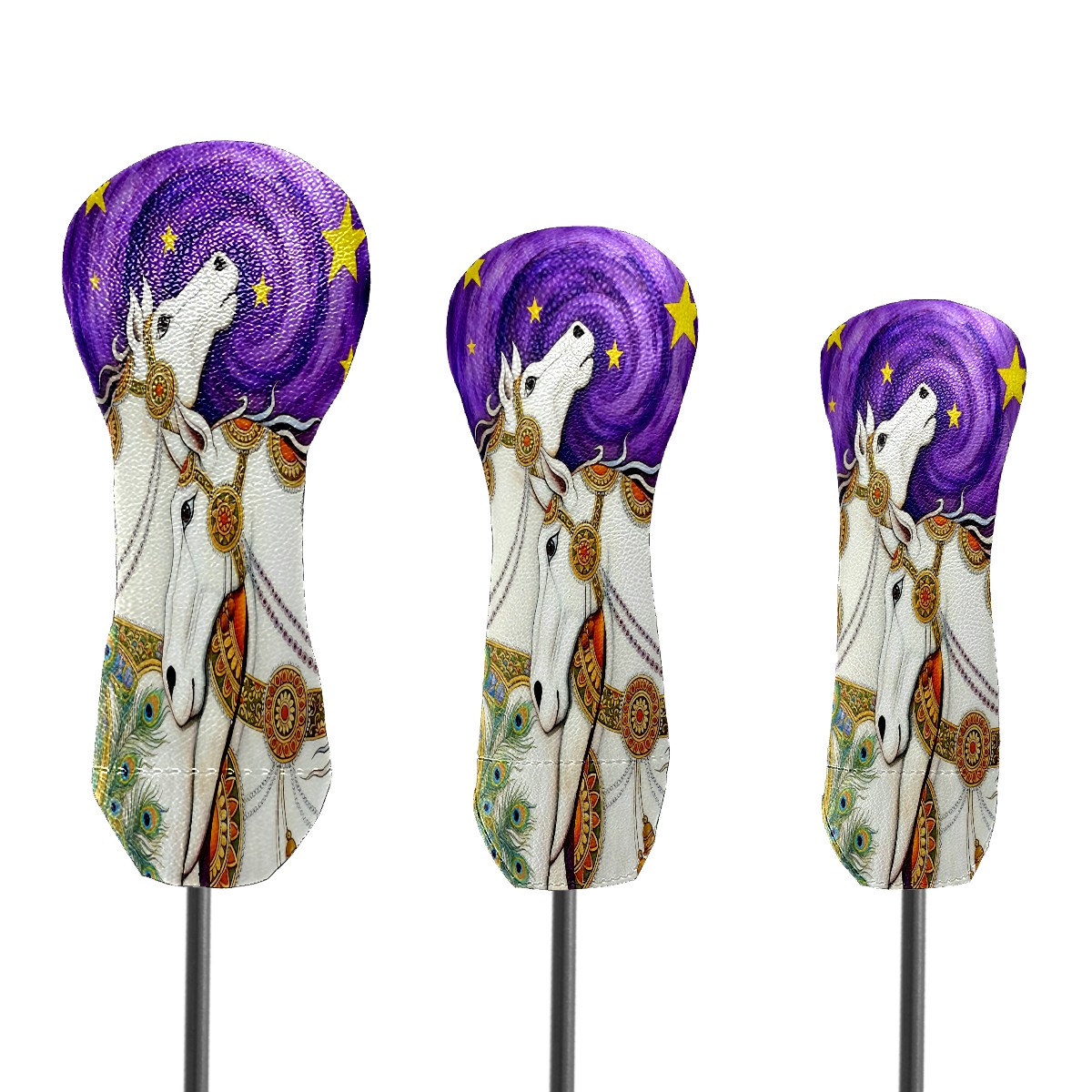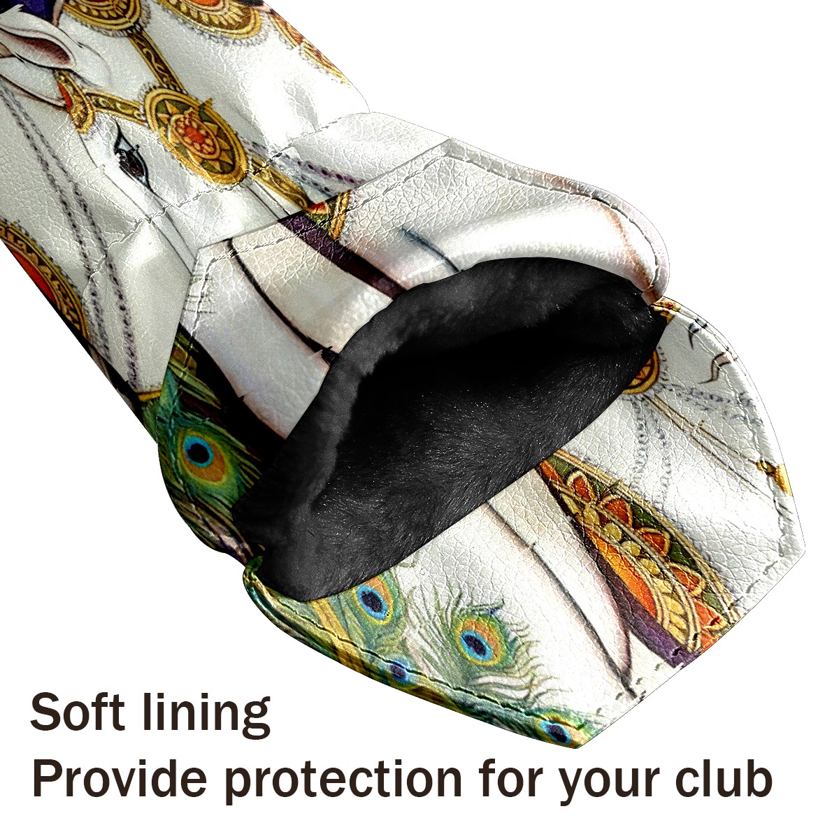 Golf Club Cover Velvet Lining Suitable for the First Wood, Fairway Wood and Hybrid Club Head Cover, Suitable for Men and Wome Peacock Pattern Double White Horse