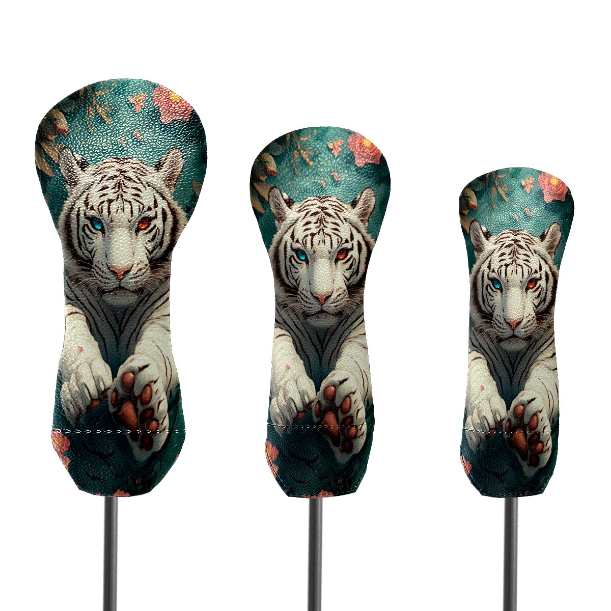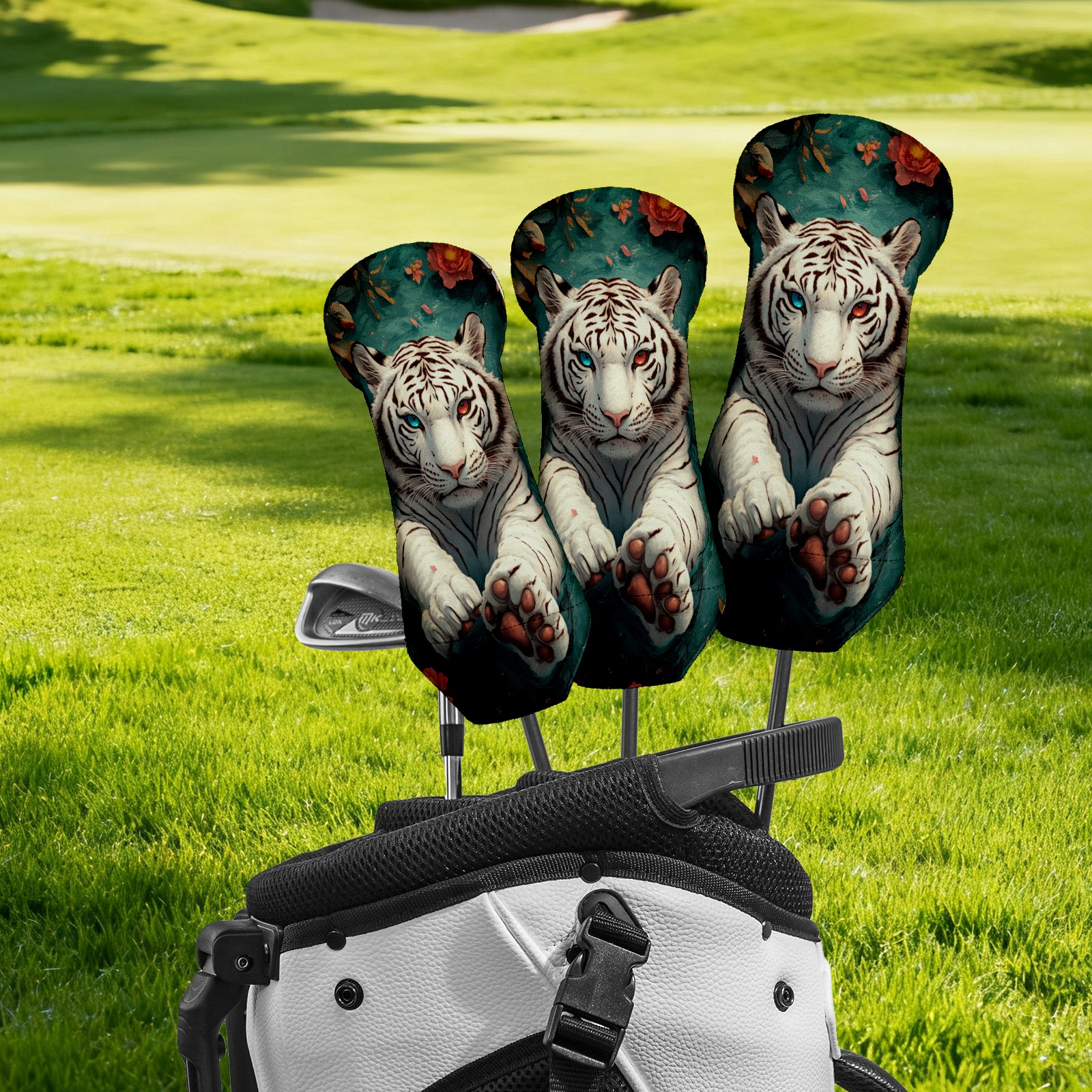 Golf Club Cover Velvet Lining Suitable for the First Wood, Fairway Wood and Hybrid Club Head Cover, Suitable for Men and Wome White Tiger