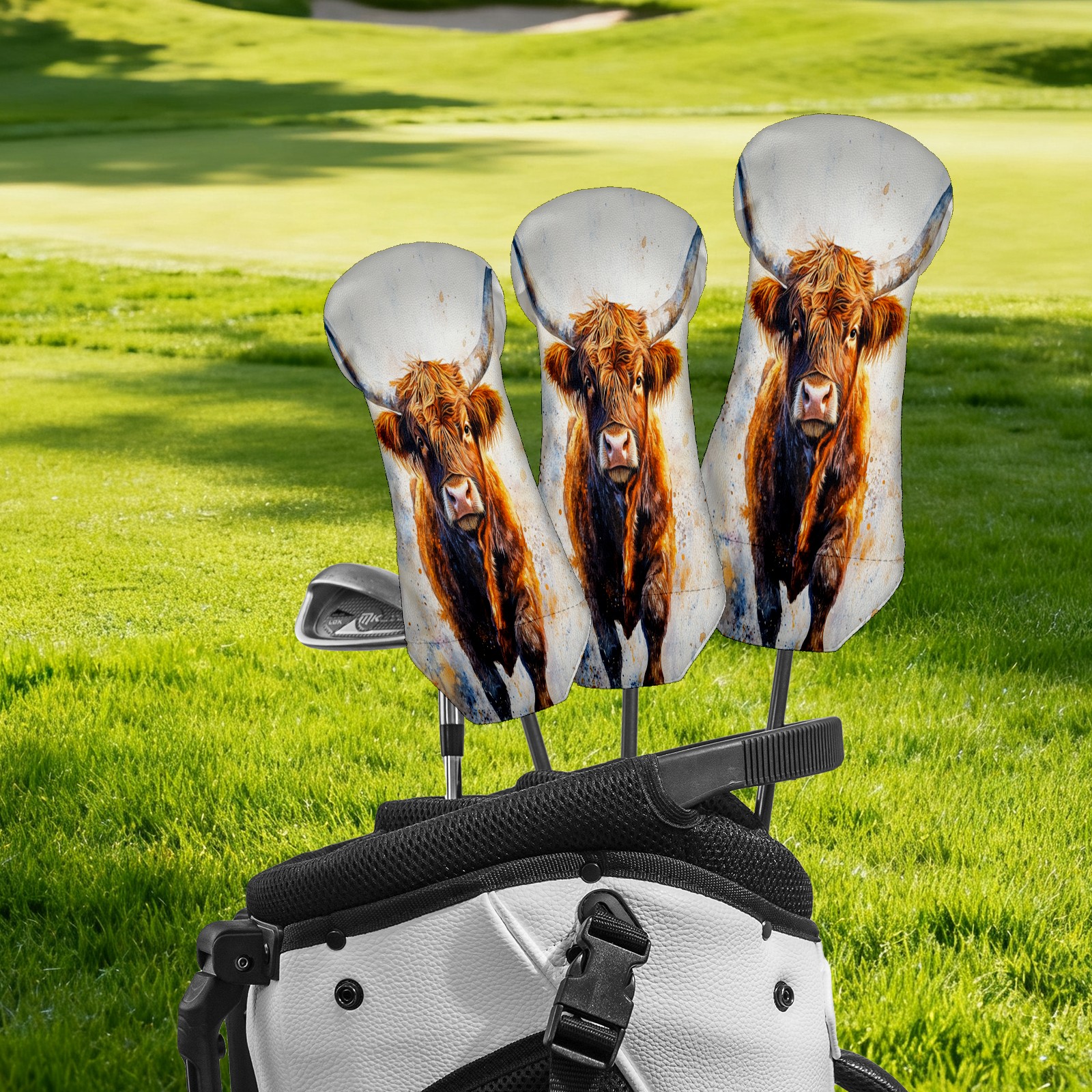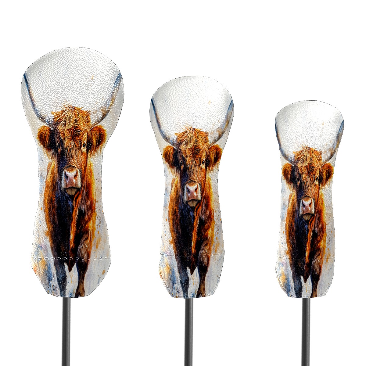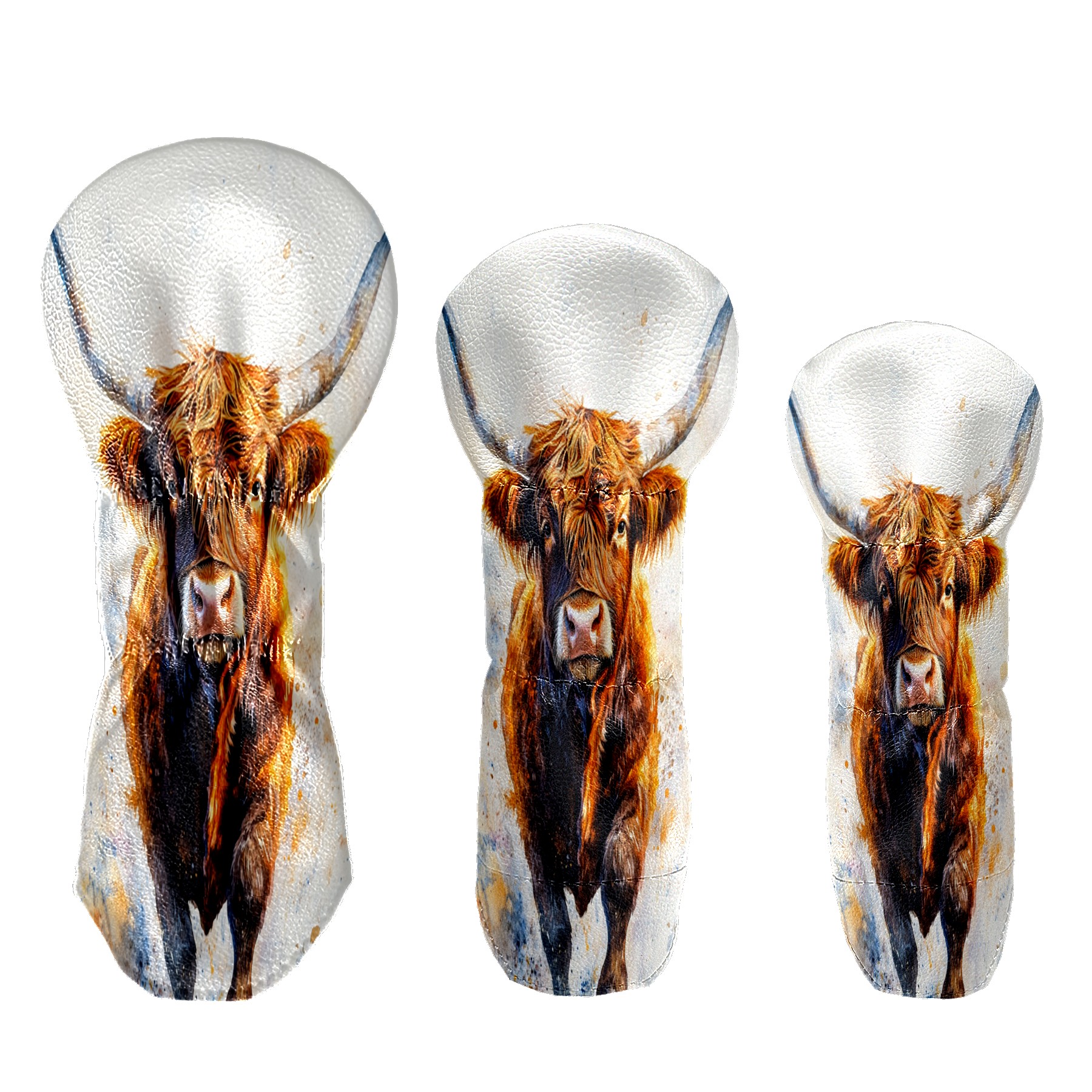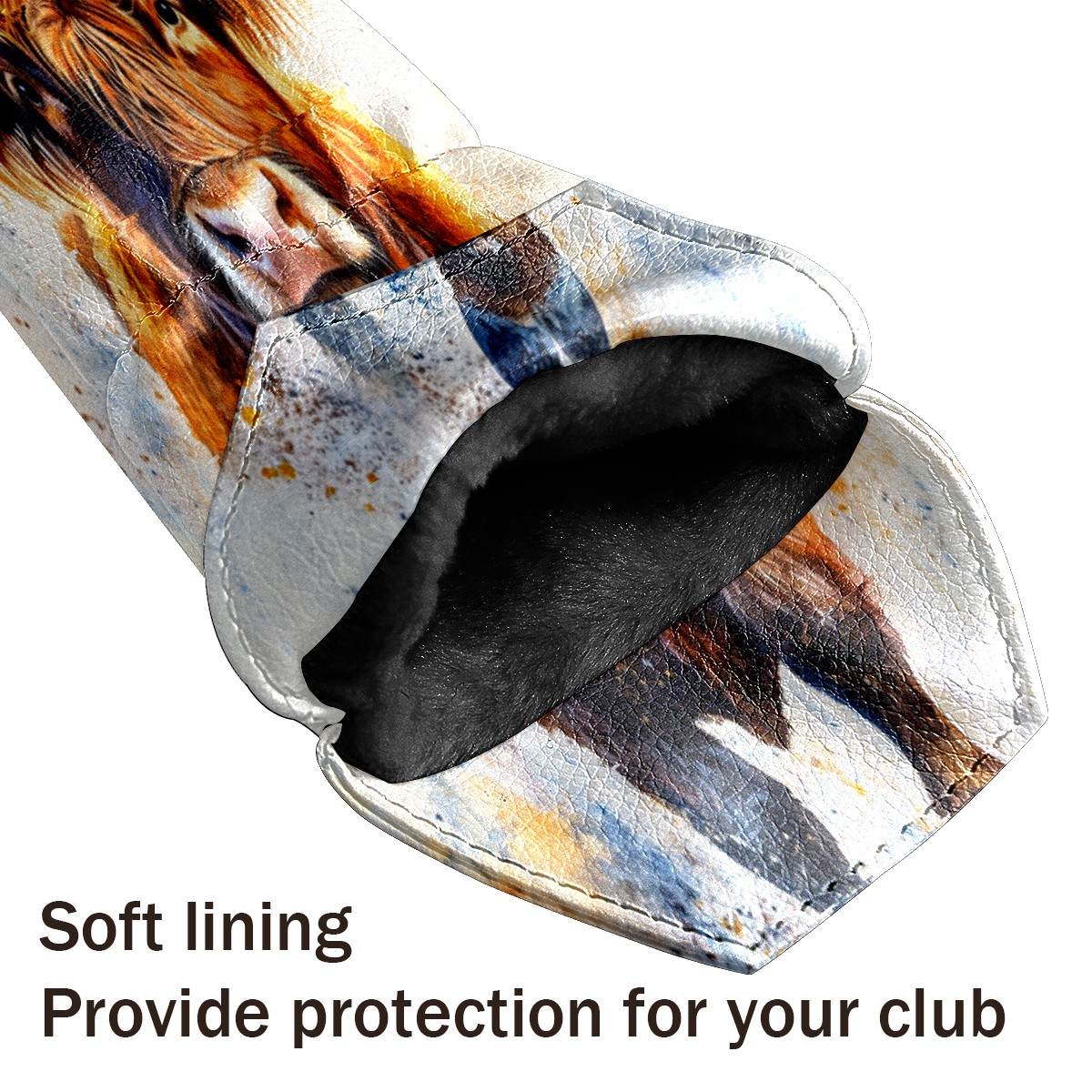 Golf Club Cover Velvet Lining Suitable for the First Wood, Fairway Wood and Hybrid Club Head Cover, Suitable for Men and Wome Highland Cattle