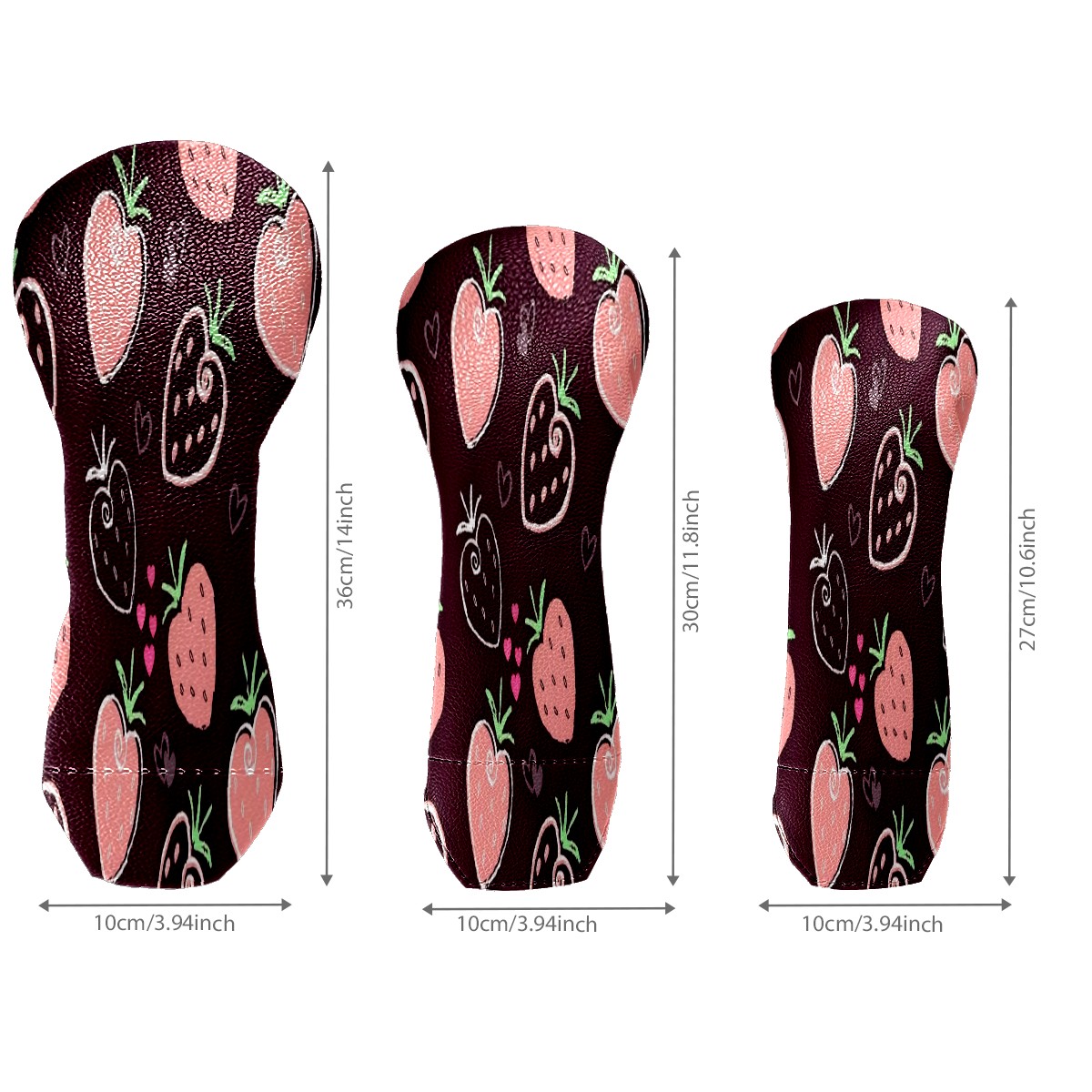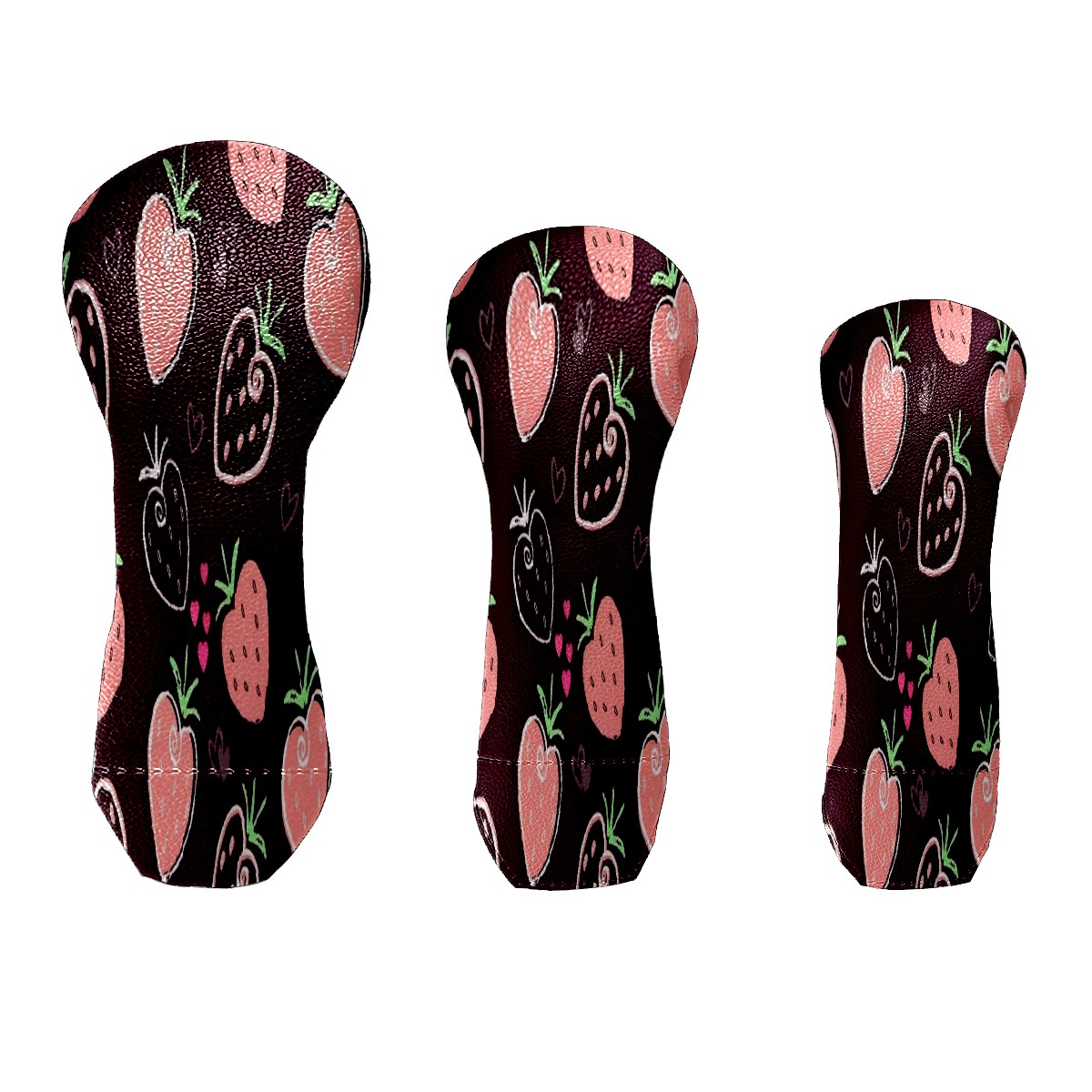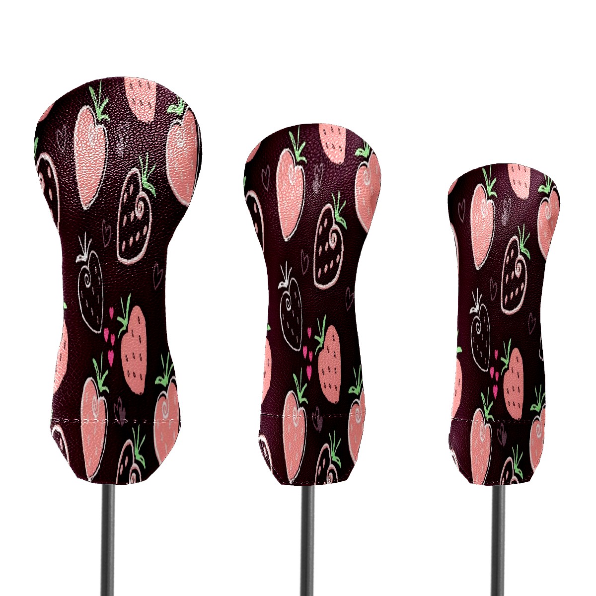 Golf Club Cover Velvet Lining Suitable for the First Wood, Fairway Wood and Hybrid Club Head Cover, Suitable for Men and Wome Hand Drawn Strawberry Pattern