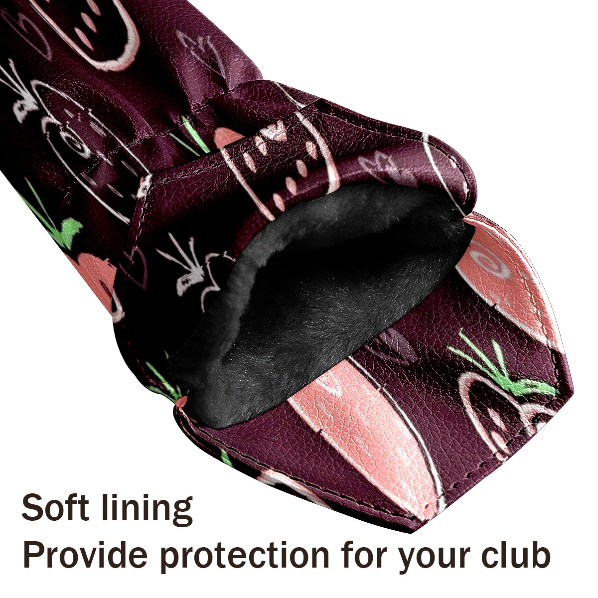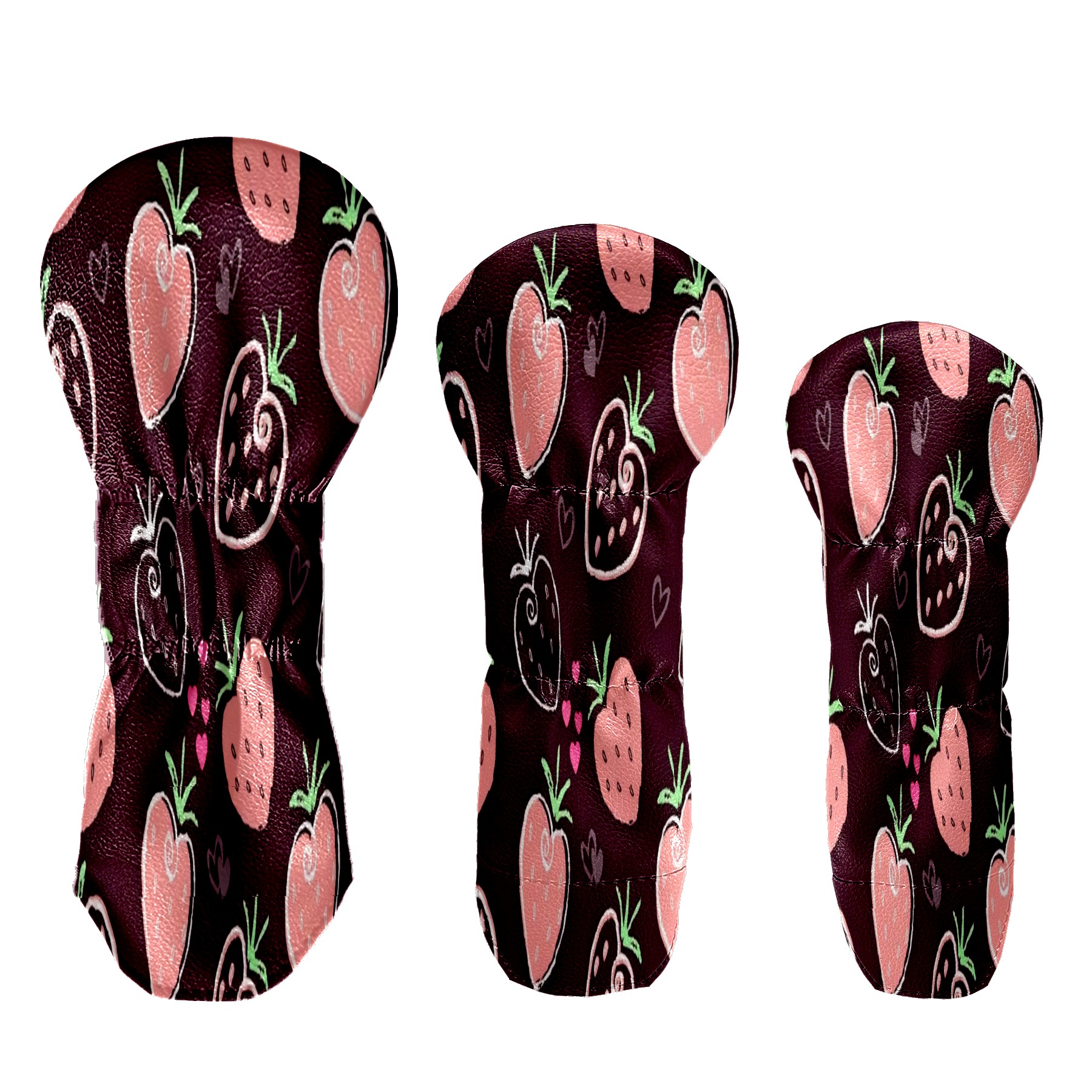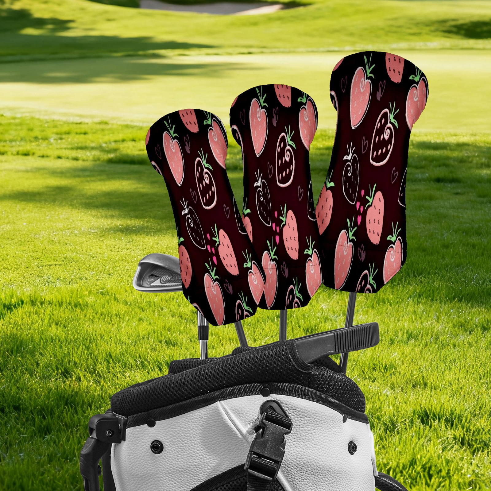 Golf Club Cover Velvet Lining Suitable for the First Wood, Fairway Wood and Hybrid Club Head Cover, Suitable for Men and Wome Hand Drawn Strawberry Pattern