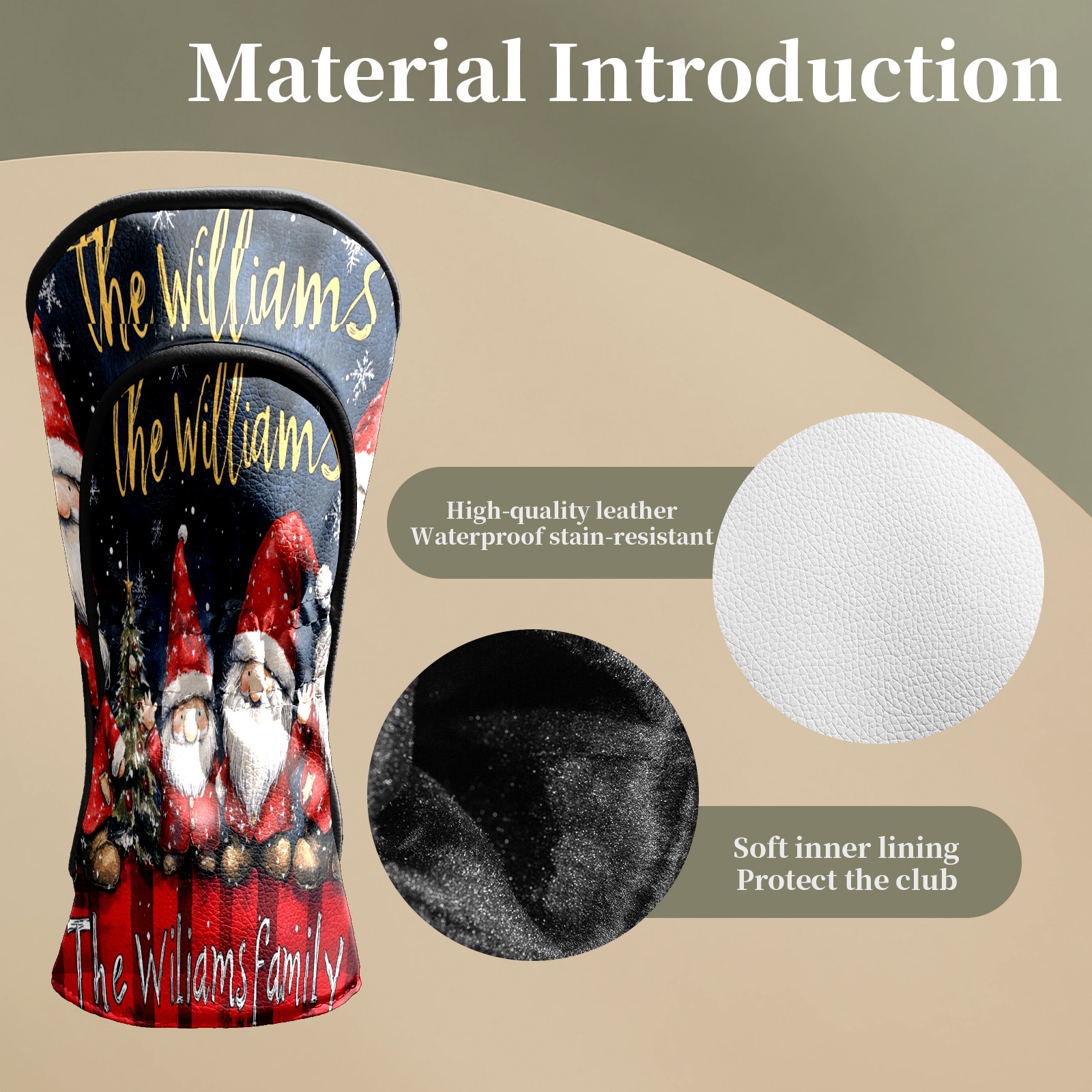 Golf Club Head Covers Cute Christmas Dwarf Waterproof Leather Golf Head Covers for Men Women Driver Head Cover Fairway Headcover for Golf Lovers