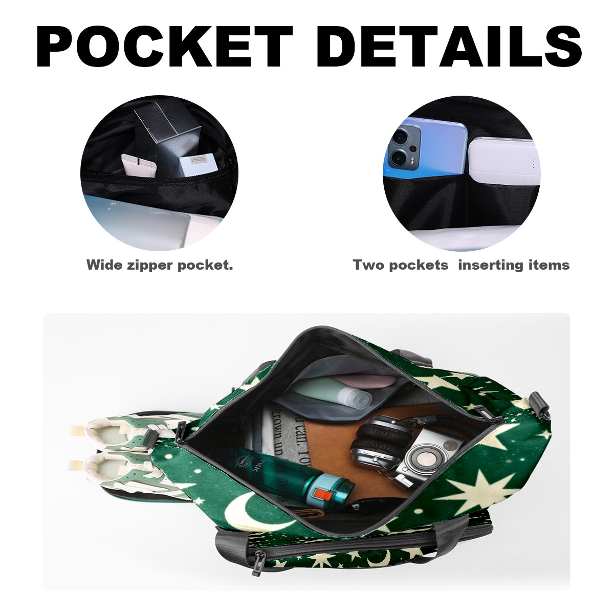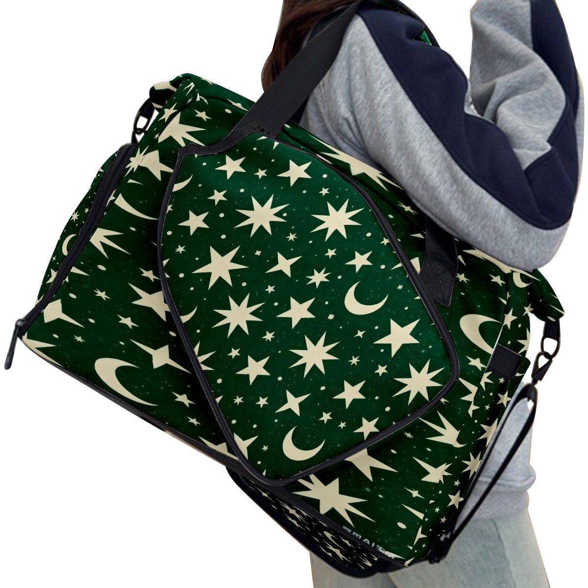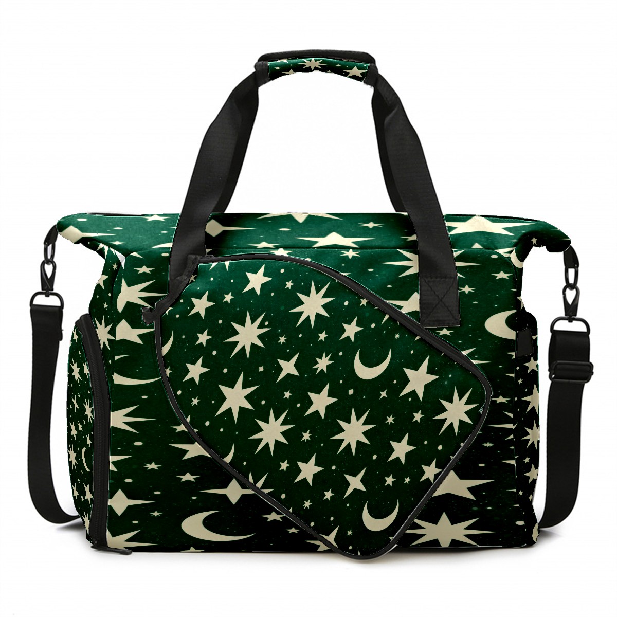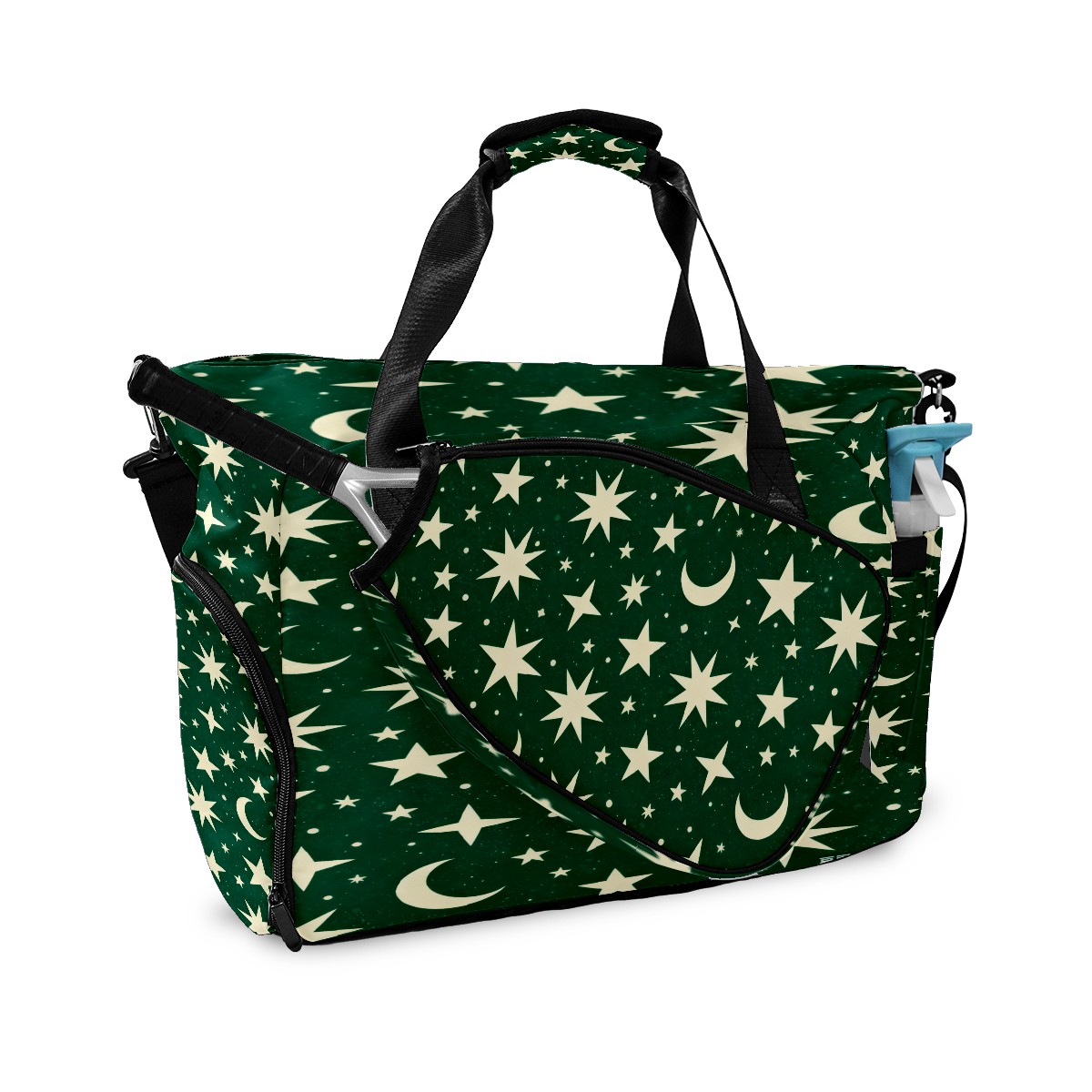 Lightweight Pickleball Tote Bag with Large Capacity, Shoe Compartment, Large Paddle Storage, Water Bottle Holder & Fence Hook for Women & Men Beige Stars And Crescent Moon