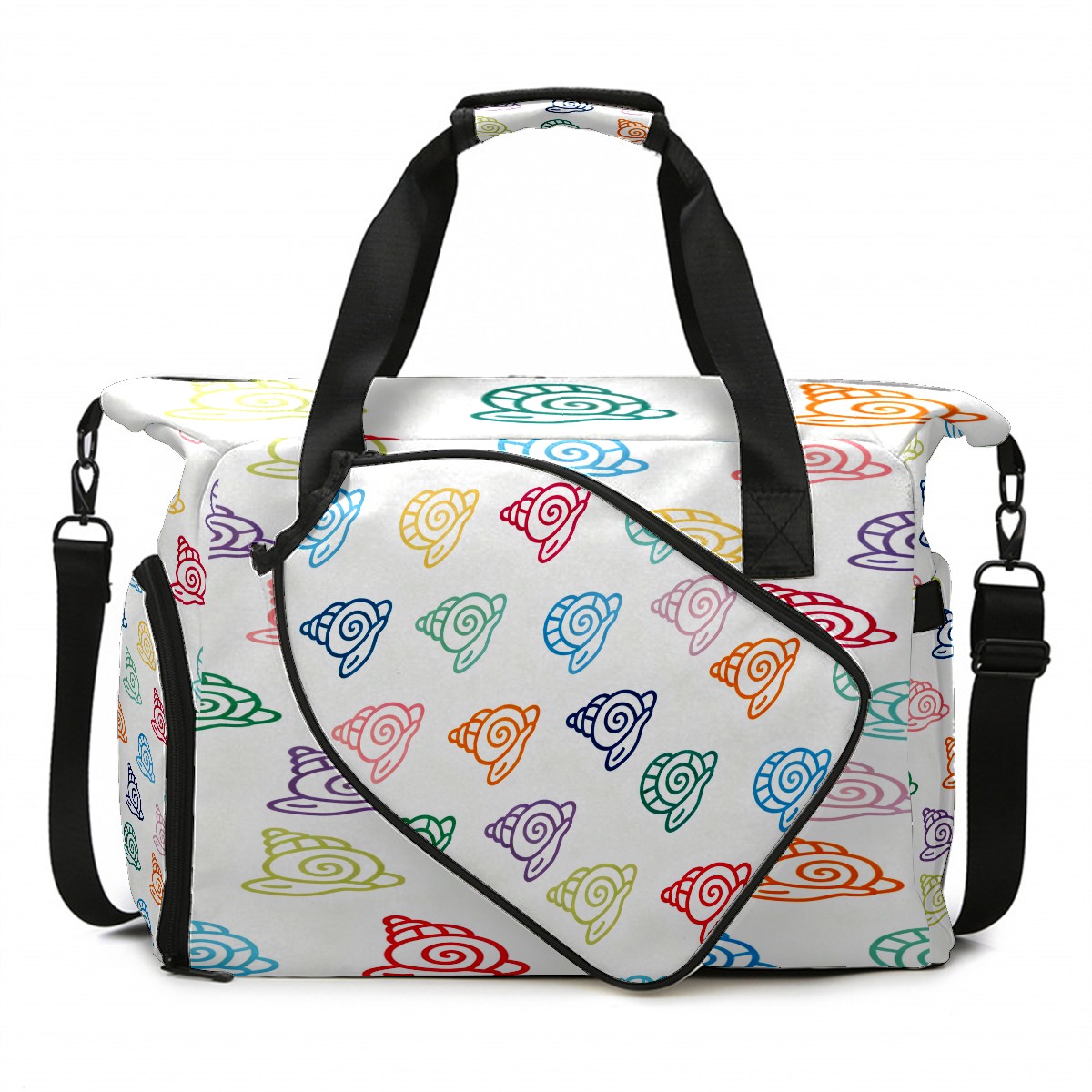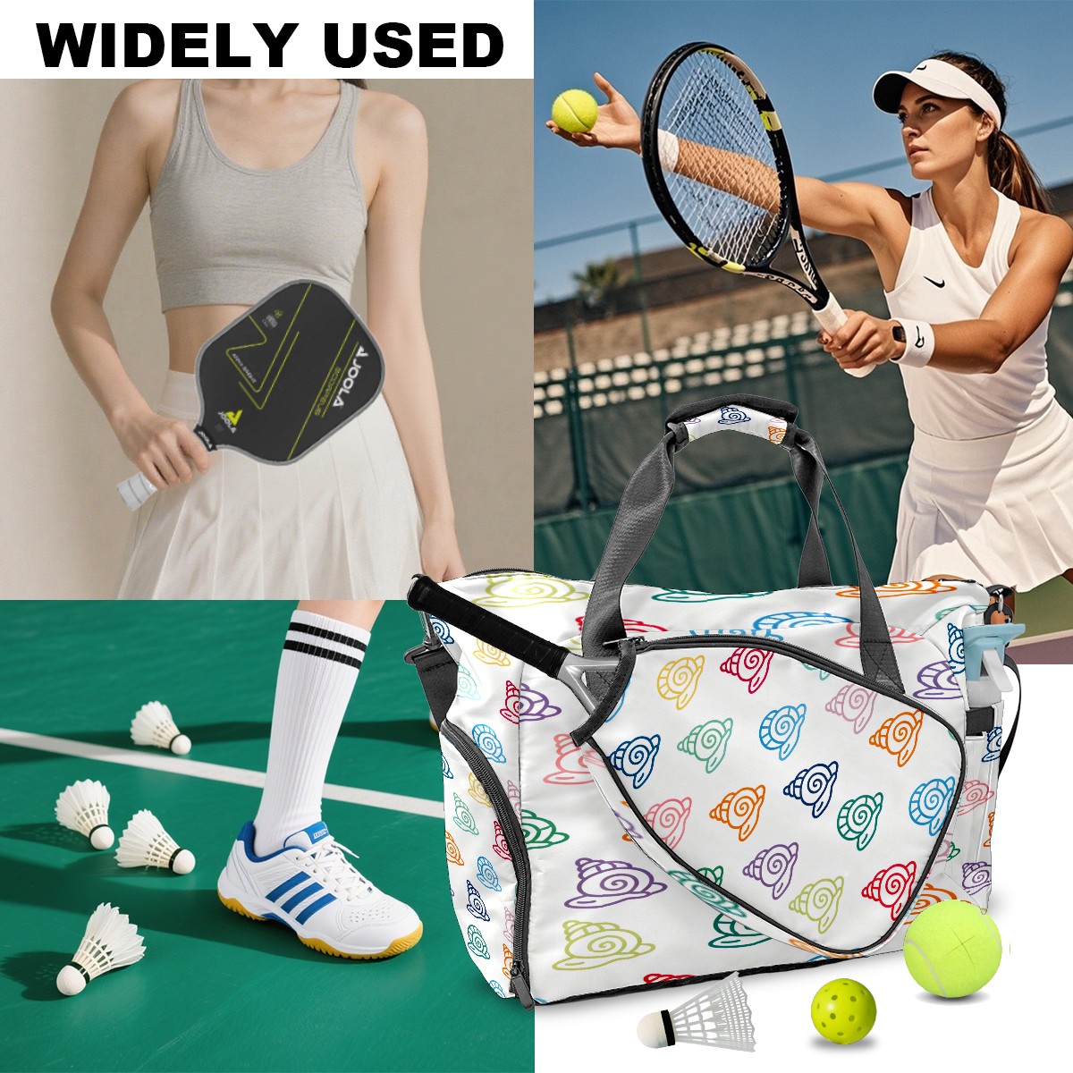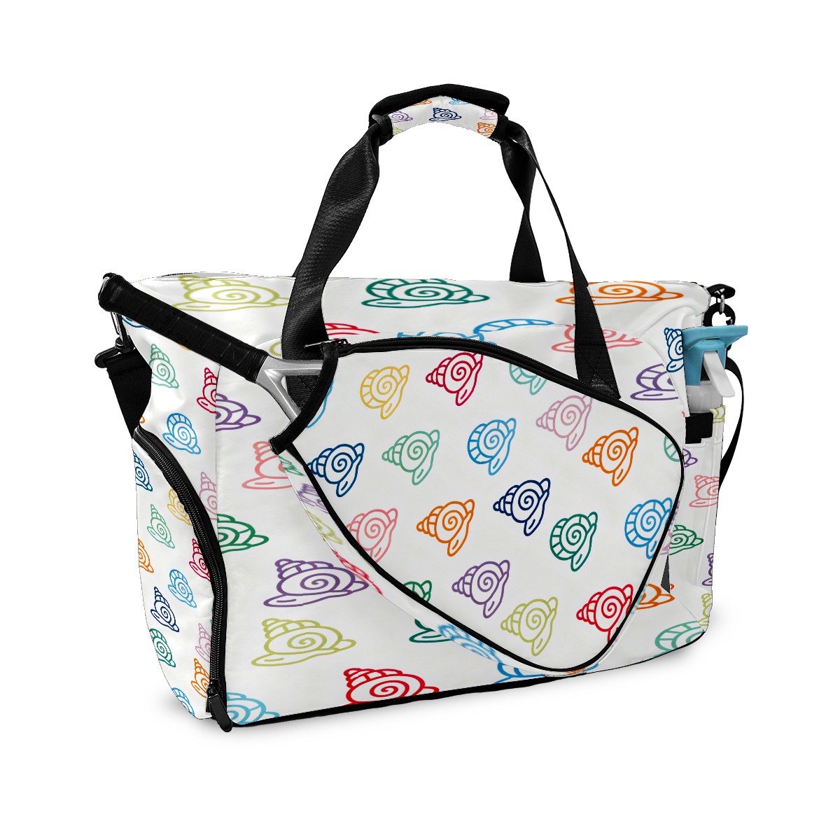 Lightweight Pickleball Tote Bag with Large Capacity, Shoe Compartment, Large Paddle Storage, Water Bottle Holder & Fence Hook for Women & Men Colorful Line Seashell