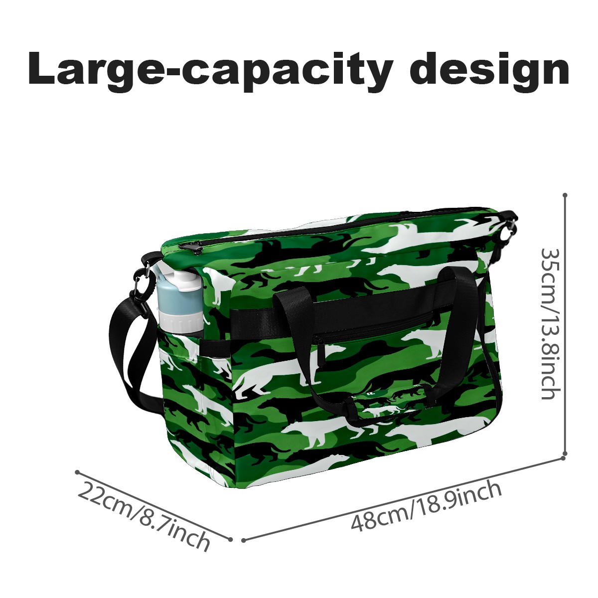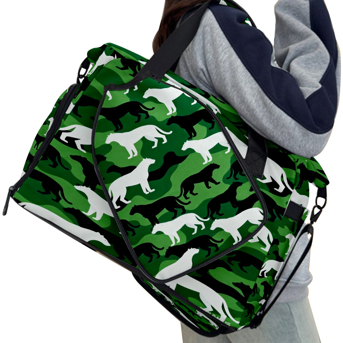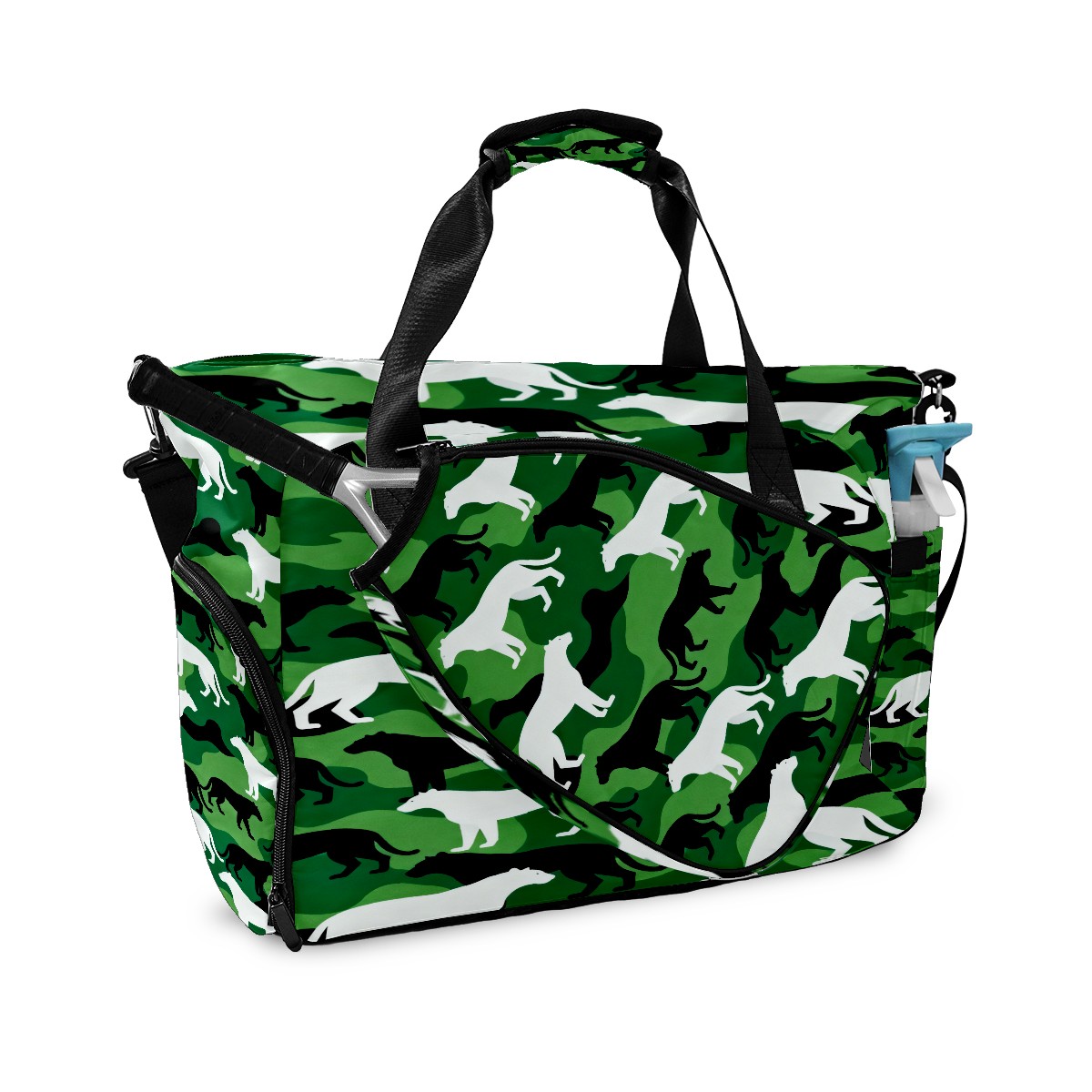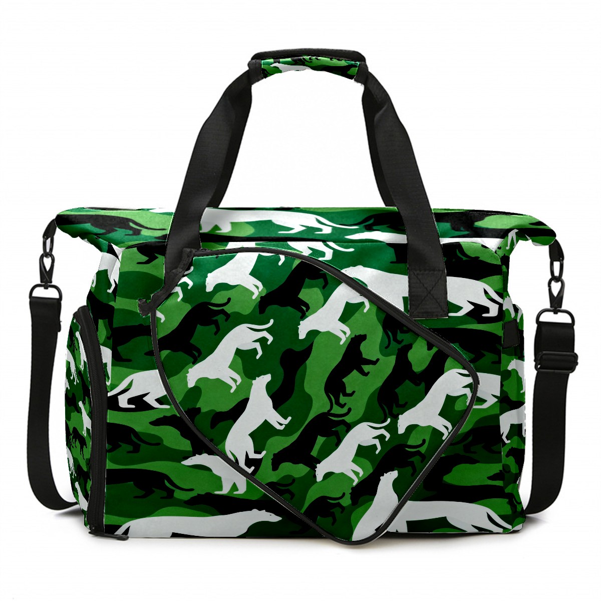 Lightweight Pickleball Tote Bag with Large Capacity, Shoe Compartment, Large Paddle Storage, Water Bottle Holder & Fence Hook for Women & Men Camouflage Silhouette Pattern Green