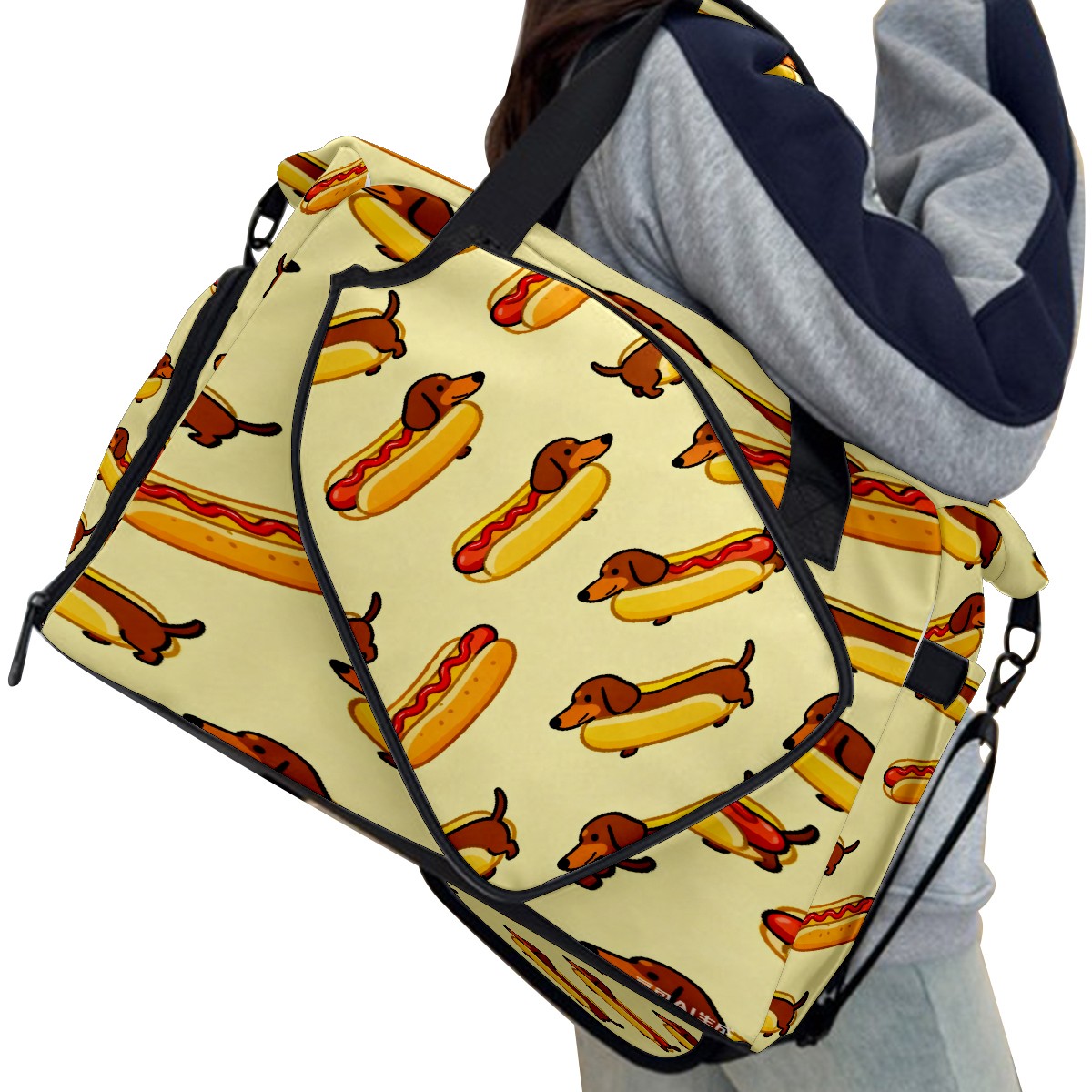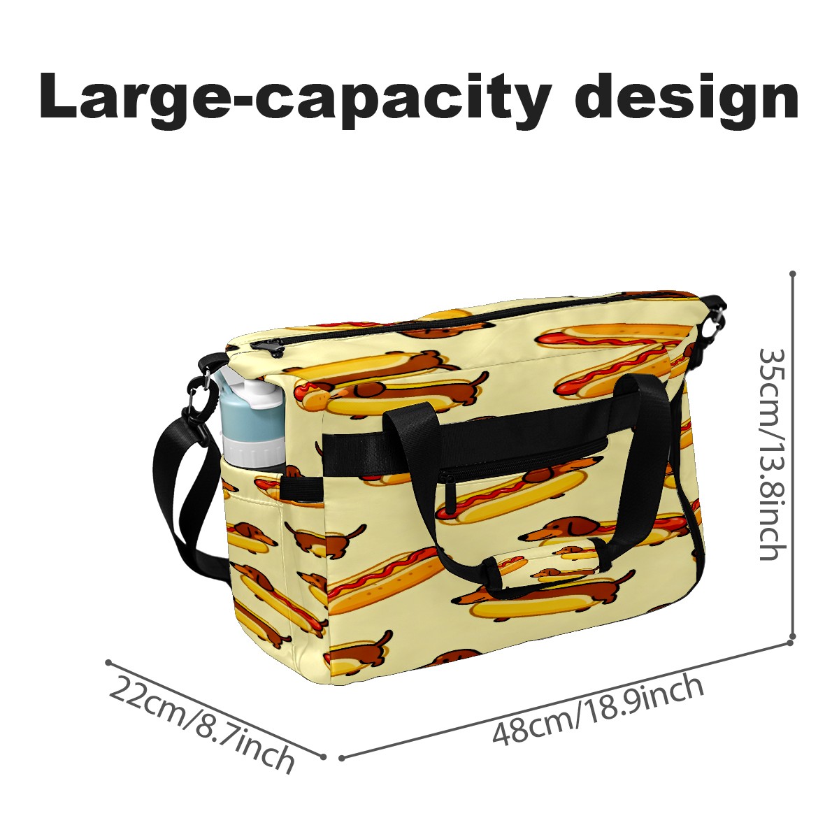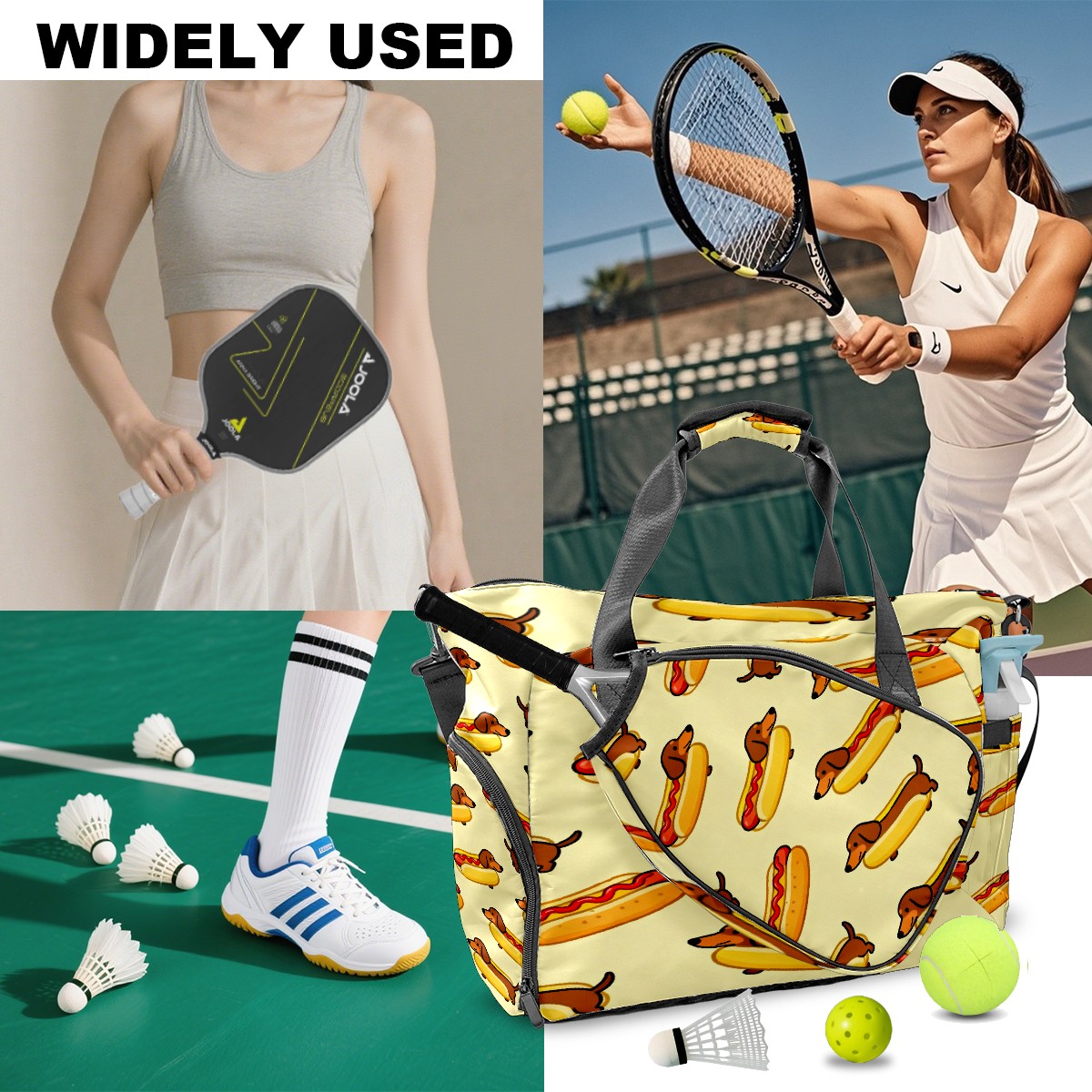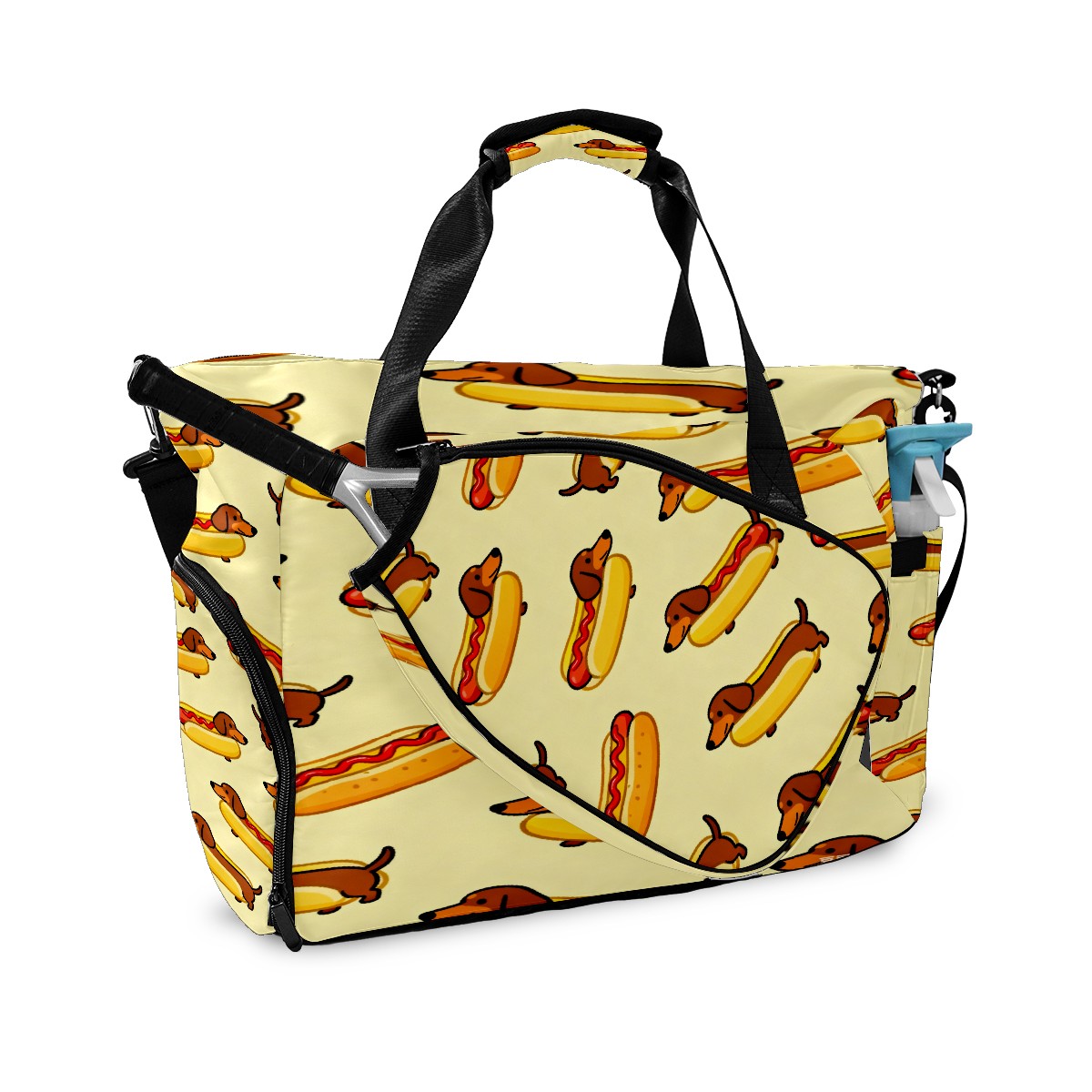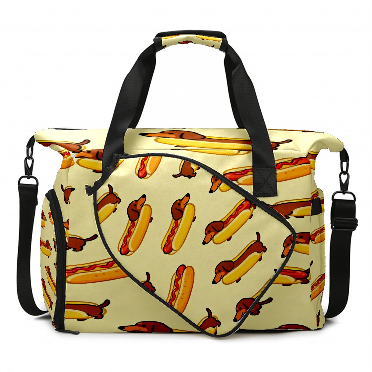 Lightweight Pickleball Tote Bag with Large Capacity, Shoe Compartment, Large Paddle Storage, Water Bottle Holder & Fence Hook for Women & Men Brown Sausage Dog