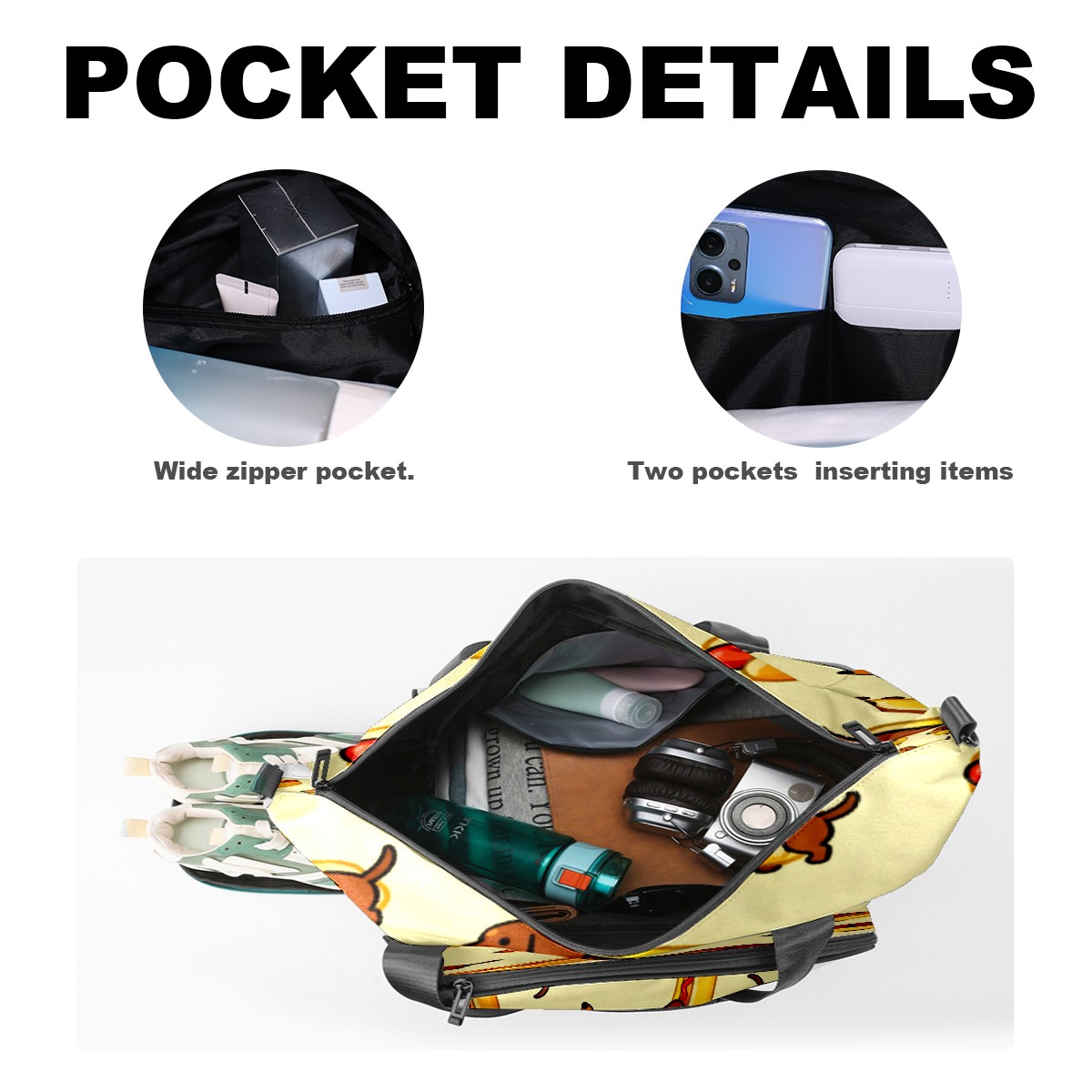 • <p>Multifunctional Gym Travel Bag Made of Twill Fabric 22cm x 48cm x 35cm (8.7in x 18.9in x 13.8in) Made of lightweight and durable twill fabric, this bag is perfect for an active lifestyle. The spacious main compartment easily holds clothing, towels, and a full set of gym gear. A smart pocket precisely stores your phone, earphones, and gym membership card. A ventilated shoe compartment can hold size 10 athletic shoes, and a waterproof wet bag isolates swimwear or sweaty clothing, effectively preventing odors and clutter. It's a professional gym bag suitable for spinning and strength training, a stylish everyday handbag, and can also meet diverse needs such as pickleball, weekend trips, and overnight stays. Combining functionality and style, it seamlessly integrates into various scenarios.<br></p>