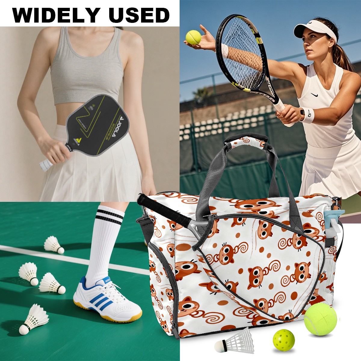 Lightweight Pickleball Tote Bag with Large Capacity, Shoe Compartment, Large Paddle Storage, Water Bottle Holder & Fence Hook for Women & Men Brown Bear