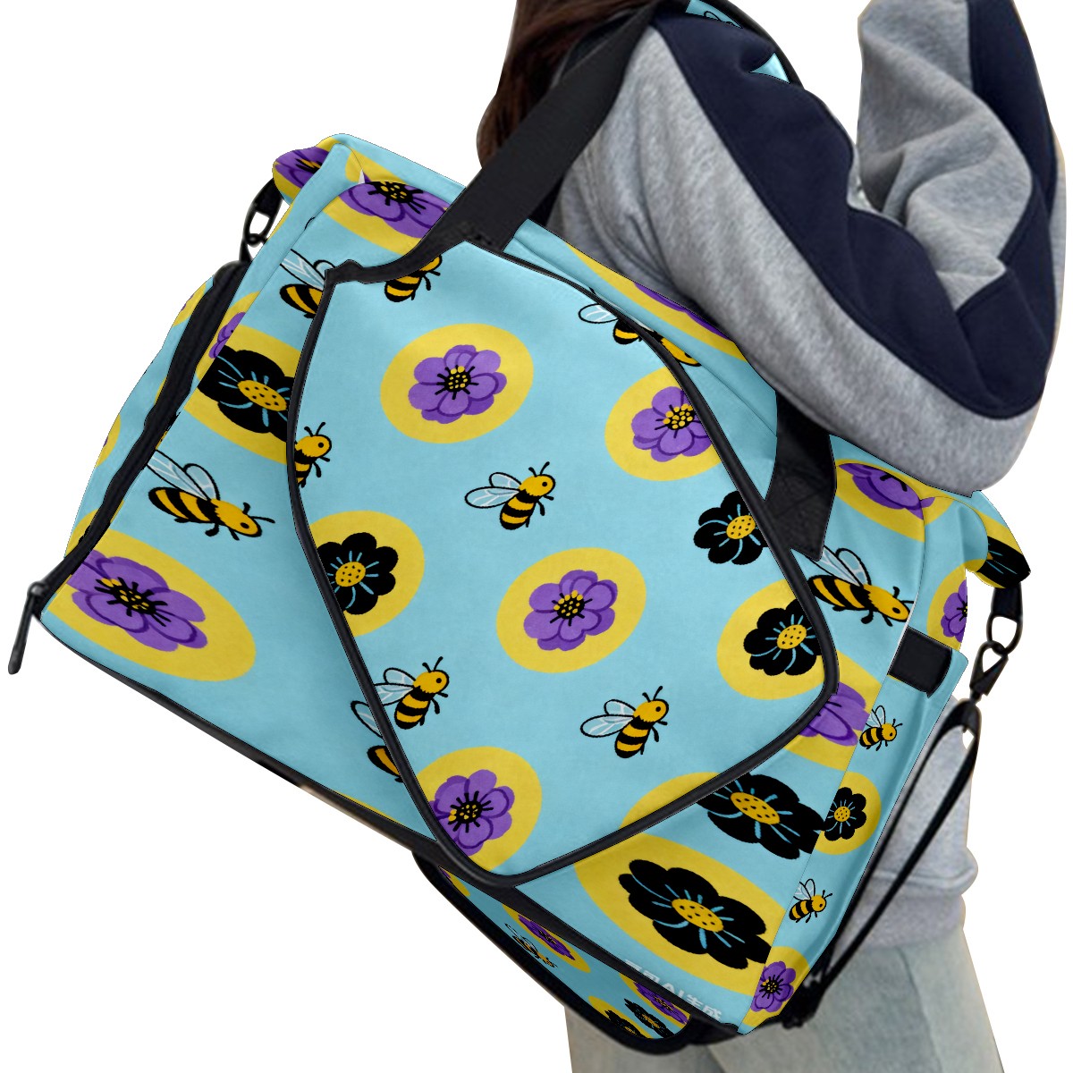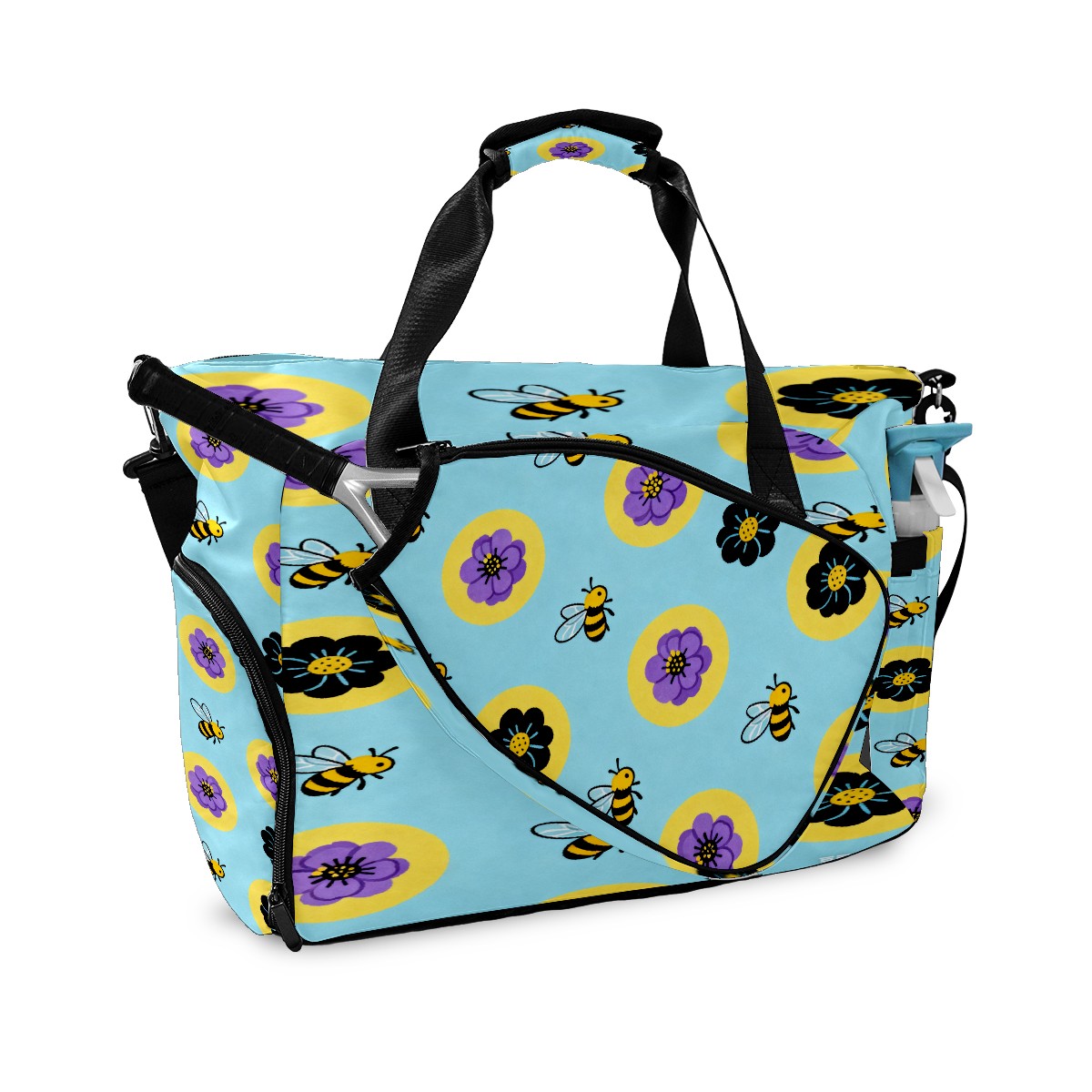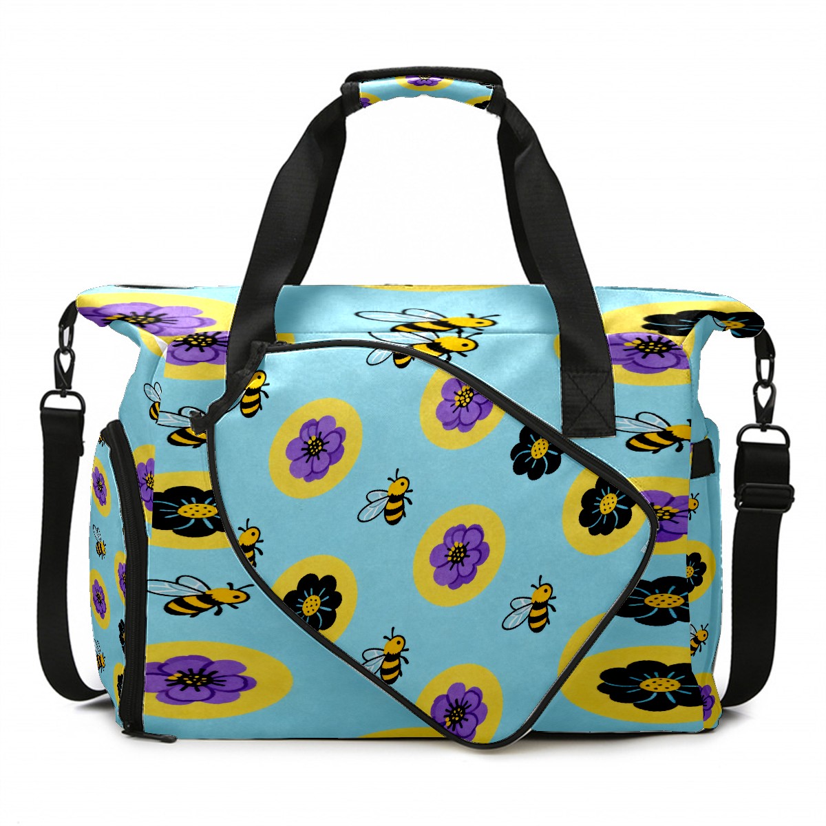 Lightweight Pickleball Tote Bag with Large Capacity, Shoe Compartment, Large Paddle Storage, Water Bottle Holder & Fence Hook for Women & Men Bee And Flower Pattern