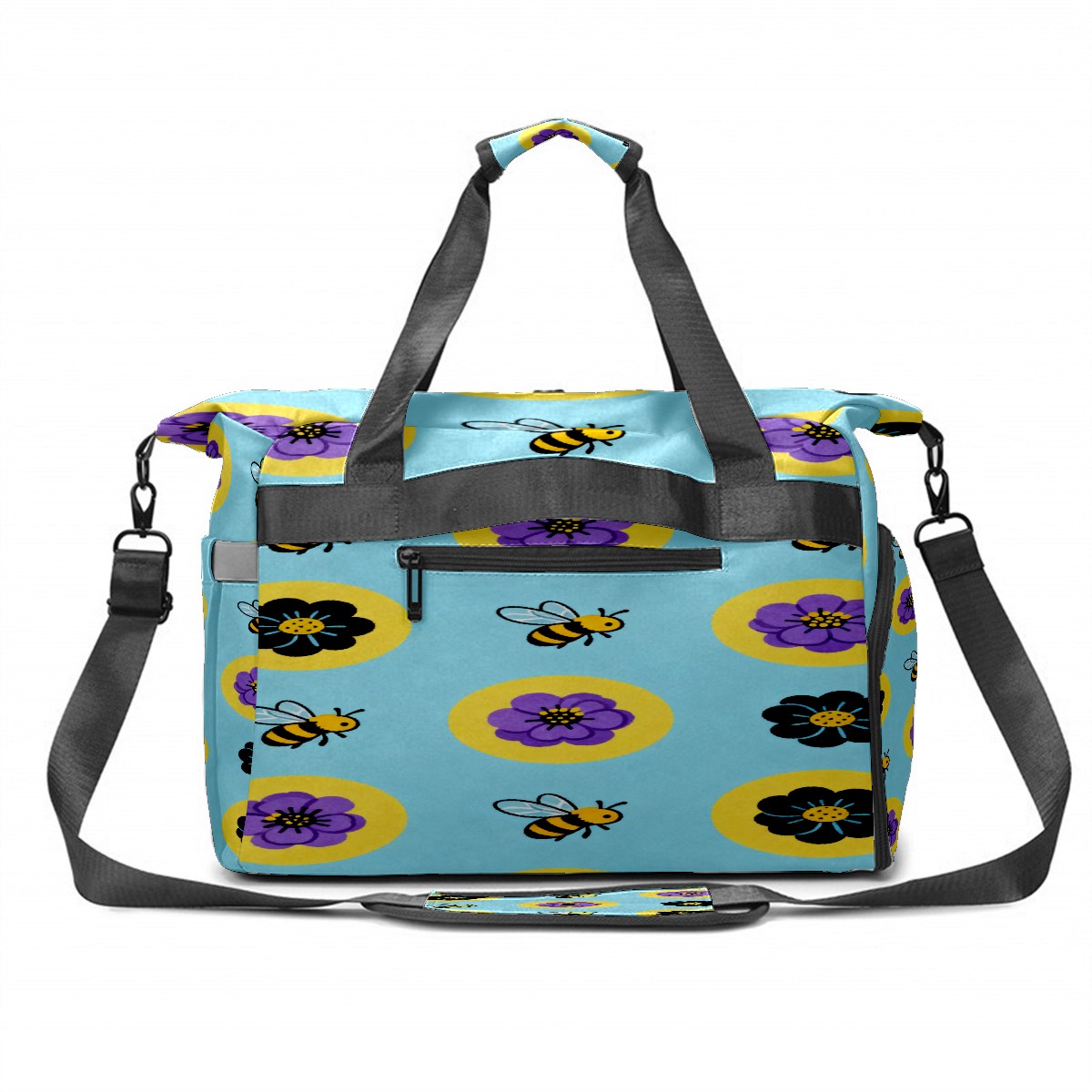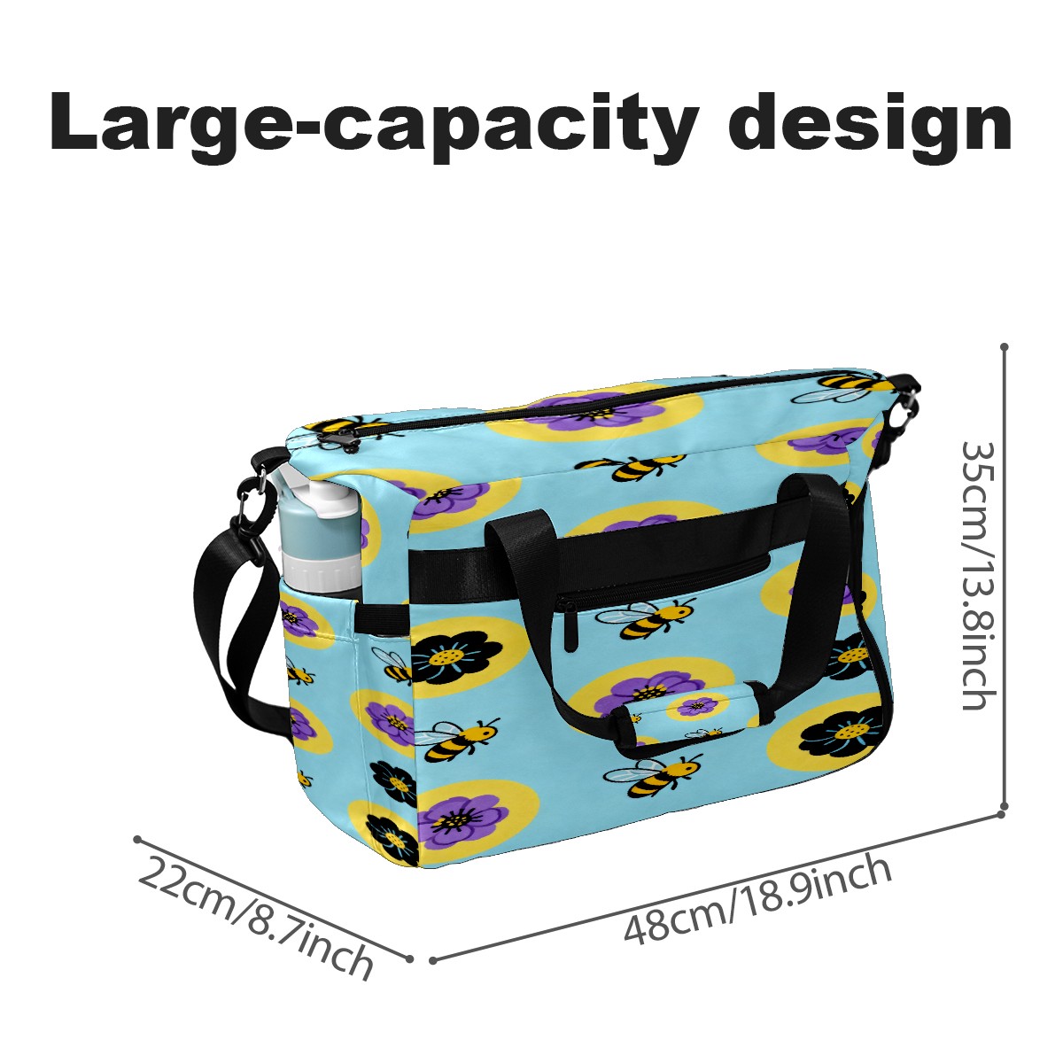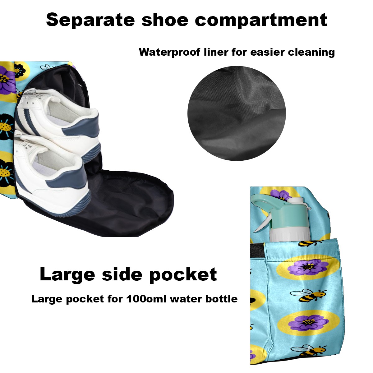 Lightweight Pickleball Tote Bag with Large Capacity, Shoe Compartment, Large Paddle Storage, Water Bottle Holder & Fence Hook for Women & Men Bee And Flower Pattern
