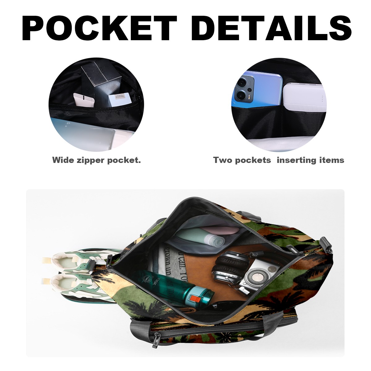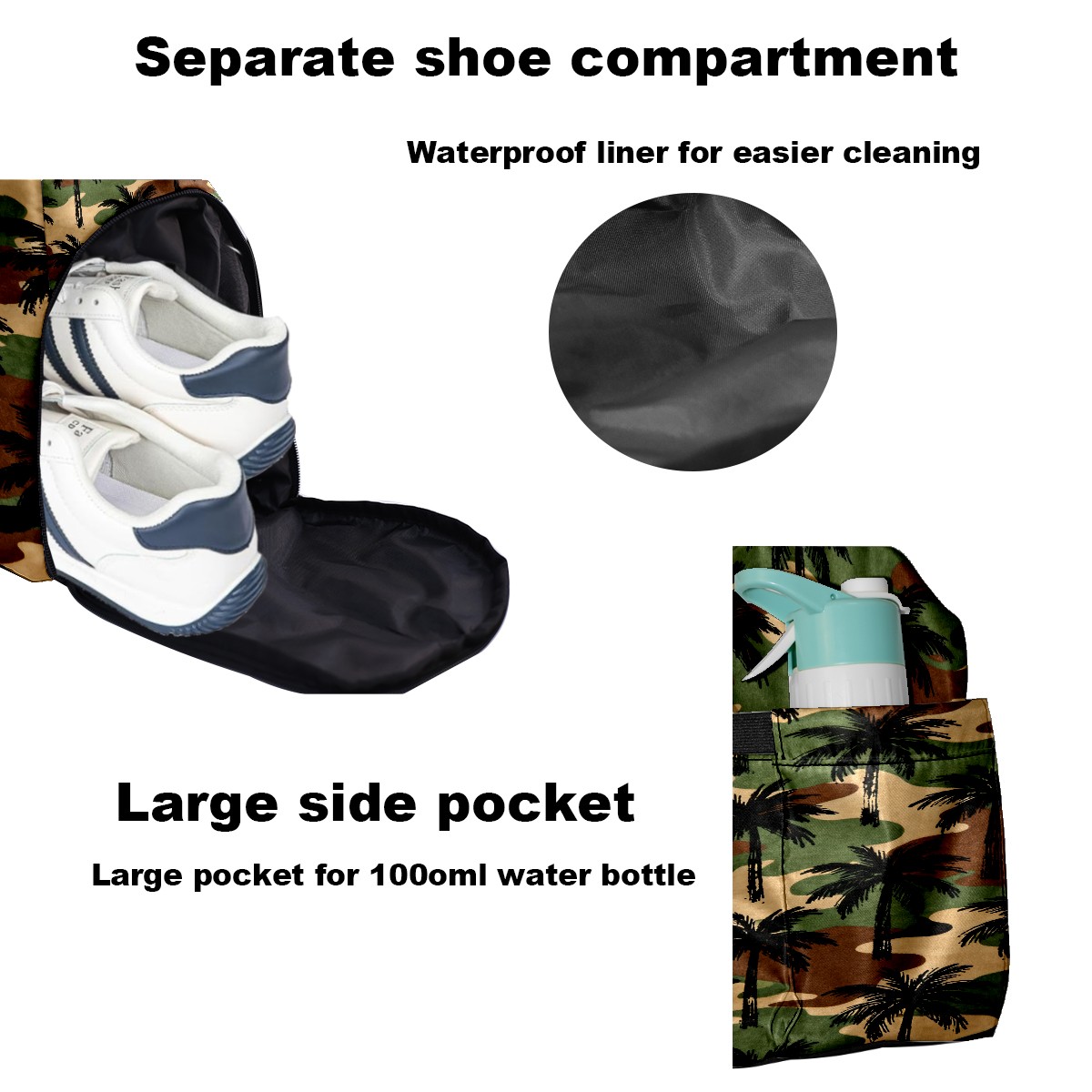 • <p>Multifunctional Gym Travel Bag Made of Twill Fabric 22cm x 48cm x 35cm (8.7in x 18.9in x 13.8in) Made of lightweight and durable twill fabric, this bag is perfect for an active lifestyle. The spacious main compartment easily holds clothing, towels, and a full set of gym gear. A smart pocket precisely stores your phone, earphones, and gym membership card. A ventilated shoe compartment can hold size 10 athletic shoes, and a waterproof wet bag isolates swimwear or sweaty clothing, effectively preventing odors and clutter. It's a professional gym bag suitable for spinning and strength training, a stylish everyday handbag, and can also meet diverse needs such as pickleball, weekend trips, and overnight stays. Combining functionality and style, it seamlessly integrates into various scenarios.<br></p>