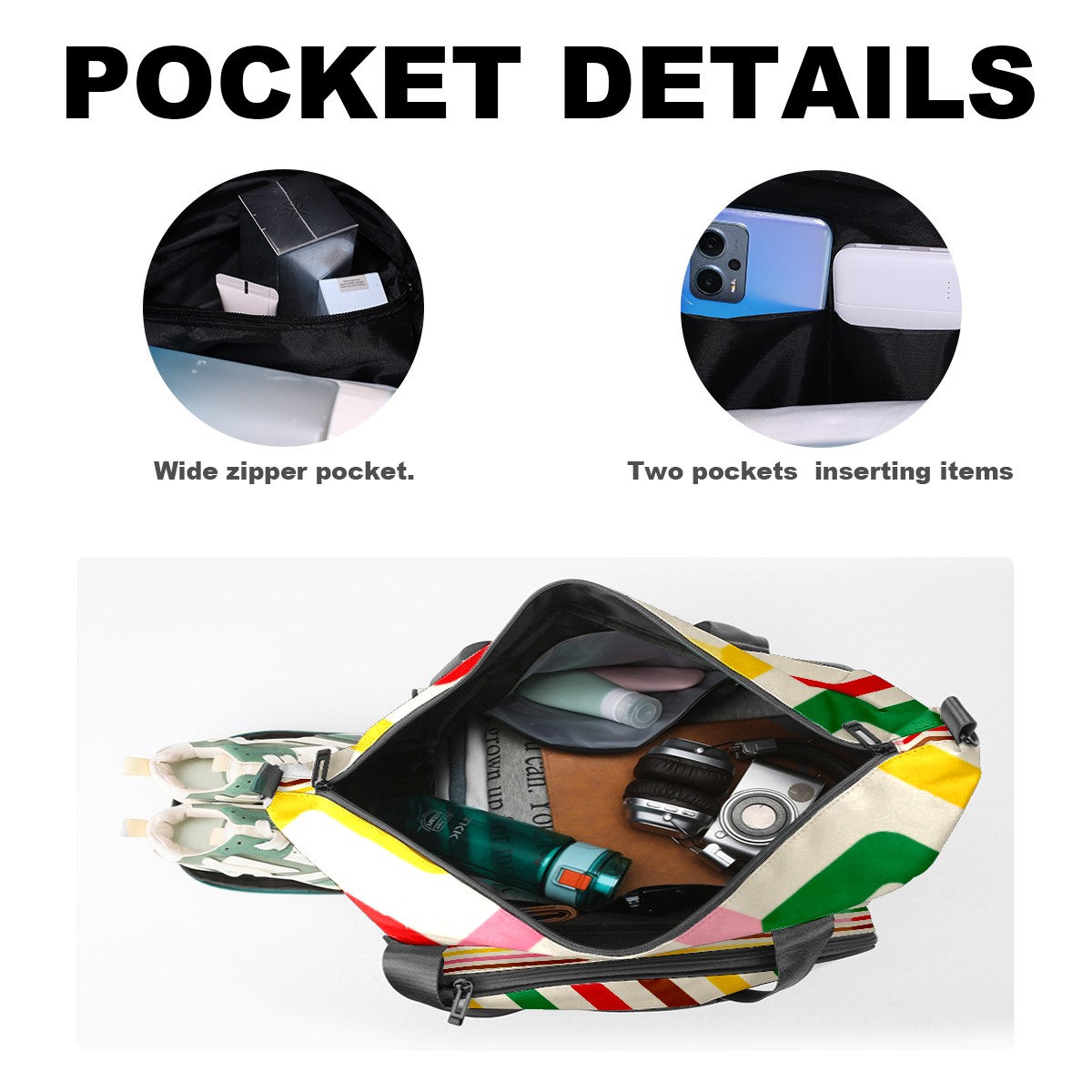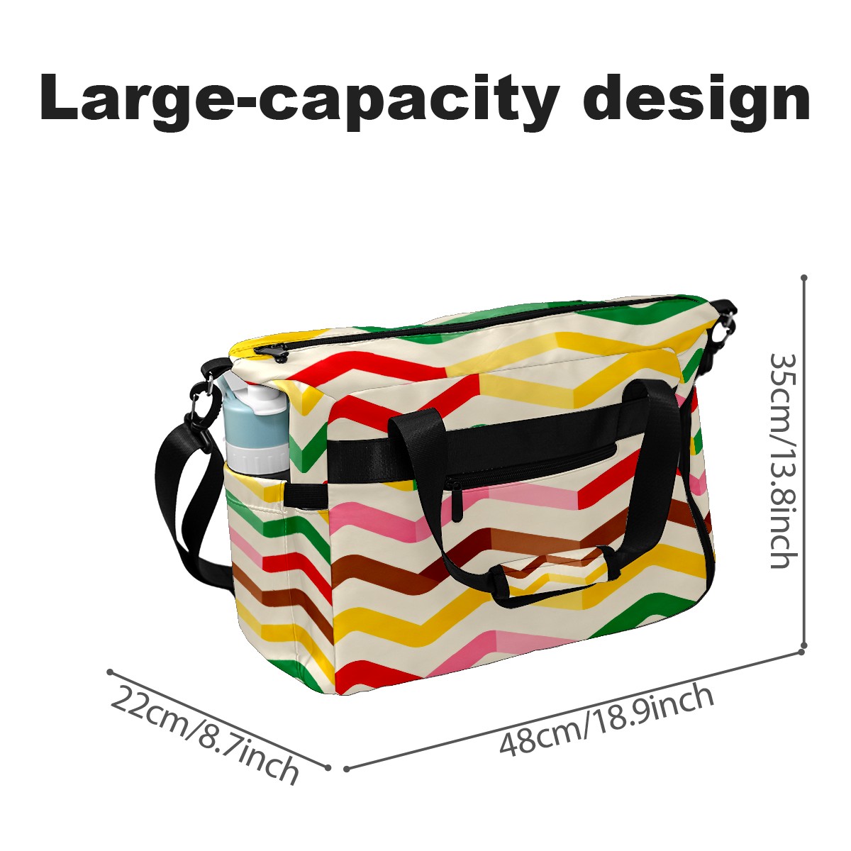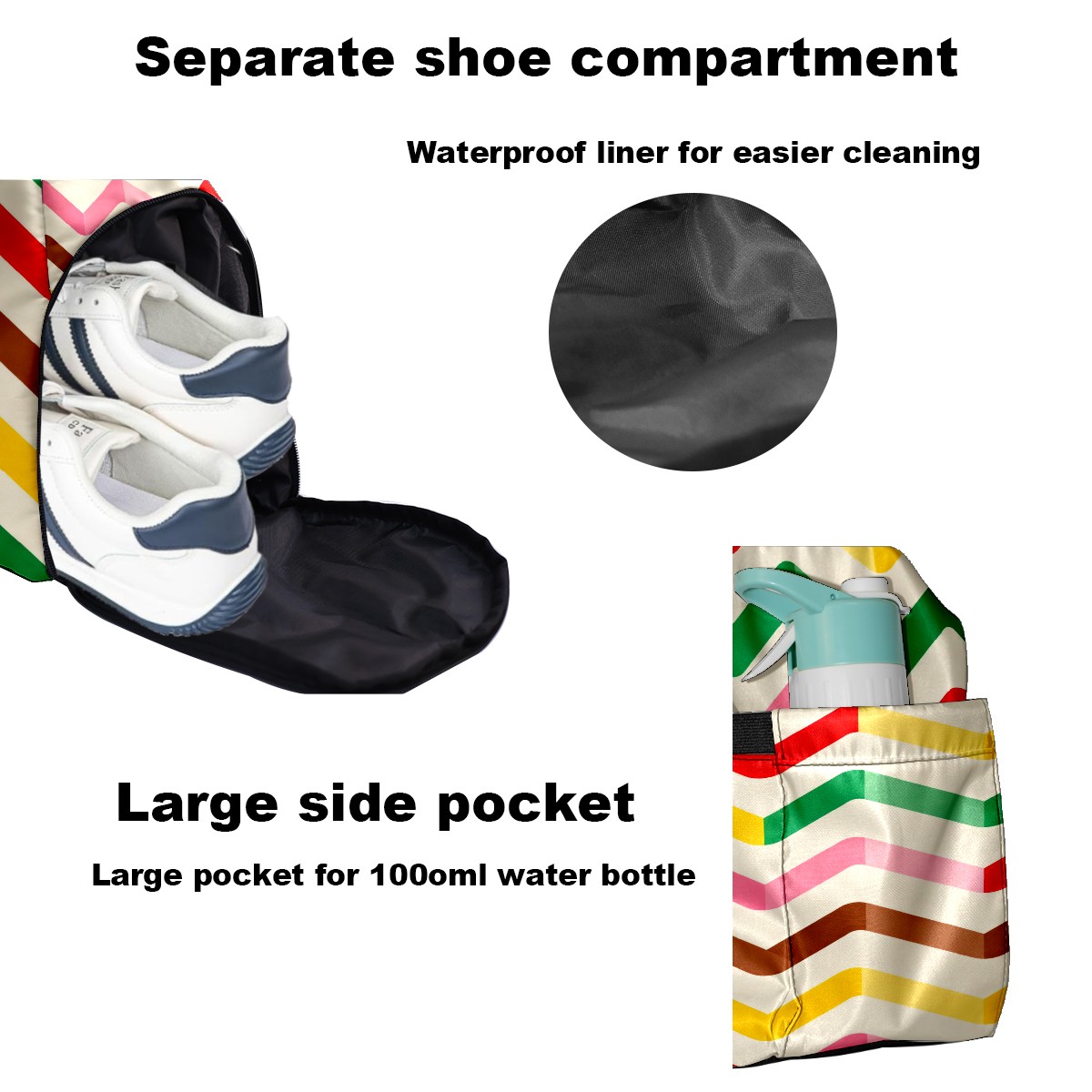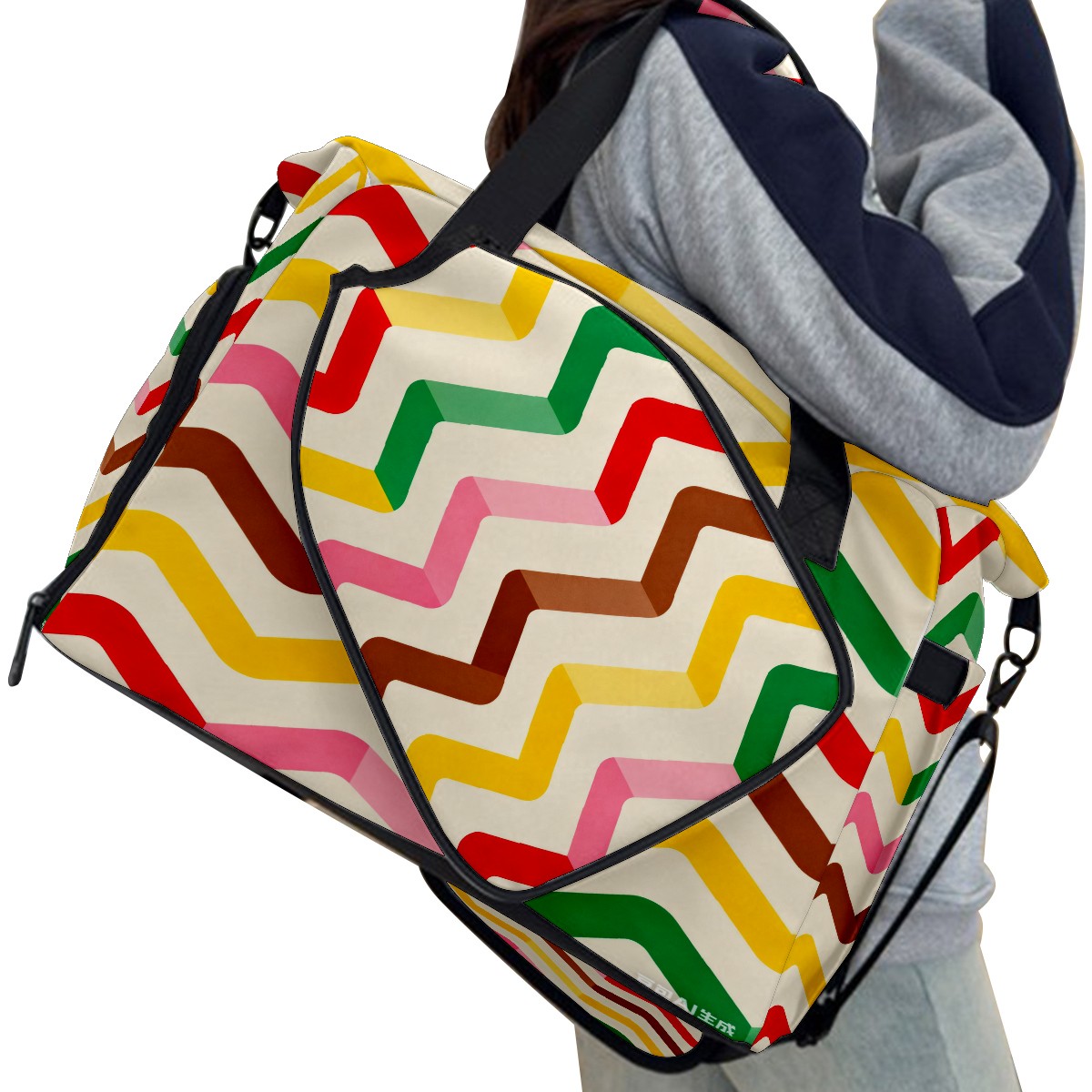 Lightweight Pickleball Tote Bag with Large Capacity, Shoe Compartment, Large Paddle Storage, Water Bottle Holder & Fence Hook for Women & Men Colorful Zigzag Pattern