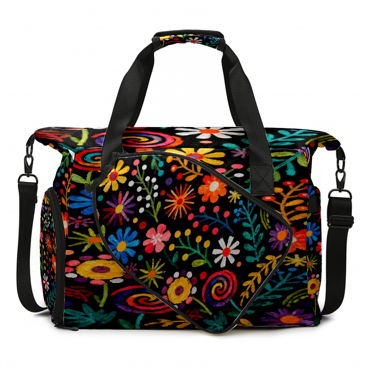 Lightweight Pickleball Tote Bag with Large Capacity, Shoe Compartment, Large Paddle Storage, Water Bottle Holder & Fence Hook for Women & Men Colorful Floral Pattern