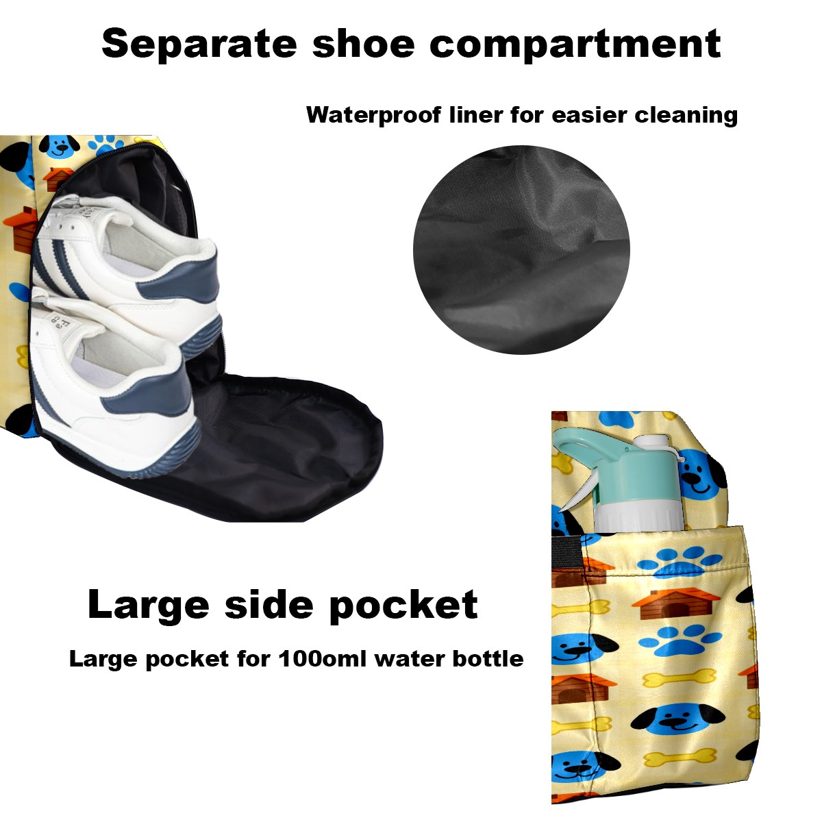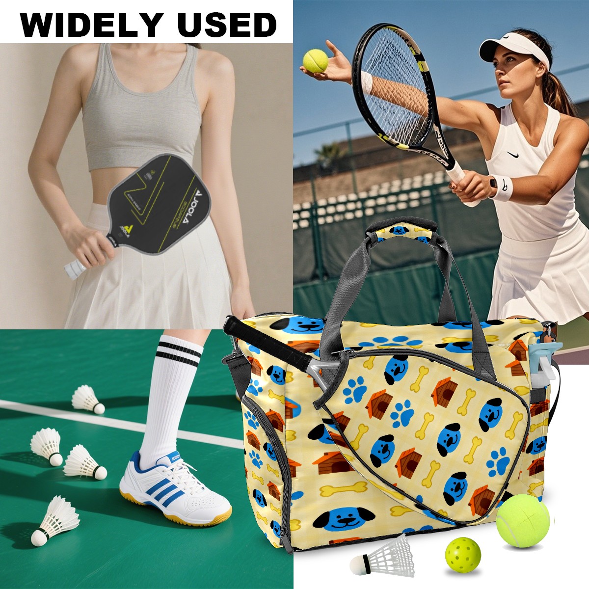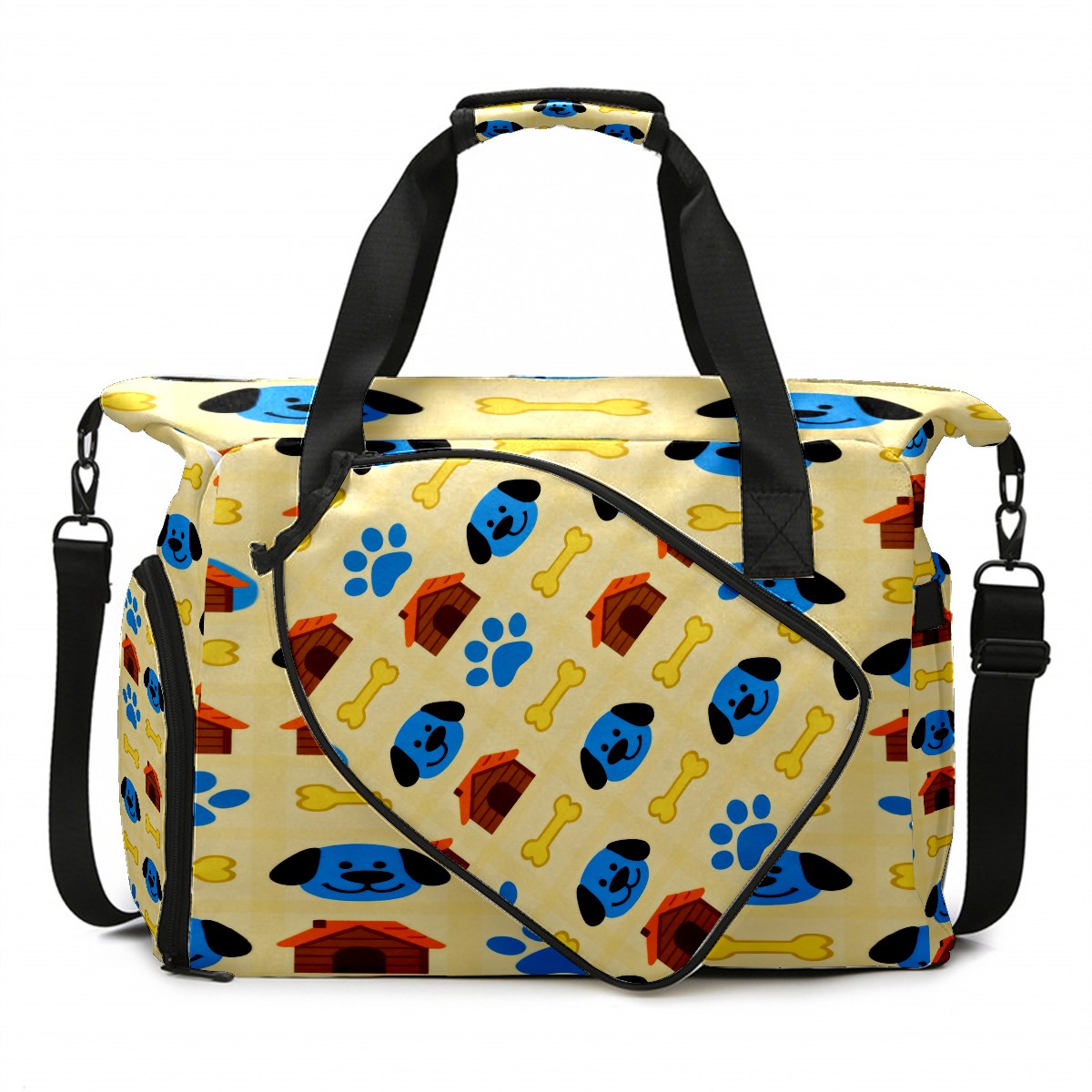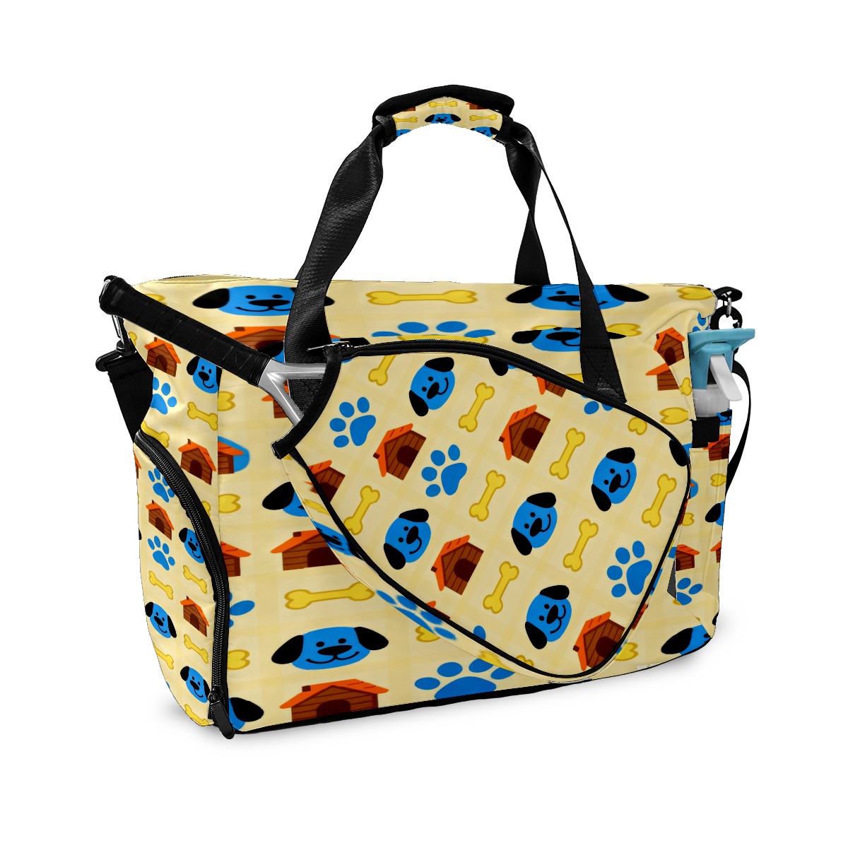 Lightweight Pickleball Tote Bag with Large Capacity, Shoe Compartment, Large Paddle Storage, Water Bottle Holder & Fence Hook for Women & Men Blue Dog Head Doghouse