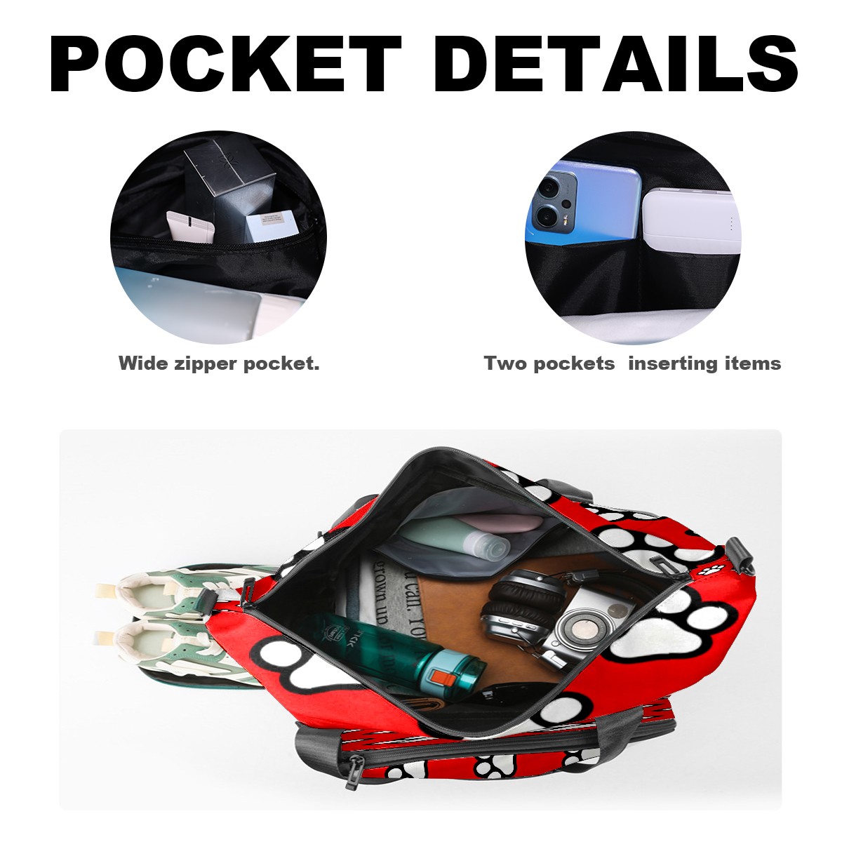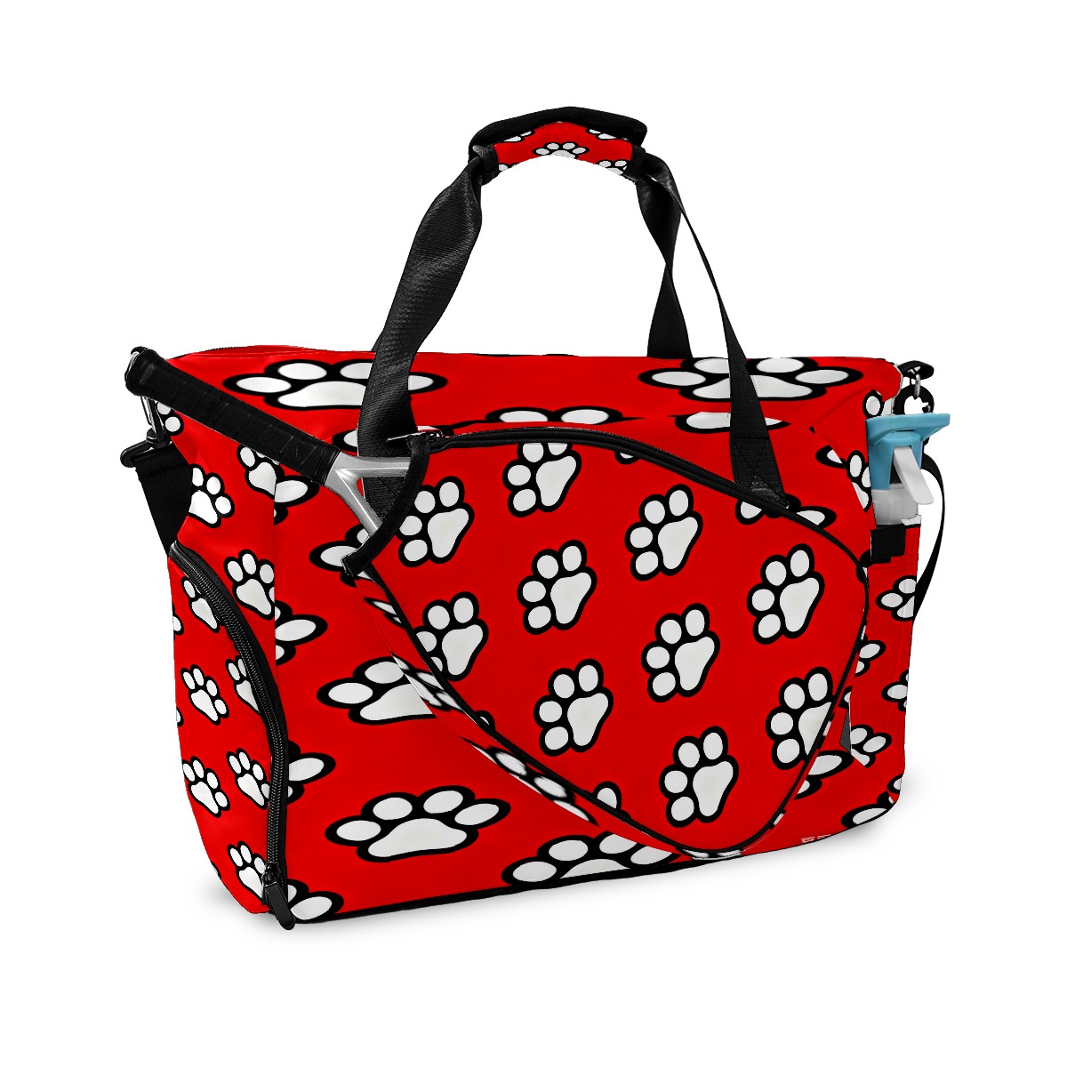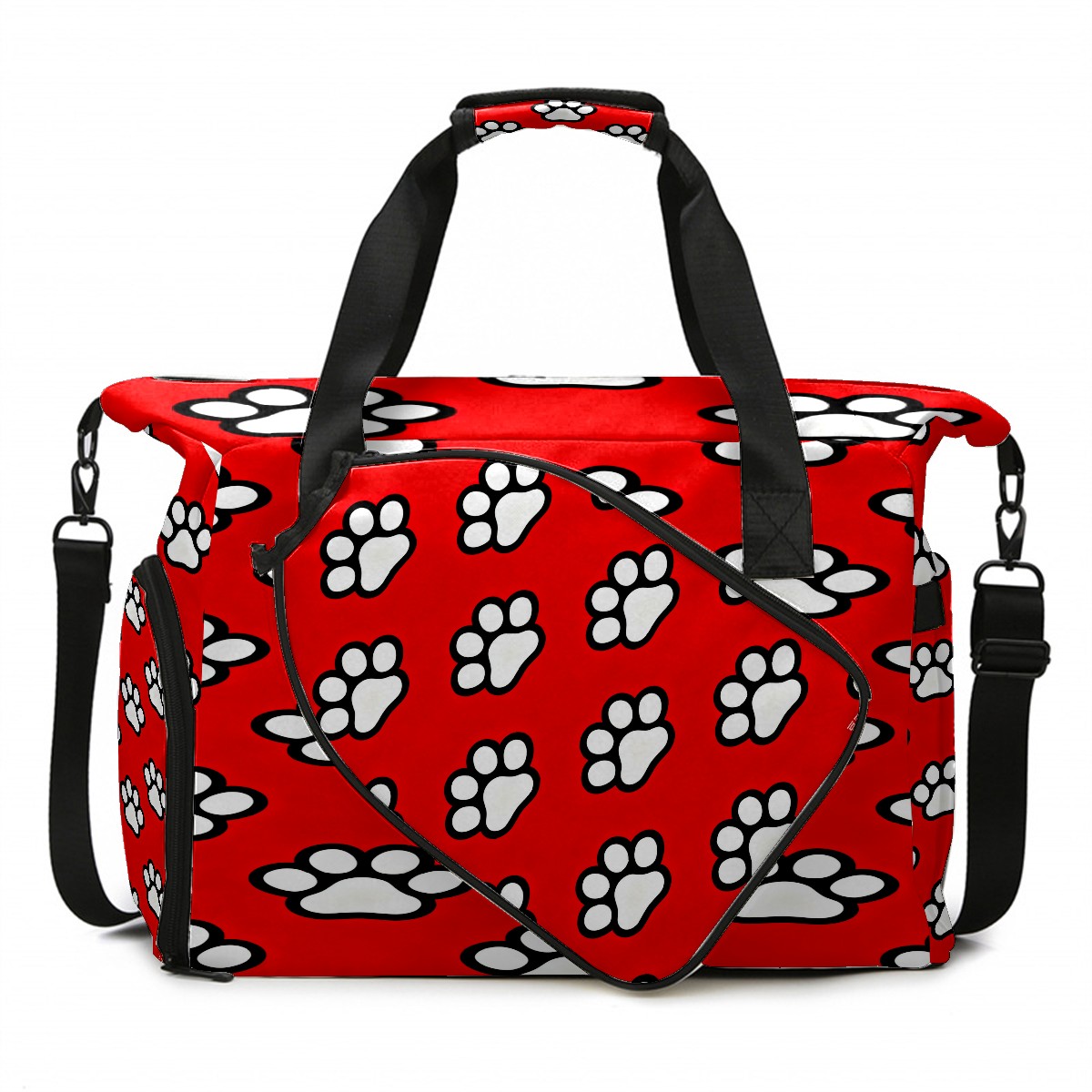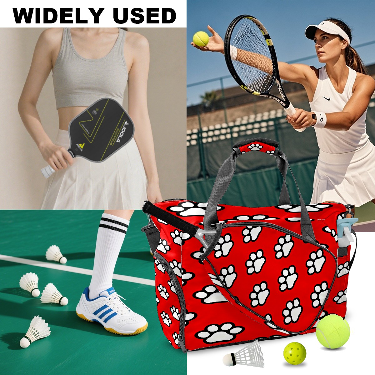 Lightweight Pickleball Tote Bag with Large Capacity, Shoe Compartment, Large Paddle Storage, Water Bottle Holder & Fence Hook for Women & Men White Footprints