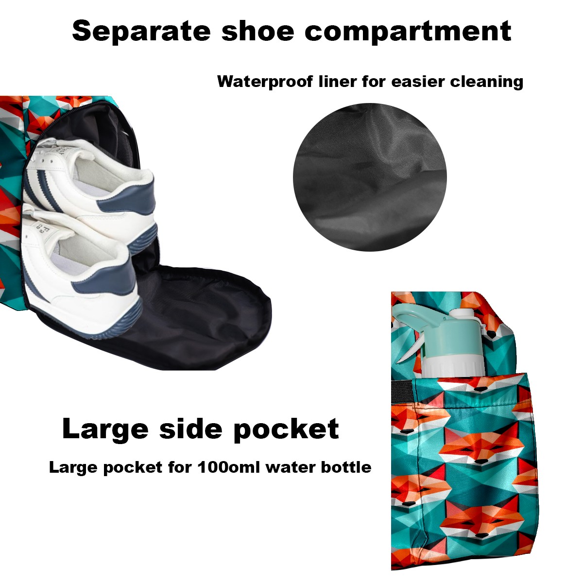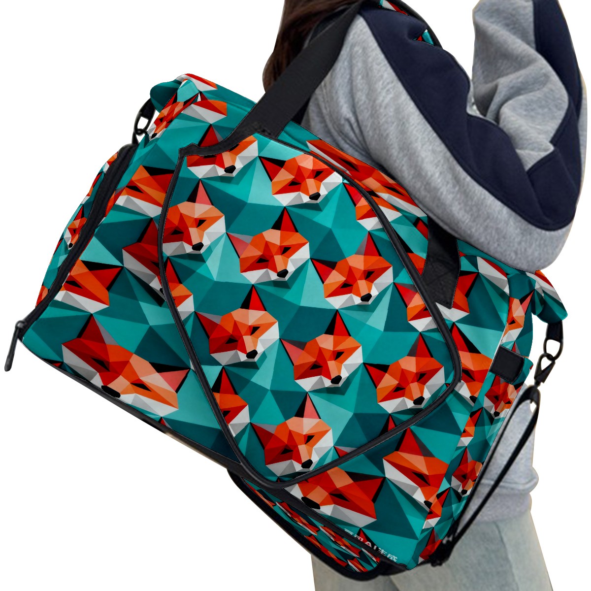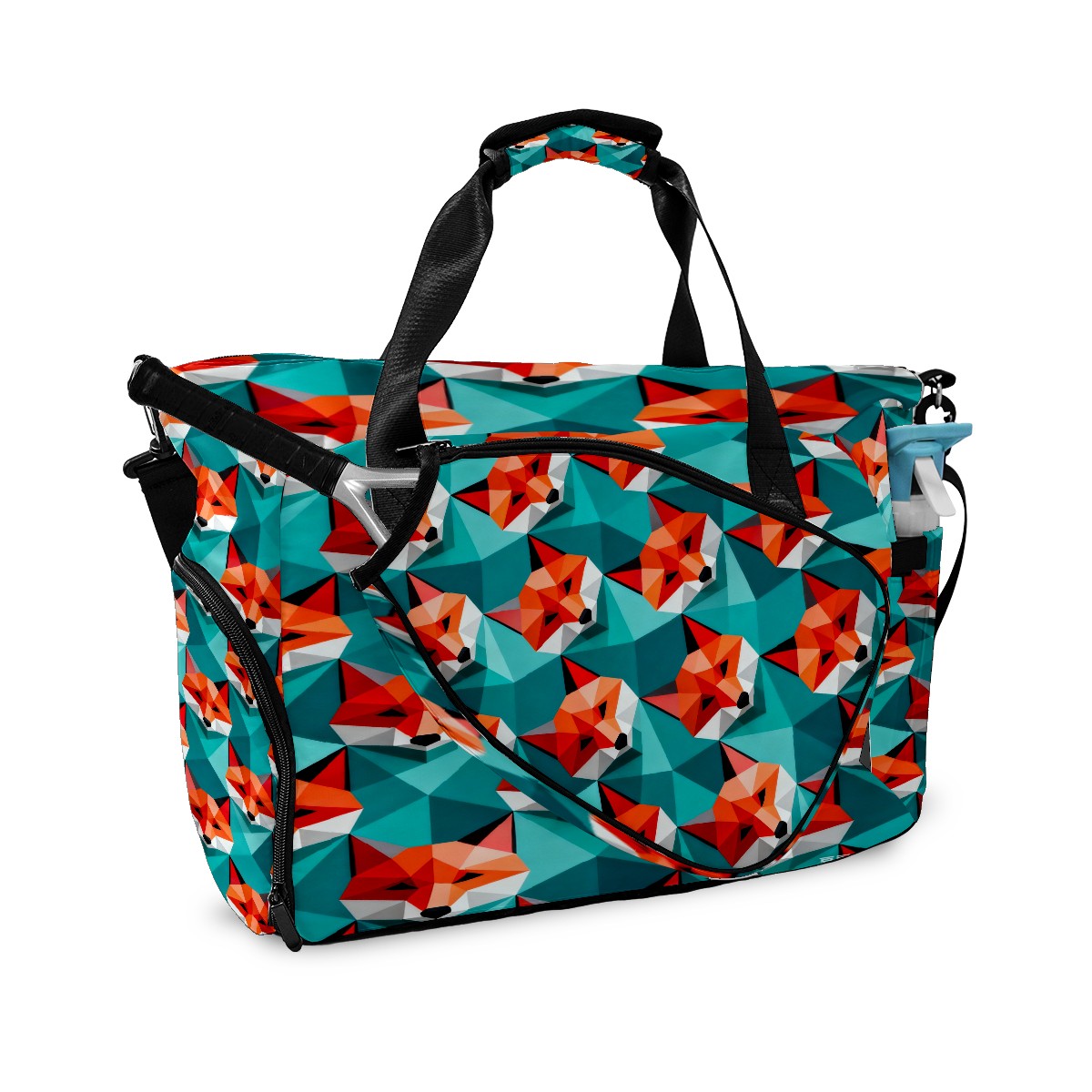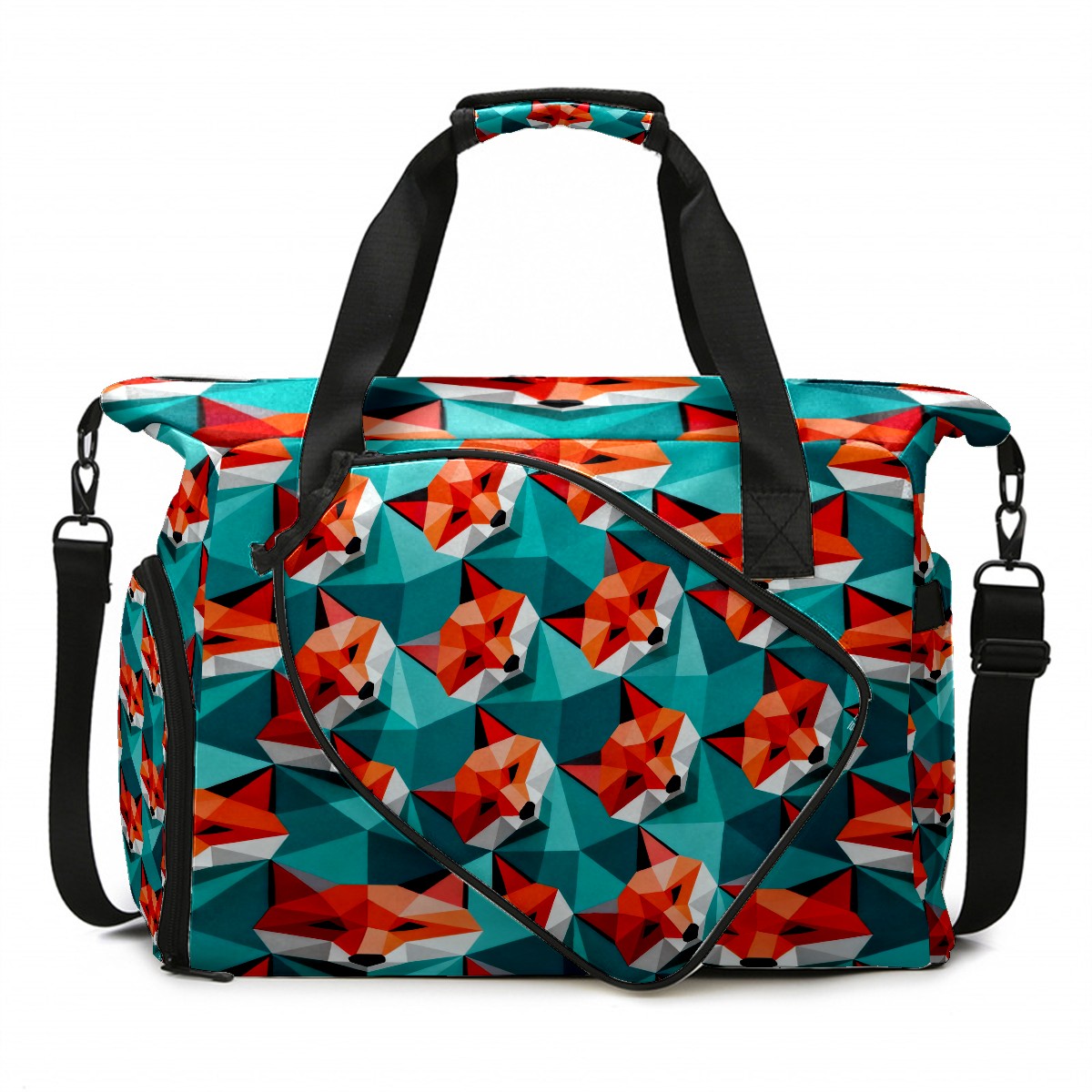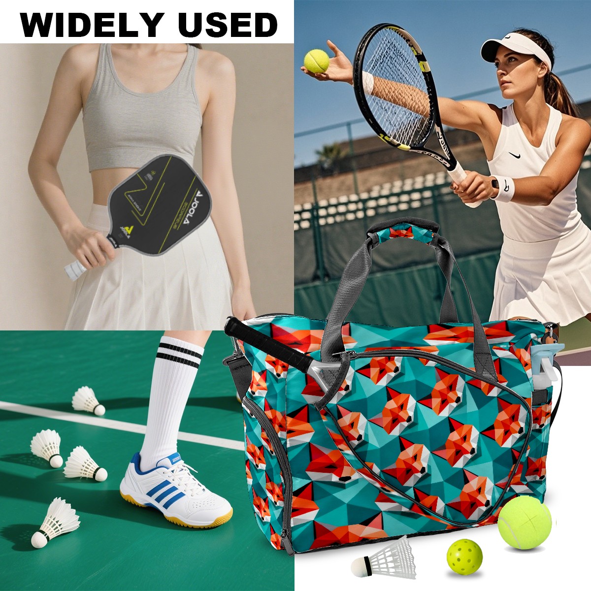 Lightweight Pickleball Tote Bag with Large Capacity, Shoe Compartment, Large Paddle Storage, Water Bottle Holder & Fence Hook for Women & Men Geometric Style Fox