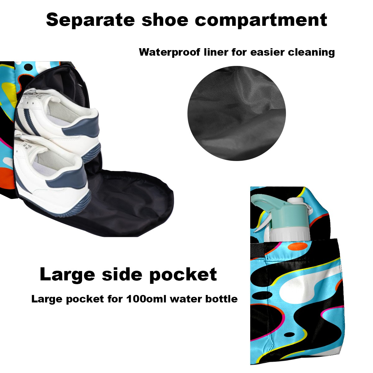 • <p>Multifunctional Gym Travel Bag Made of Twill Fabric 22cm x 48cm x 35cm (8.7in x 18.9in x 13.8in) Made of lightweight and durable twill fabric, this bag is perfect for an active lifestyle. The spacious main compartment easily holds clothing, towels, and a full set of gym gear. A smart pocket precisely stores your phone, earphones, and gym membership card. A ventilated shoe compartment can hold size 10 athletic shoes, and a waterproof wet bag isolates swimwear or sweaty clothing, effectively preventing odors and clutter. It's a professional gym bag suitable for spinning and strength training, a stylish everyday handbag, and can also meet diverse needs such as pickleball, weekend trips, and overnight stays. Combining functionality and style, it seamlessly integrates into various scenarios.<br></p>