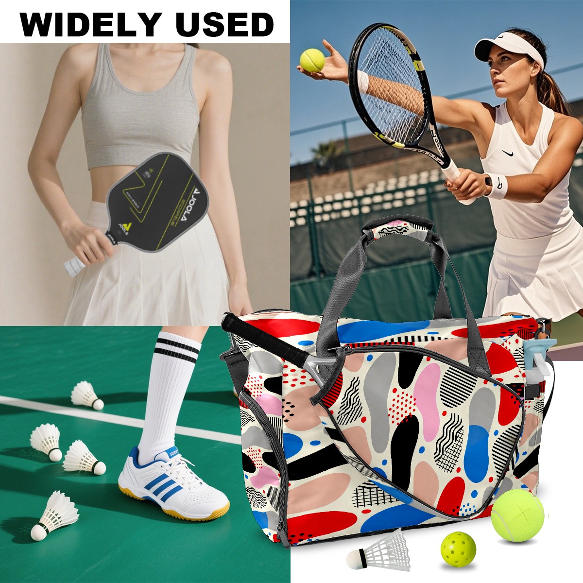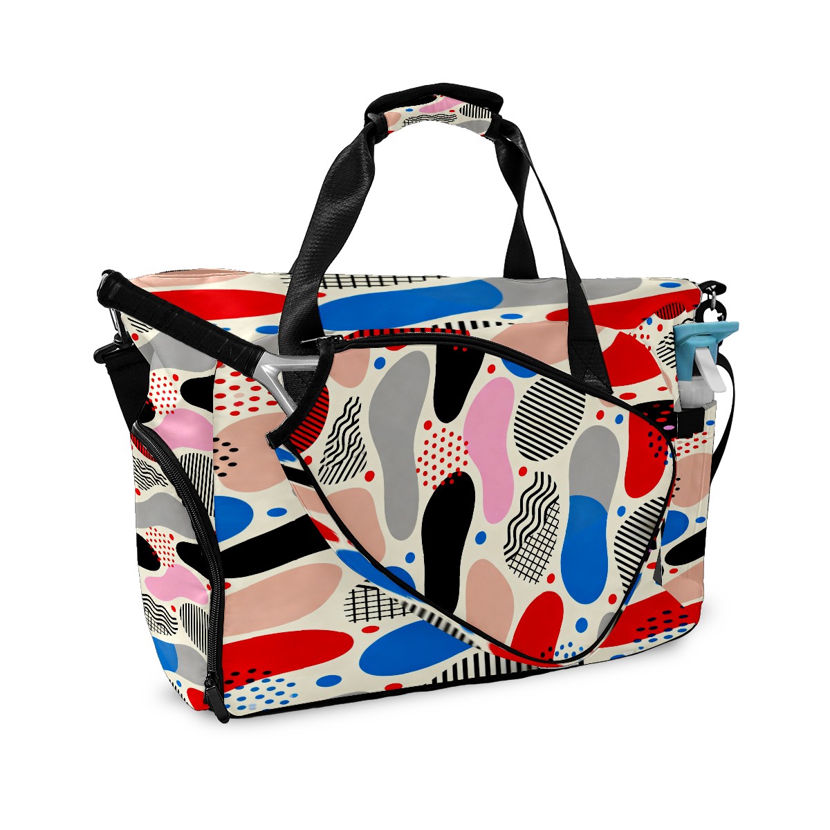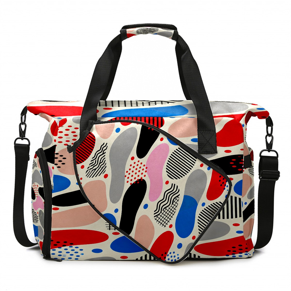 Lightweight Pickleball Tote Bag with Large Capacity, Shoe Compartment, Large Paddle Storage, Water Bottle Holder & Fence Hook for Women & Men Memphis-style Abstract Patterns