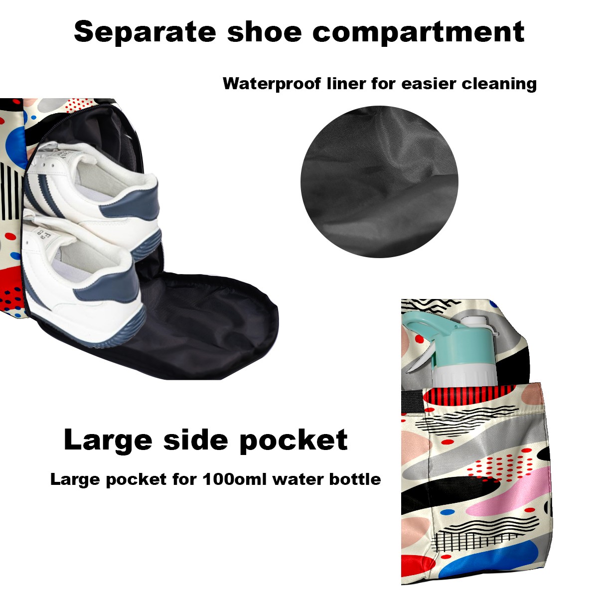 <p>Multifunctional Gym Travel Bag Made of Twill Fabric 22cm x 48cm x 35cm (8.7in x 18.9in x 13.8in) Made of lightweight and durable twill fabric, this bag is perfect for an active lifestyle. The spacious main compartment easily holds clothing, towels, and a full set of gym gear. A smart pocket precisely stores your phone, earphones, and gym membership card. A ventilated shoe compartment can hold size 10 athletic shoes, and a waterproof wet bag isolates swimwear or sweaty clothing, effectively preventing odors and clutter. It's a professional gym bag suitable for spinning and strength training, a stylish everyday handbag, and can also meet diverse needs such as pickleball, weekend trips, and overnight stays. Combining functionality and style, it seamlessly integrates into various scenarios.<br></p>