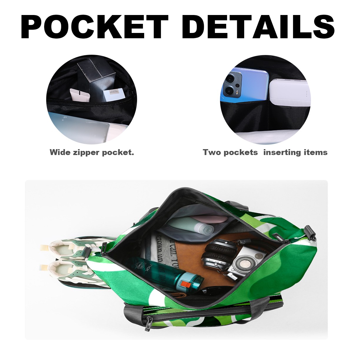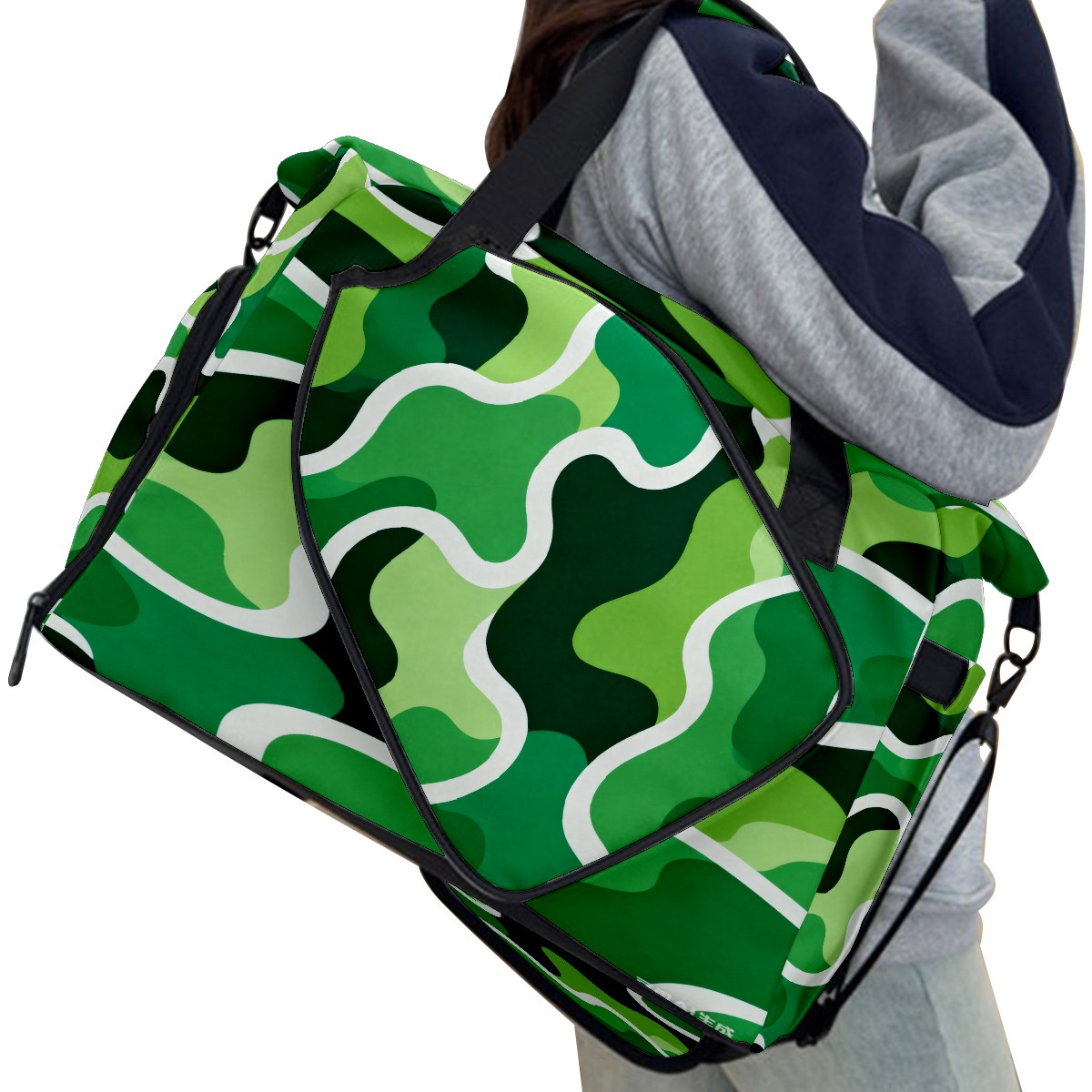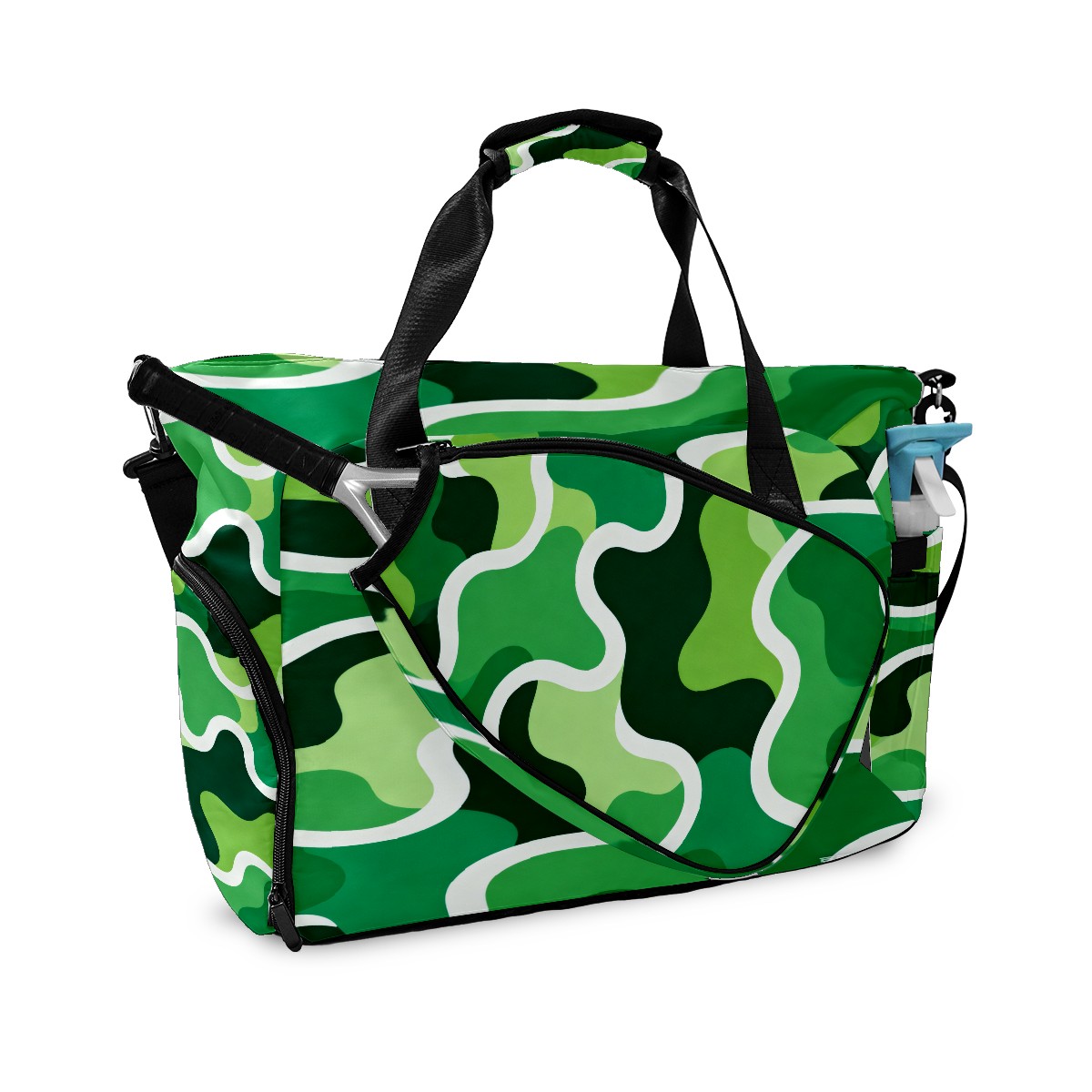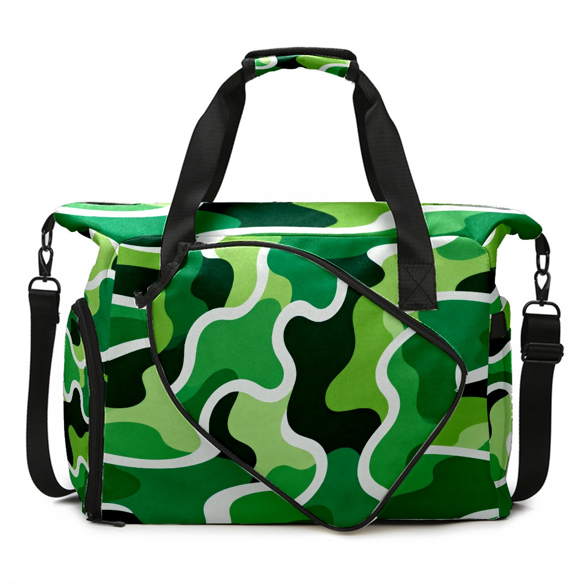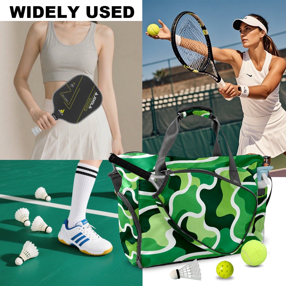 Lightweight Pickleball Tote Bag with Large Capacity, Shoe Compartment, Large Paddle Storage, Water Bottle Holder & Fence Hook for Women & Men Abstract Camouflage Style Green