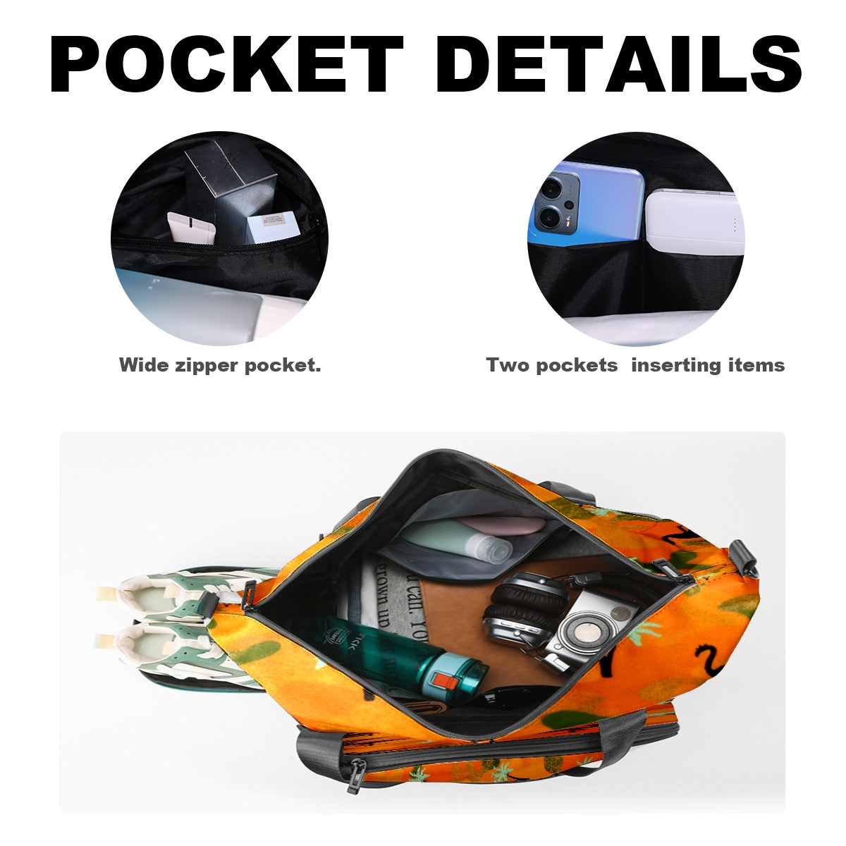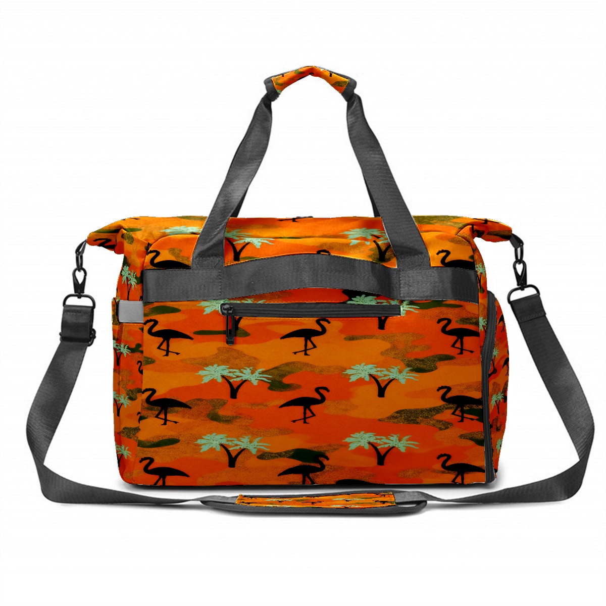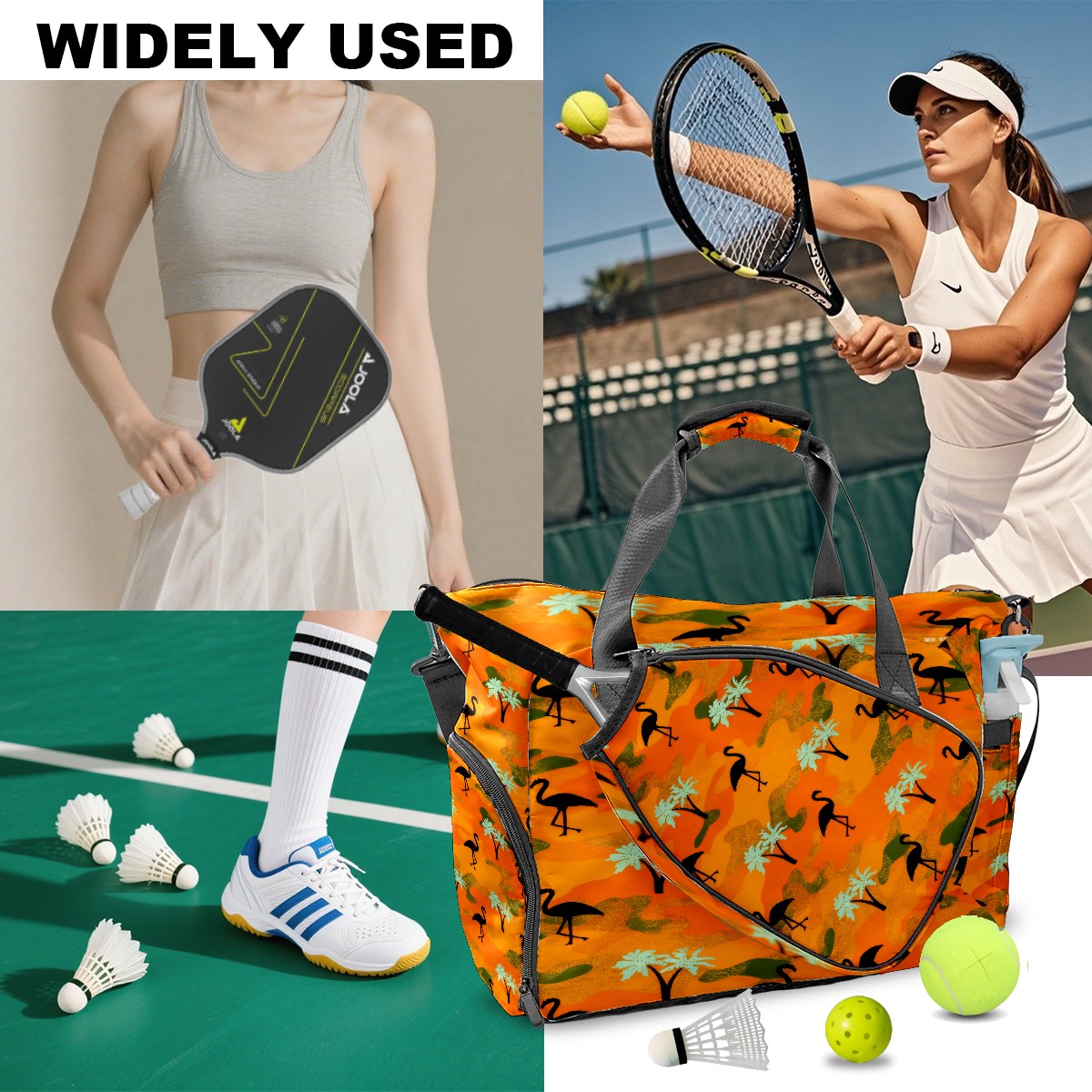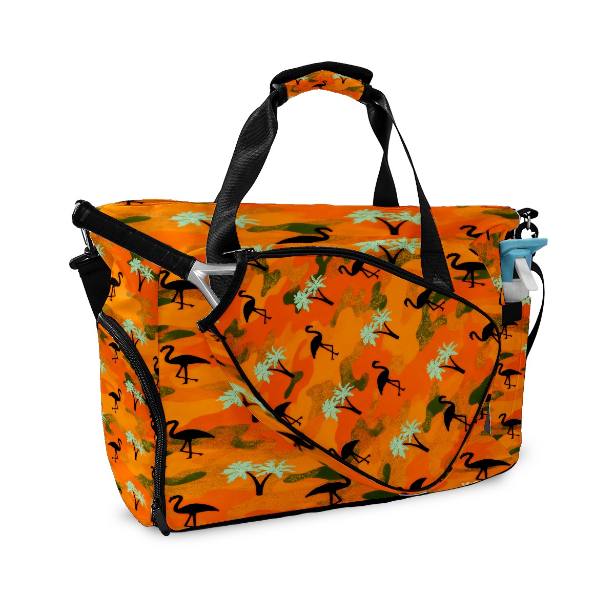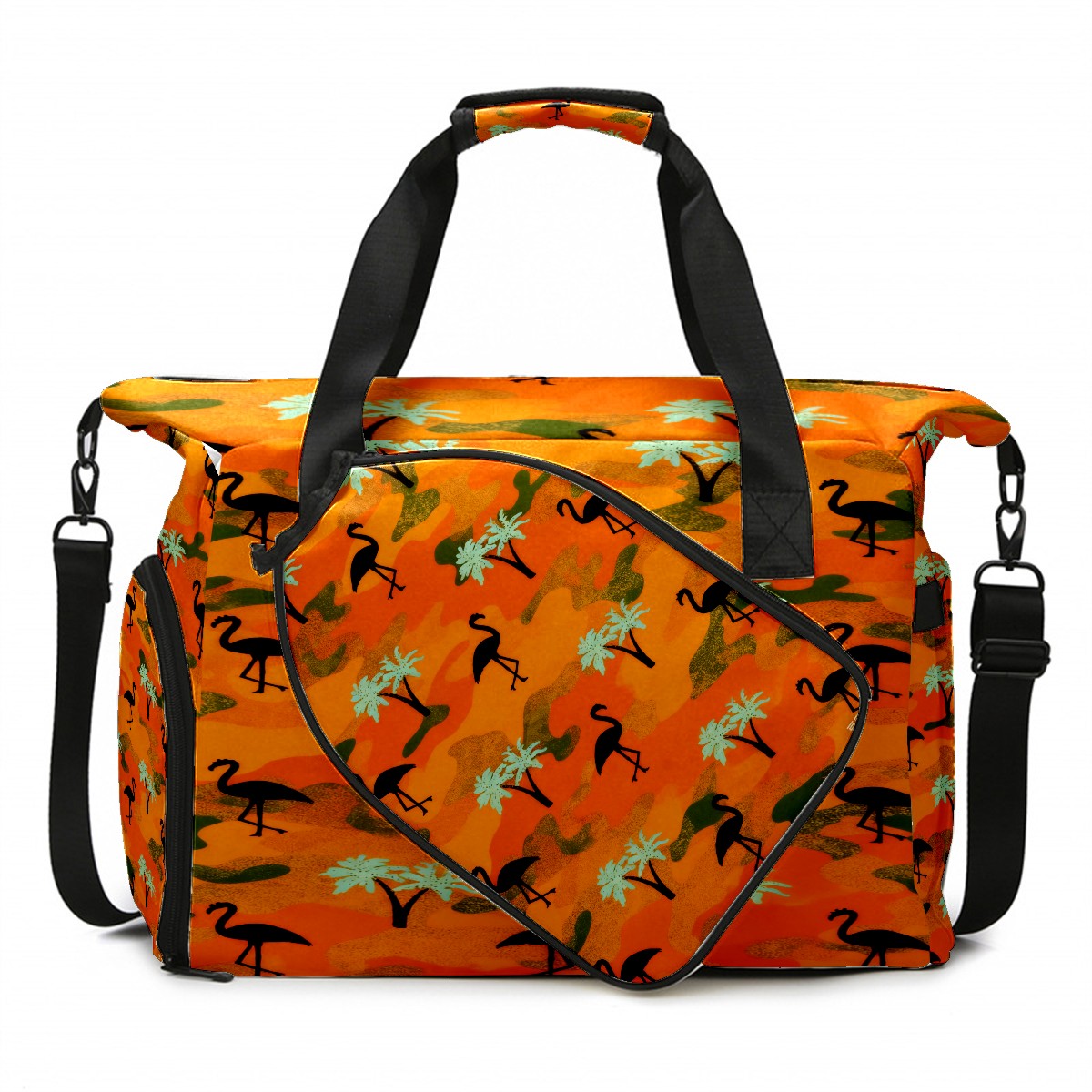 Lightweight Pickleball Tote Bag with Large Capacity, Shoe Compartment, Large Paddle Storage, Water Bottle Holder & Fence Hook for Women & Men Orange Camouflage Flamingos