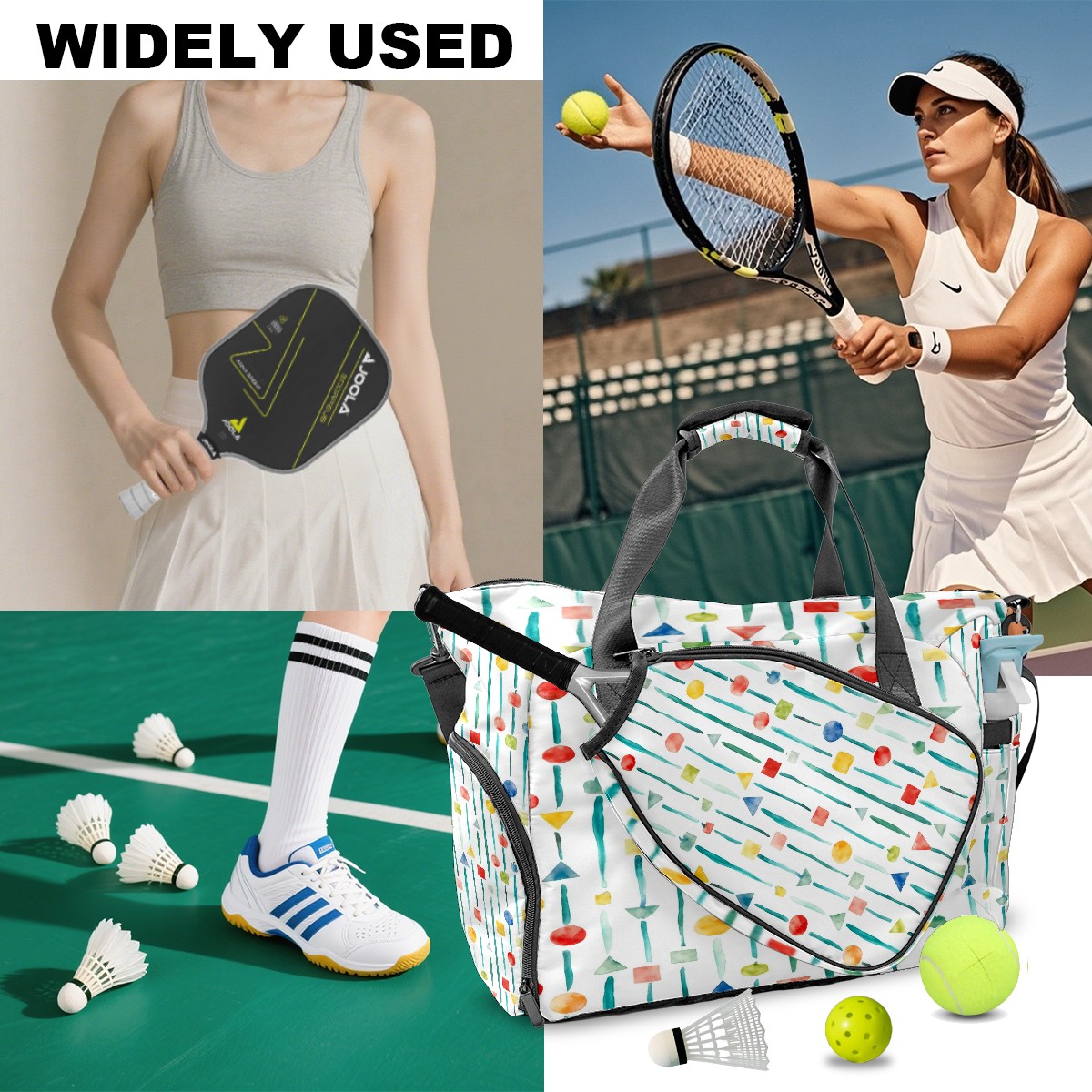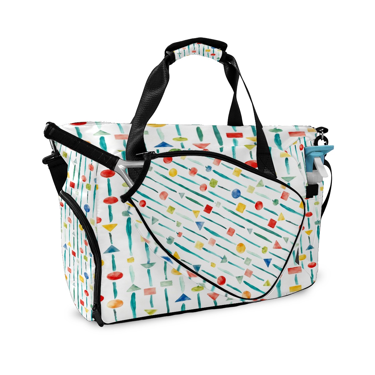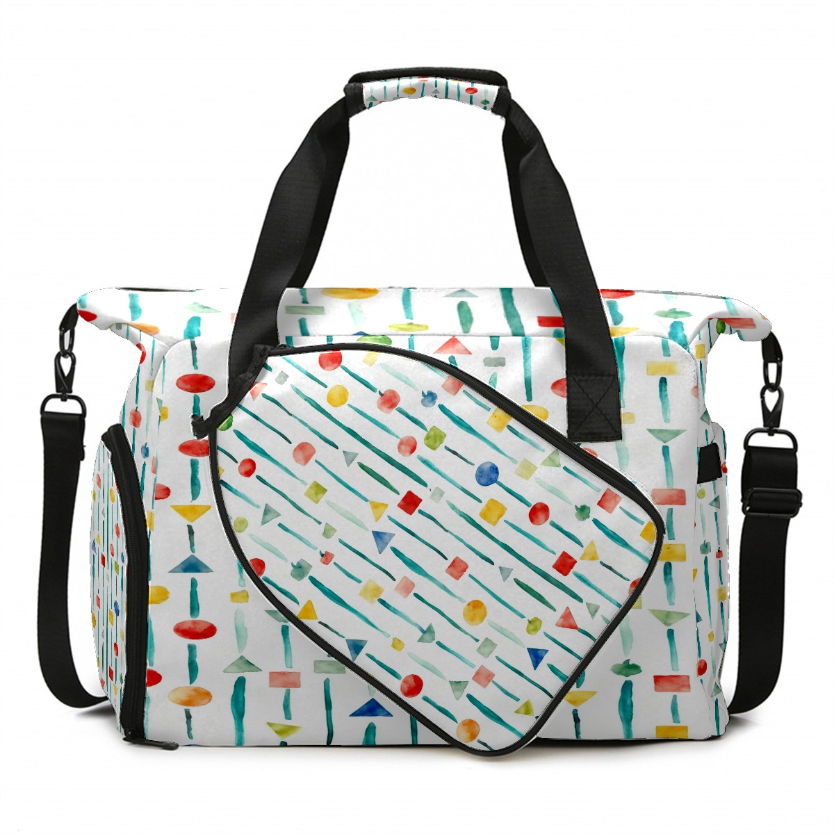 Lightweight Pickleball Tote Bag with Large Capacity, Shoe Compartment, Large Paddle Storage, Water Bottle Holder & Fence Hook for Women & Men Colorful Vertical Stripes