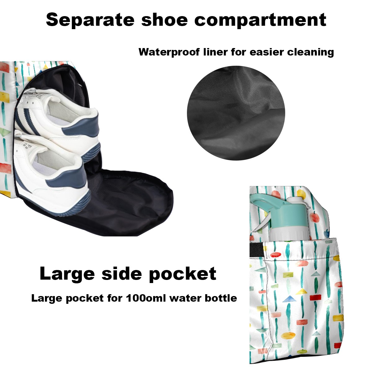 • <p>Multifunctional Gym Travel Bag Made of Twill Fabric 22cm x 48cm x 35cm (8.7in x 18.9in x 13.8in) Made of lightweight and durable twill fabric, this bag is perfect for an active lifestyle. The spacious main compartment easily holds clothing, towels, and a full set of gym gear. A smart pocket precisely stores your phone, earphones, and gym membership card. A ventilated shoe compartment can hold size 10 athletic shoes, and a waterproof wet bag isolates swimwear or sweaty clothing, effectively preventing odors and clutter. It's a professional gym bag suitable for spinning and strength training, a stylish everyday handbag, and can also meet diverse needs such as pickleball, weekend trips, and overnight stays. Combining functionality and style, it seamlessly integrates into various scenarios.<br></p>