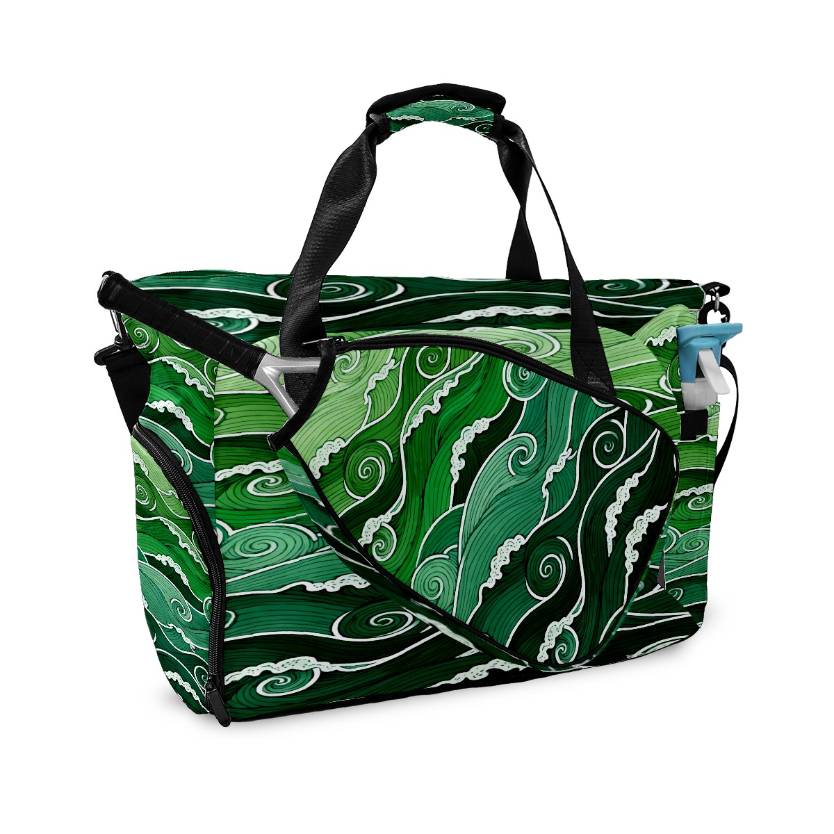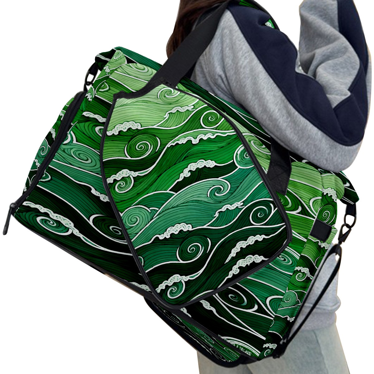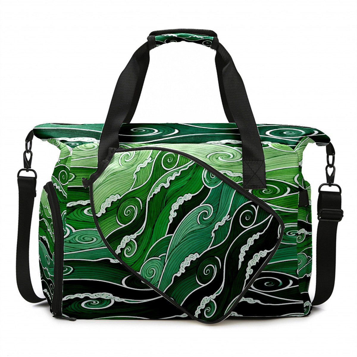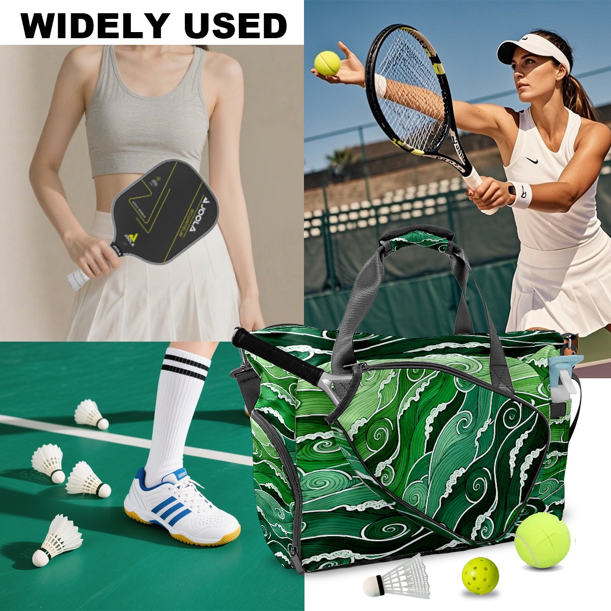 Lightweight Pickleball Tote Bag with Large Capacity, Shoe Compartment, Large Paddle Storage, Water Bottle Holder & Fence Hook for Women & Men Green Wave Pattern