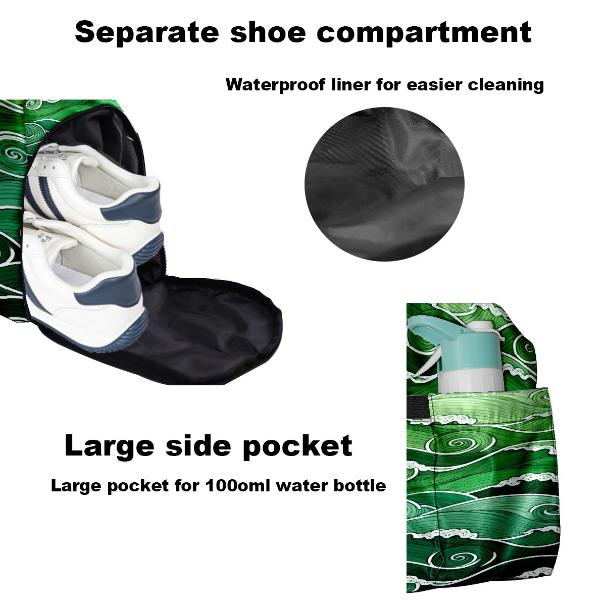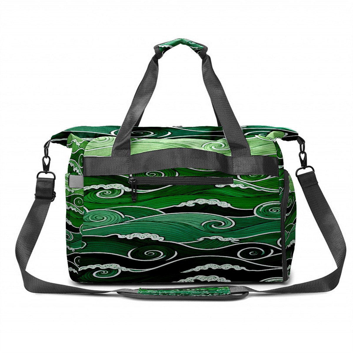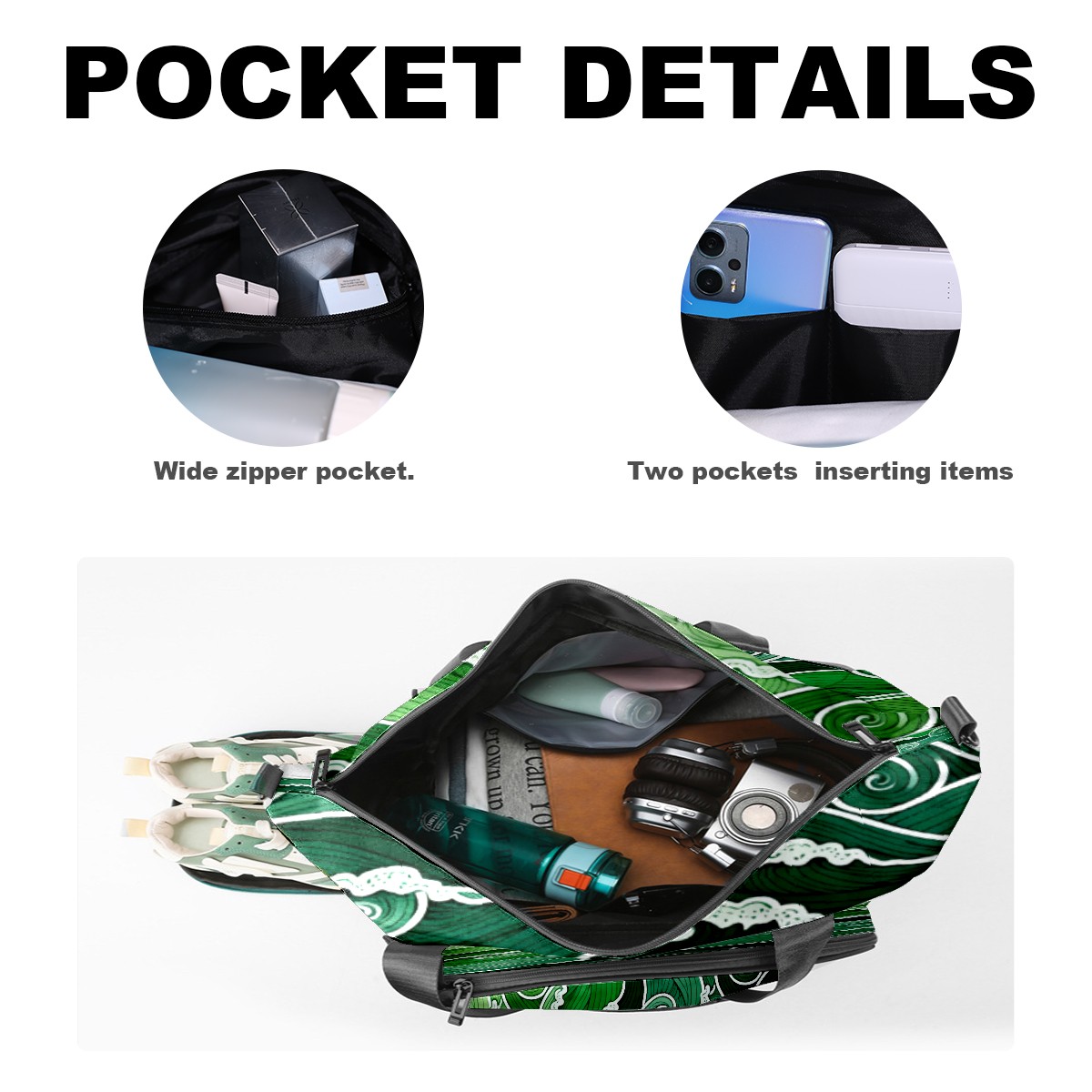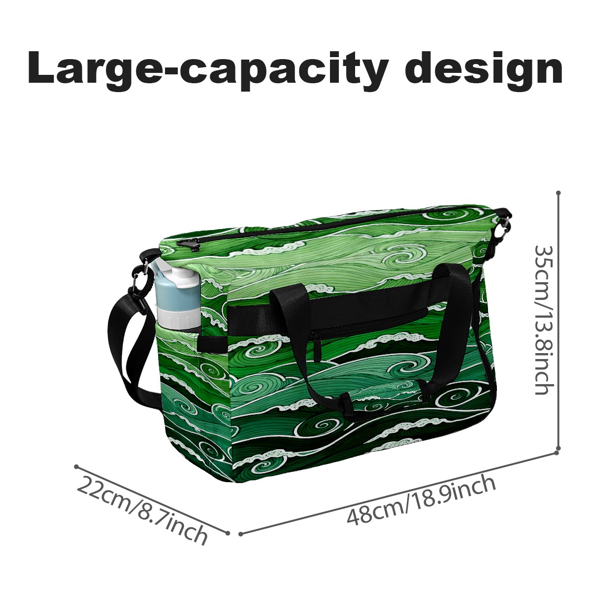 Lightweight Pickleball Tote Bag with Large Capacity, Shoe Compartment, Large Paddle Storage, Water Bottle Holder & Fence Hook for Women & Men Green Wave Pattern