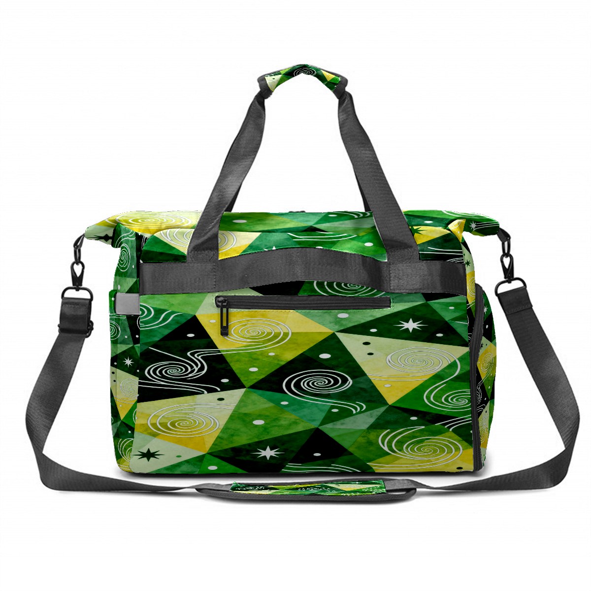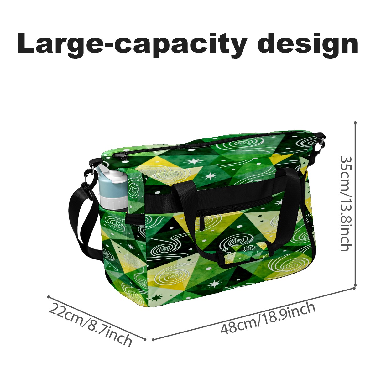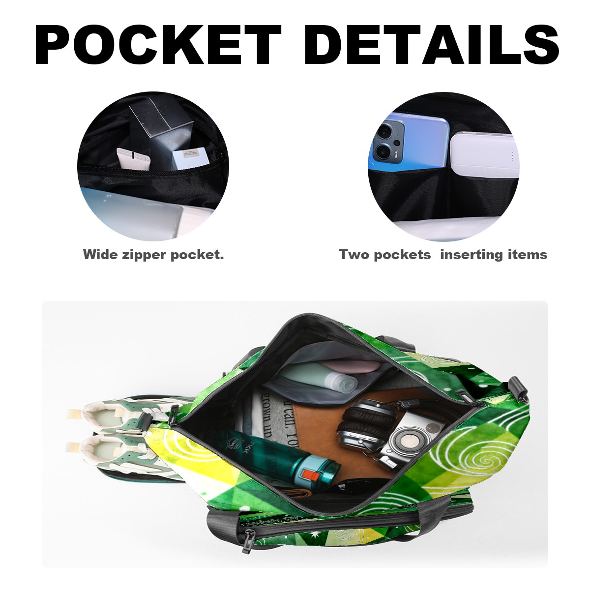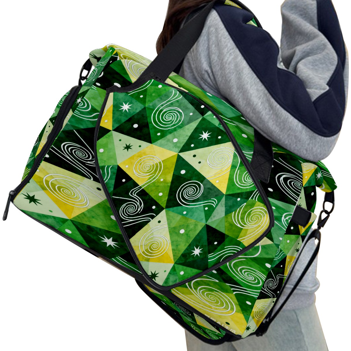 Lightweight Pickleball Tote Bag with Large Capacity, Shoe Compartment, Large Paddle Storage, Water Bottle Holder & Fence Hook for Women & Men Green Geometric Swirling Pattern