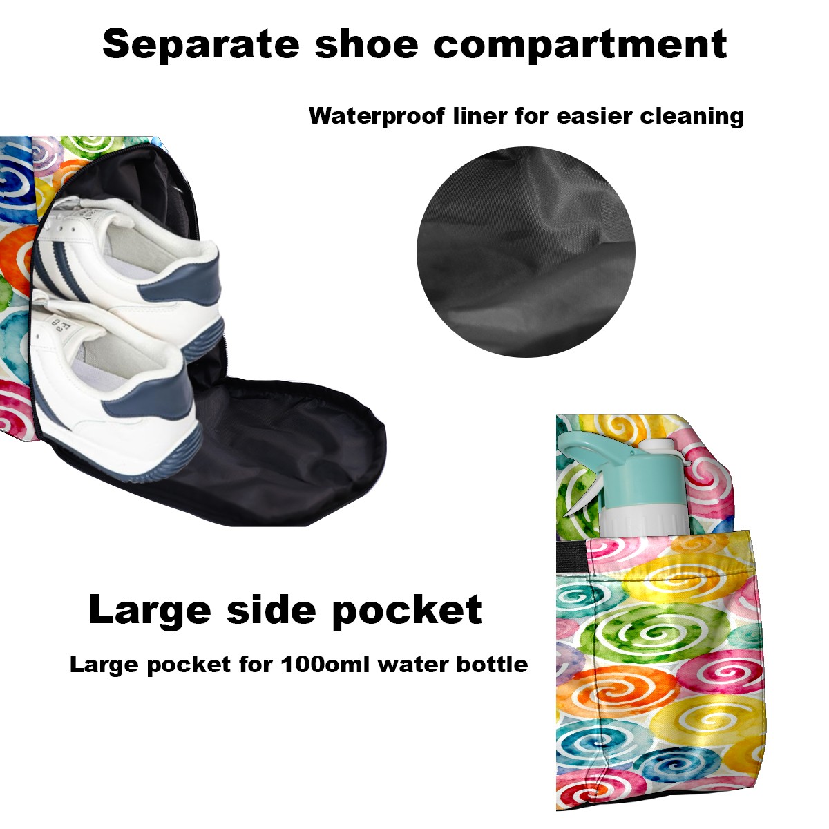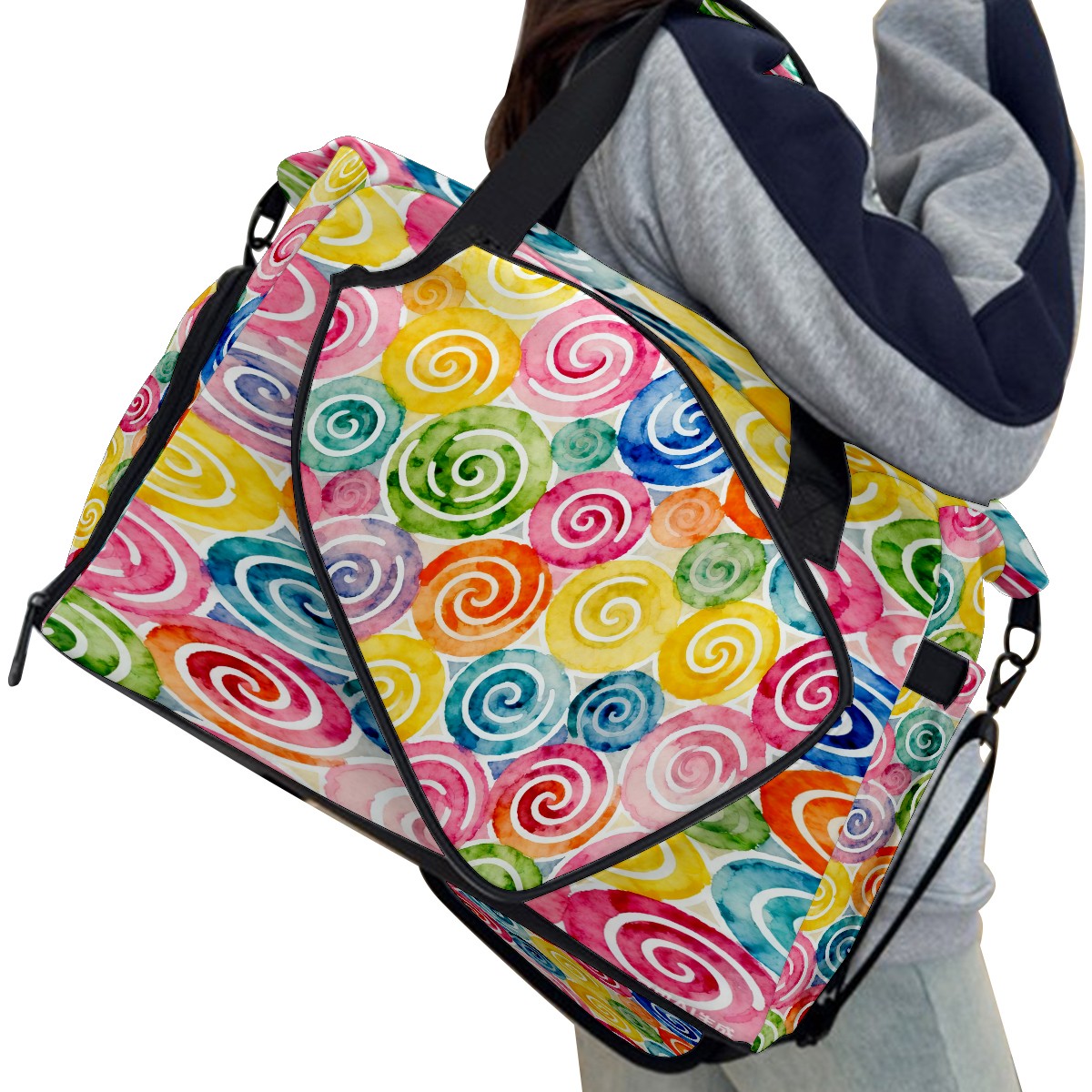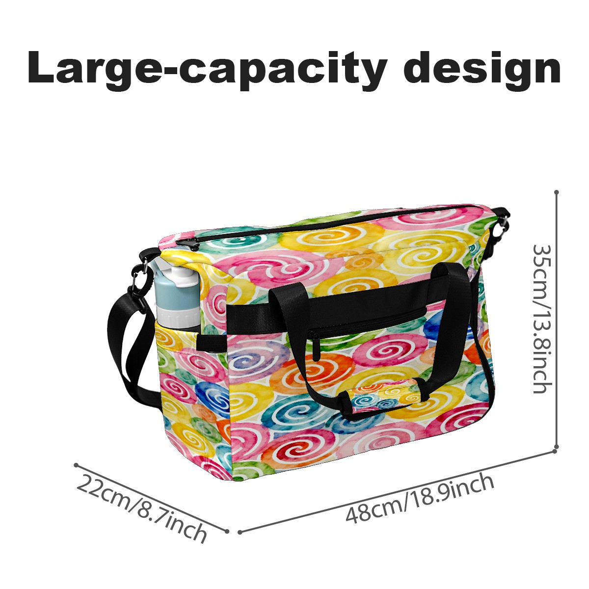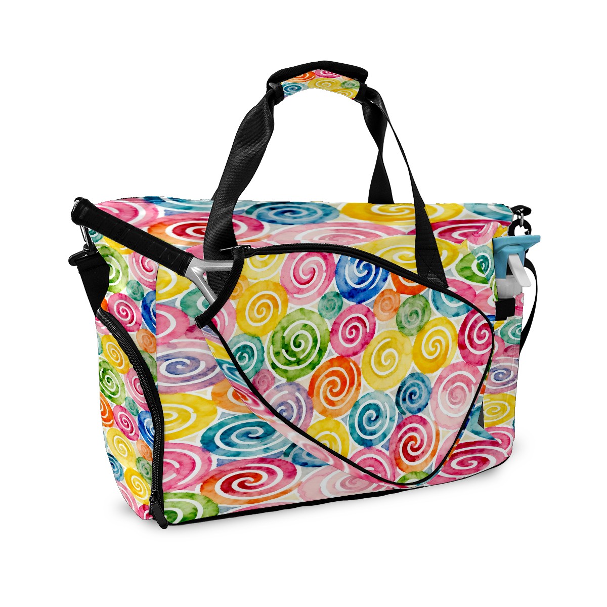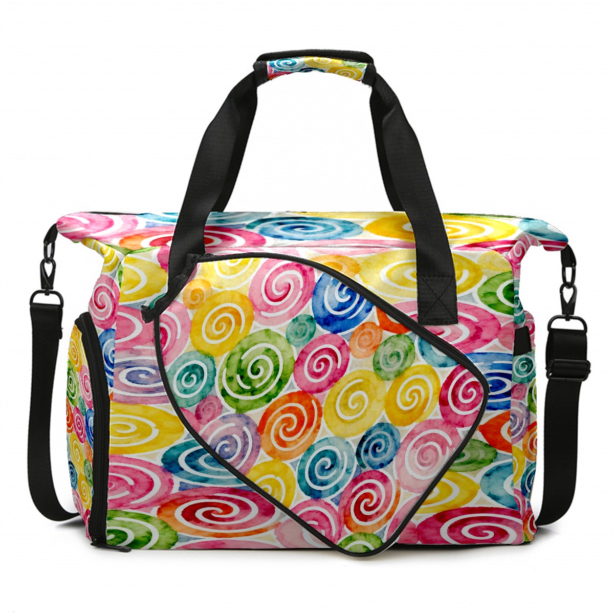 Lightweight Pickleball Tote Bag with Large Capacity, Shoe Compartment, Large Paddle Storage, Water Bottle Holder & Fence Hook for Women & Men Colorful Spiral Pattern